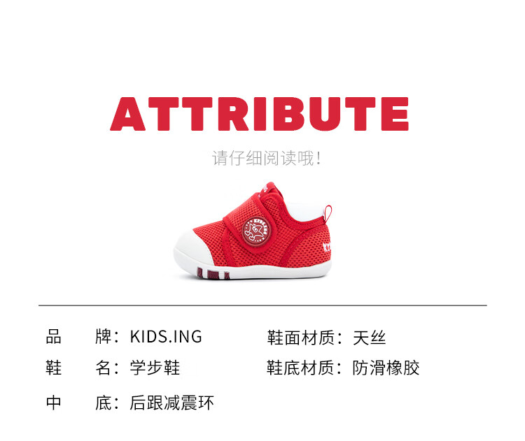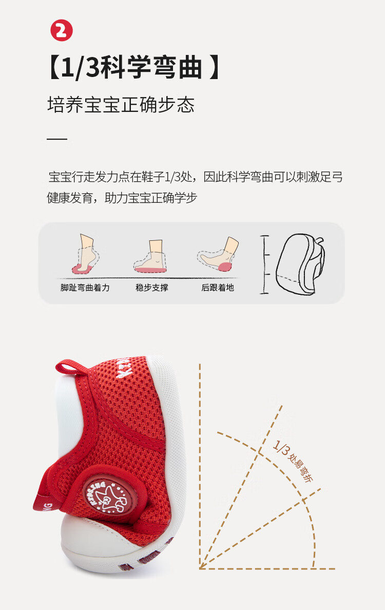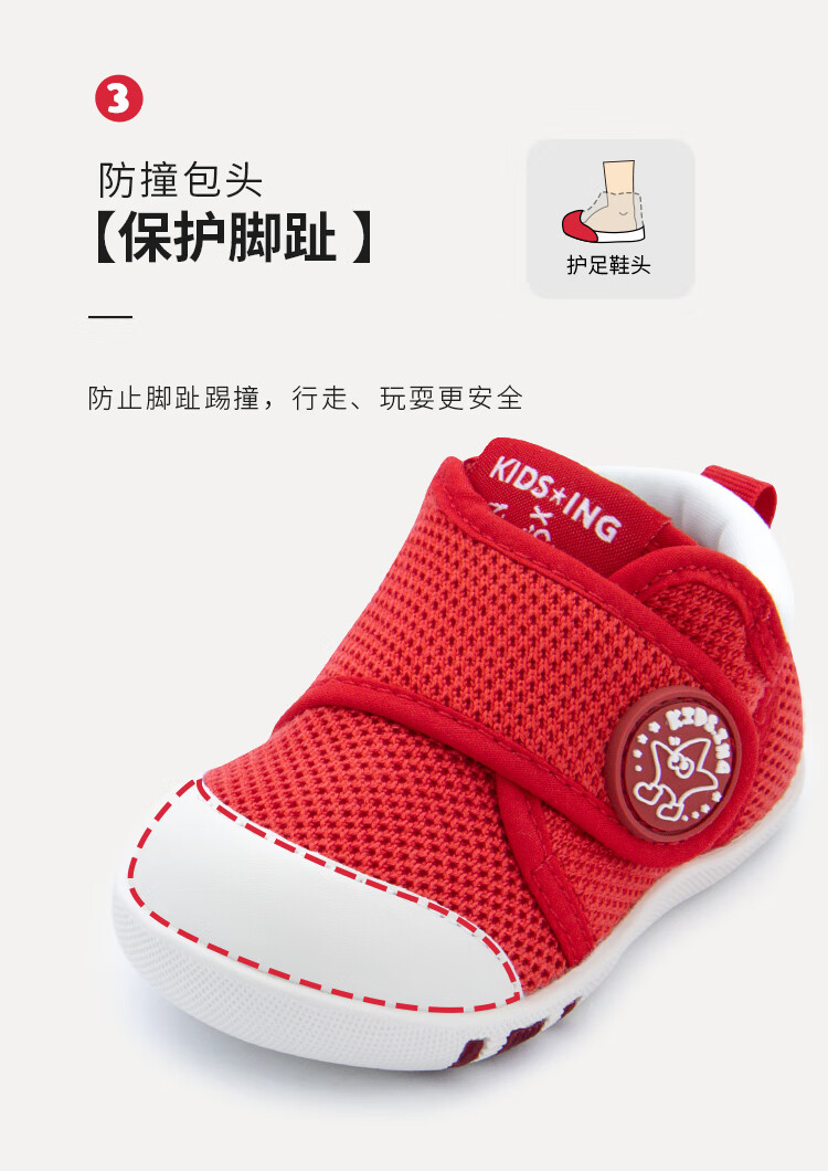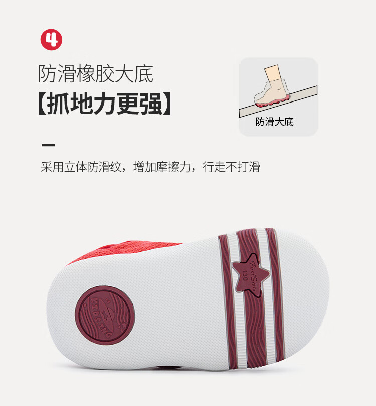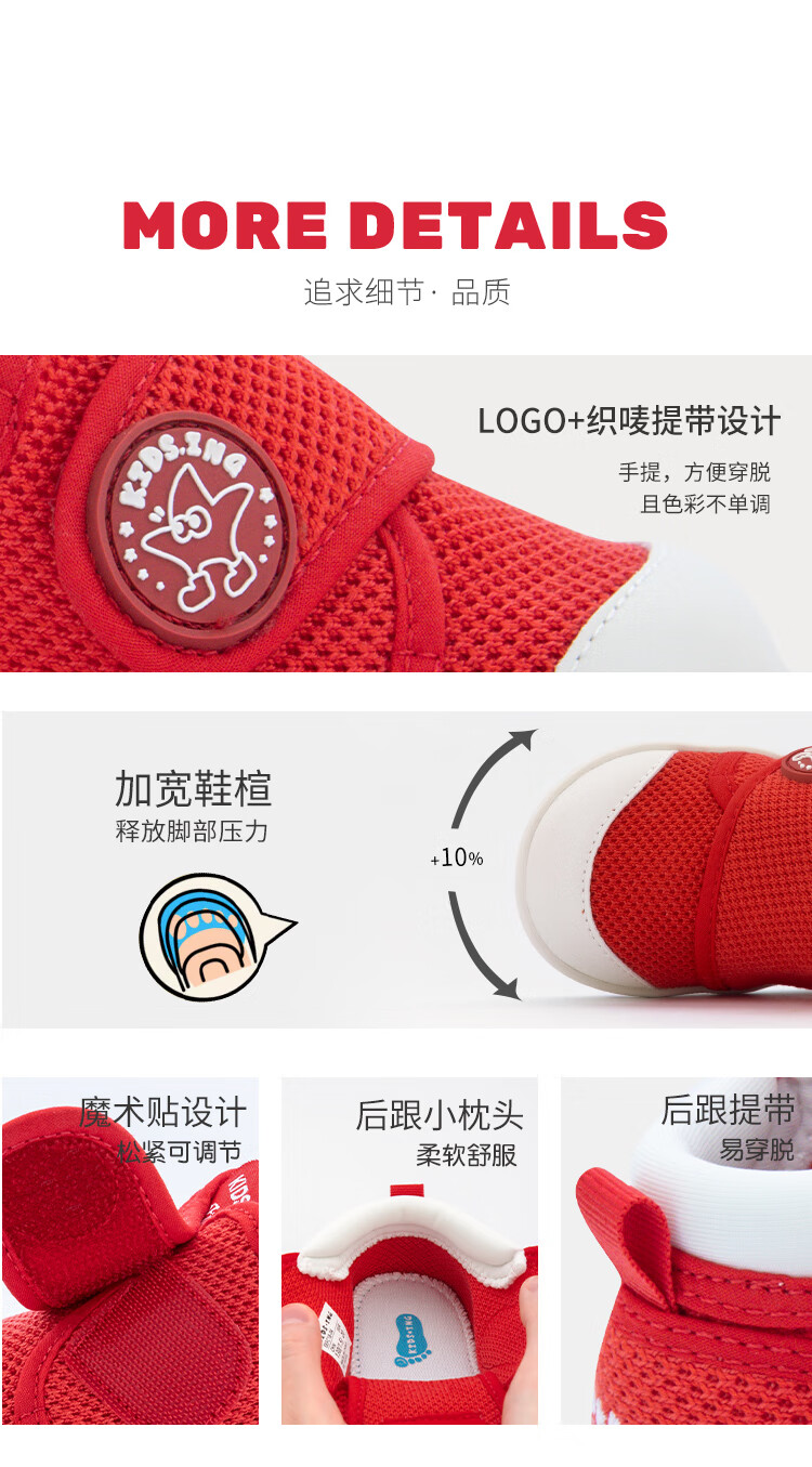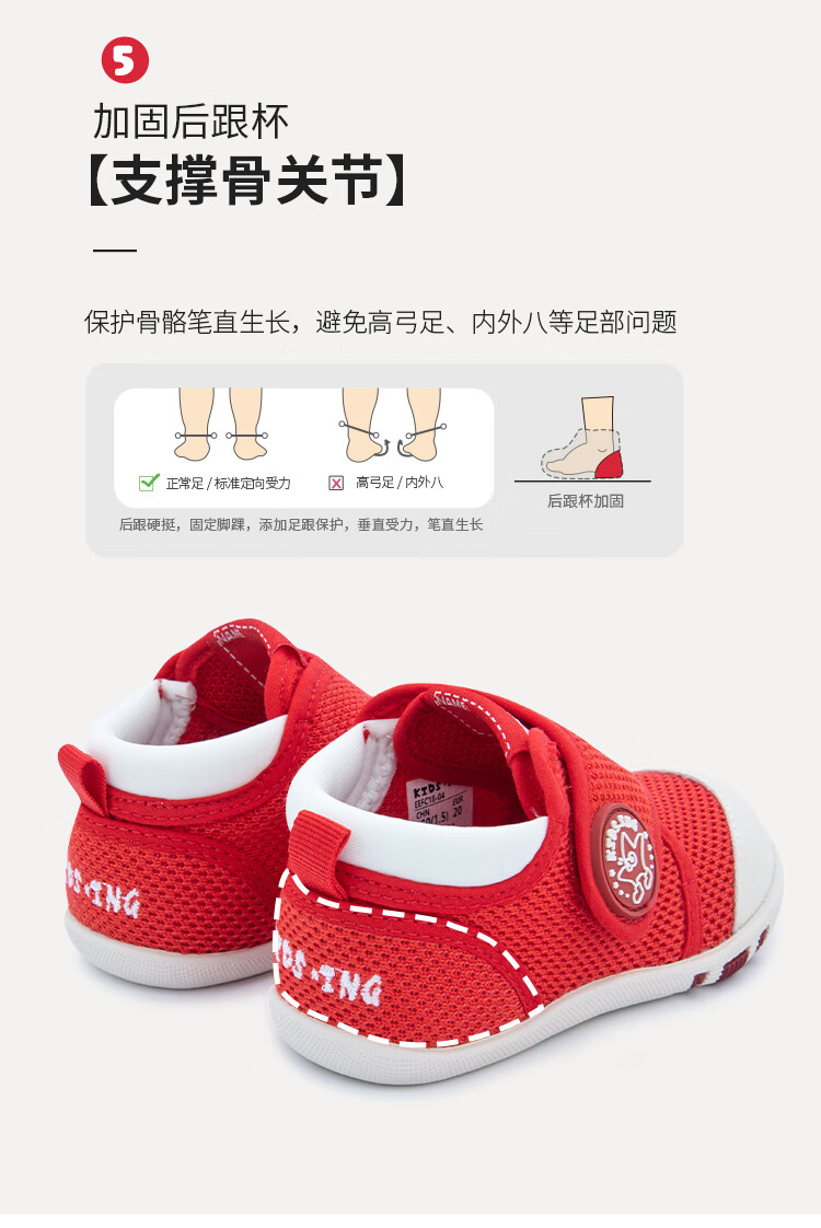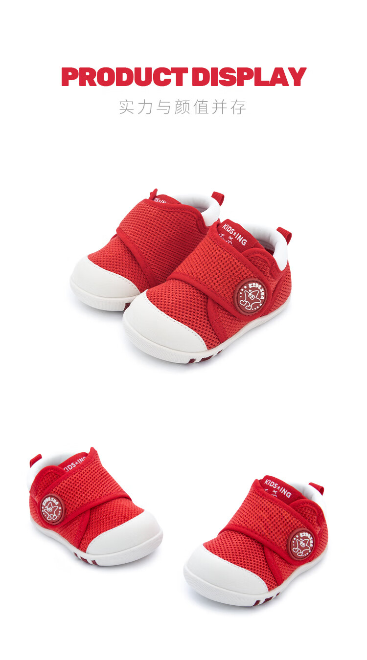 Kids.ing Kedi Star Toddler Shoes 1 Stage Spring 1-2 Years Old Male and Female Baby Soft Sole Anti-Slip Shoes Red Size 20