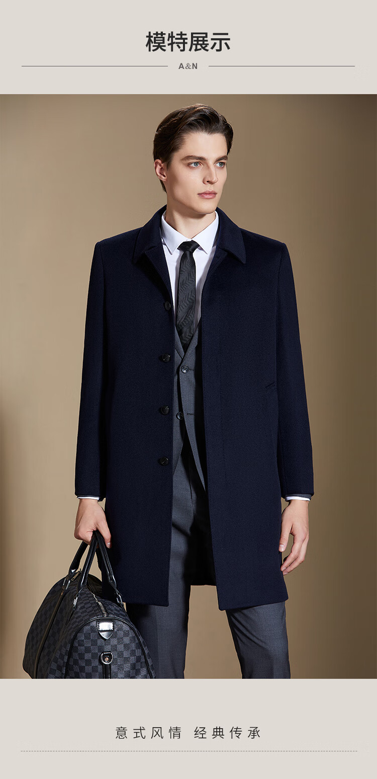 Antonio 100% cashmere lining removable mid-length coat men's business casual woolen woolen warm windbreaker