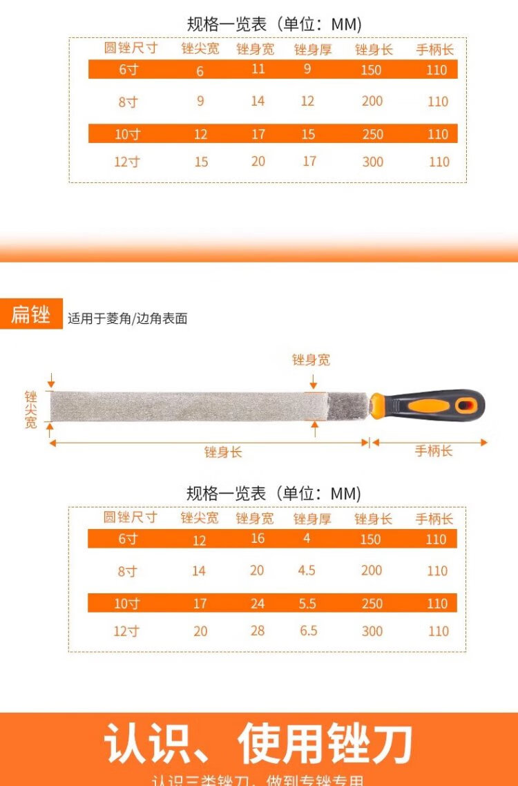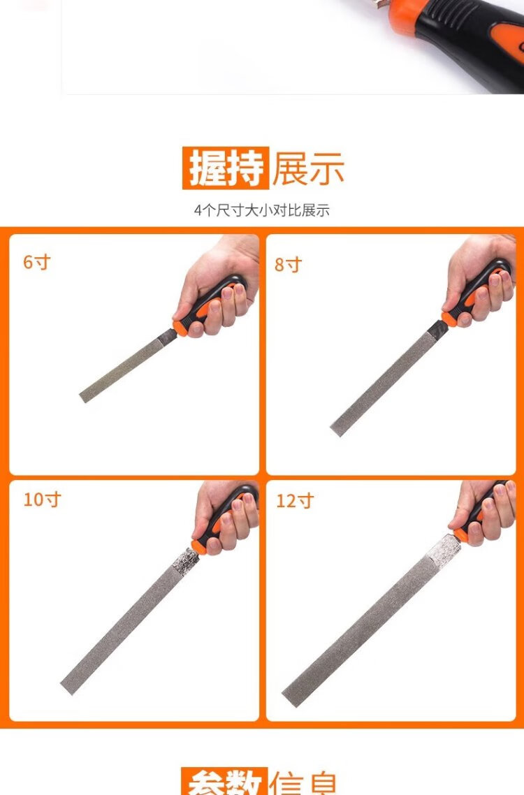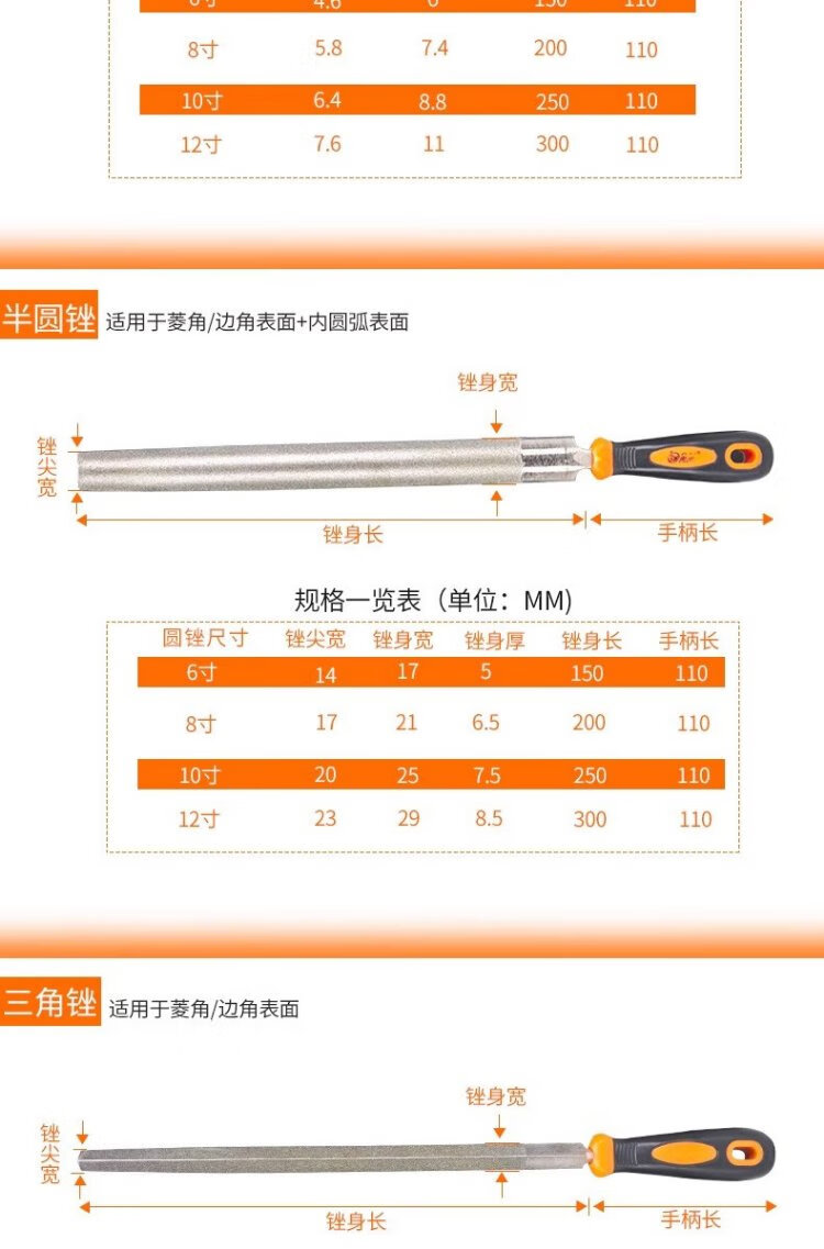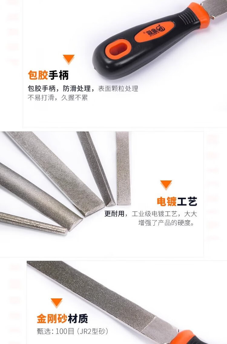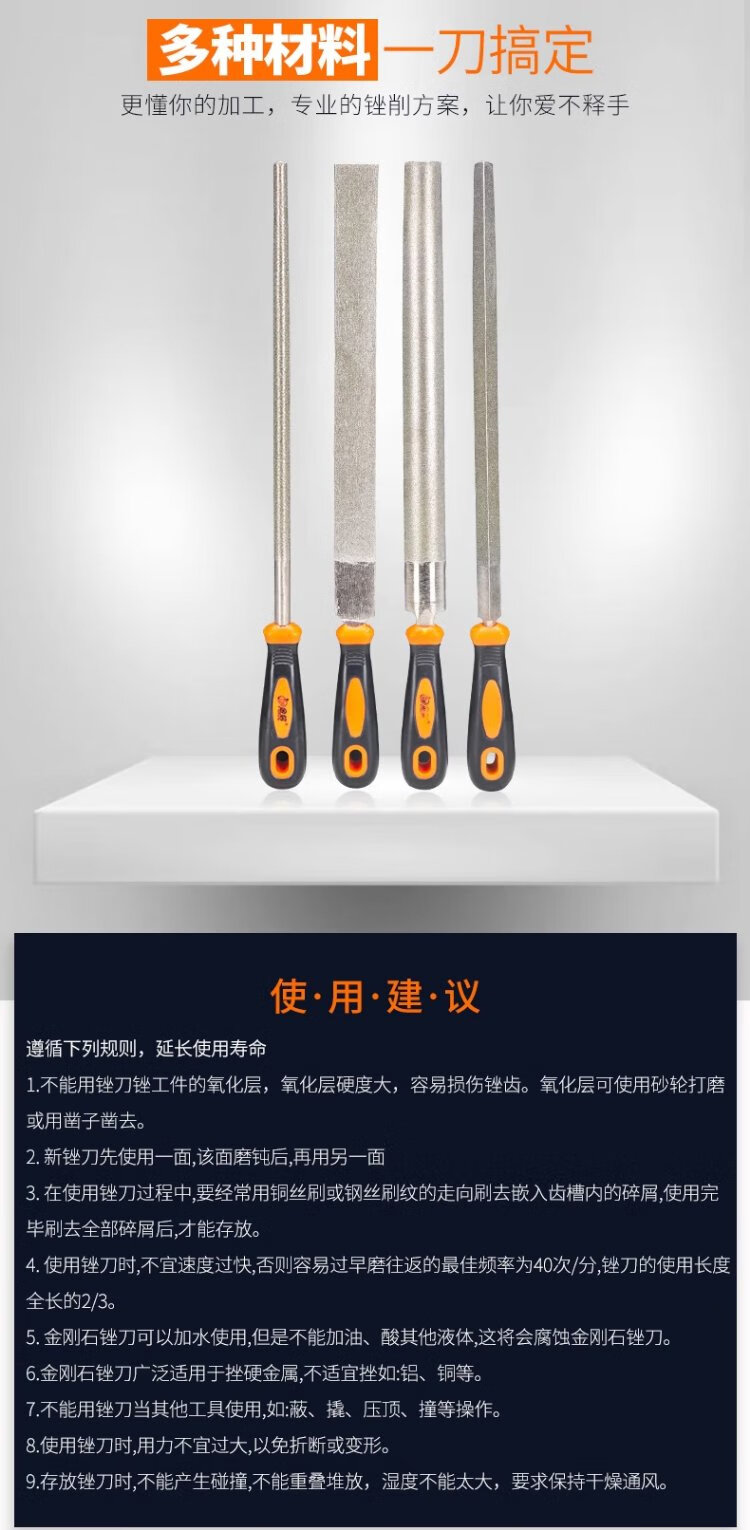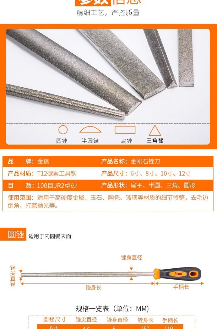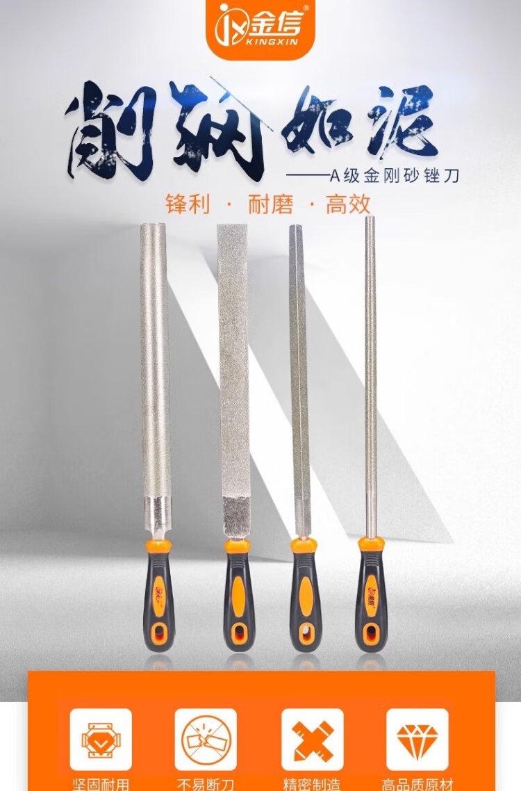 Jinxin diamond file alloy steel file metal large plate file emery rub knife grinding tool file knife 6 inches flat 1