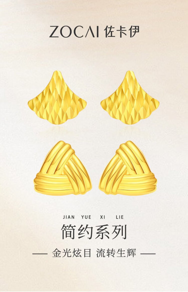 Zokai Yellow 18K Gold Stud Earrings Geometric Earrings Triangular Versatile Birthday Gift E03471
