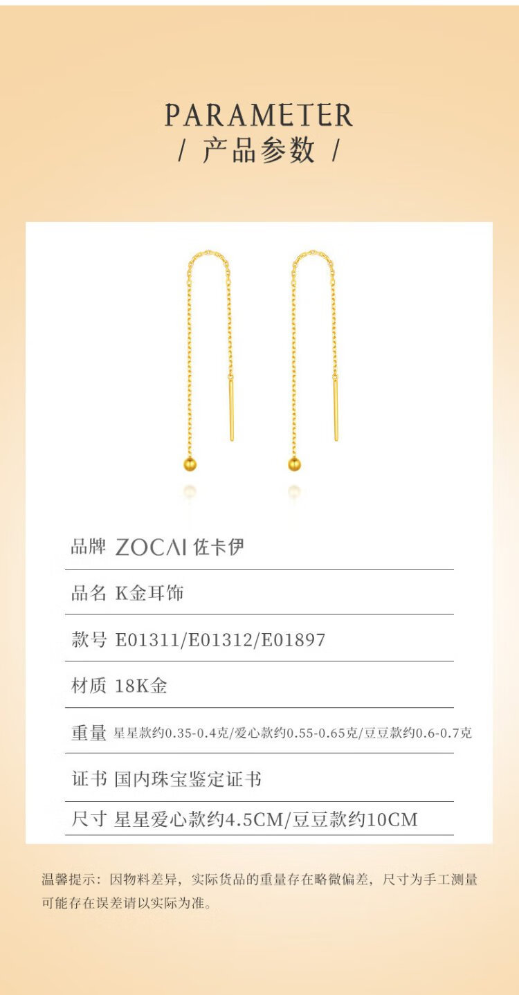 Zokai yellow 18K gold earrings, star earrings, fashionable and versatile birthday gift E01311