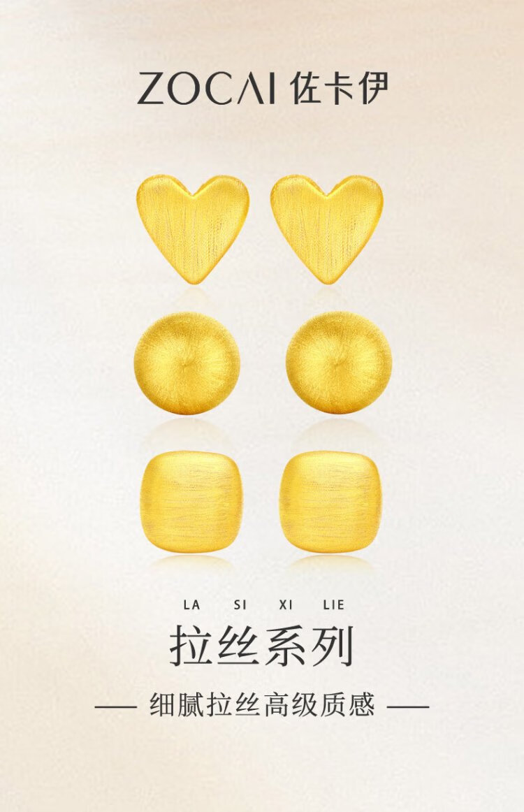 Zokai yellow 18K gold bean earrings brushed craft versatile birthday gift E03472