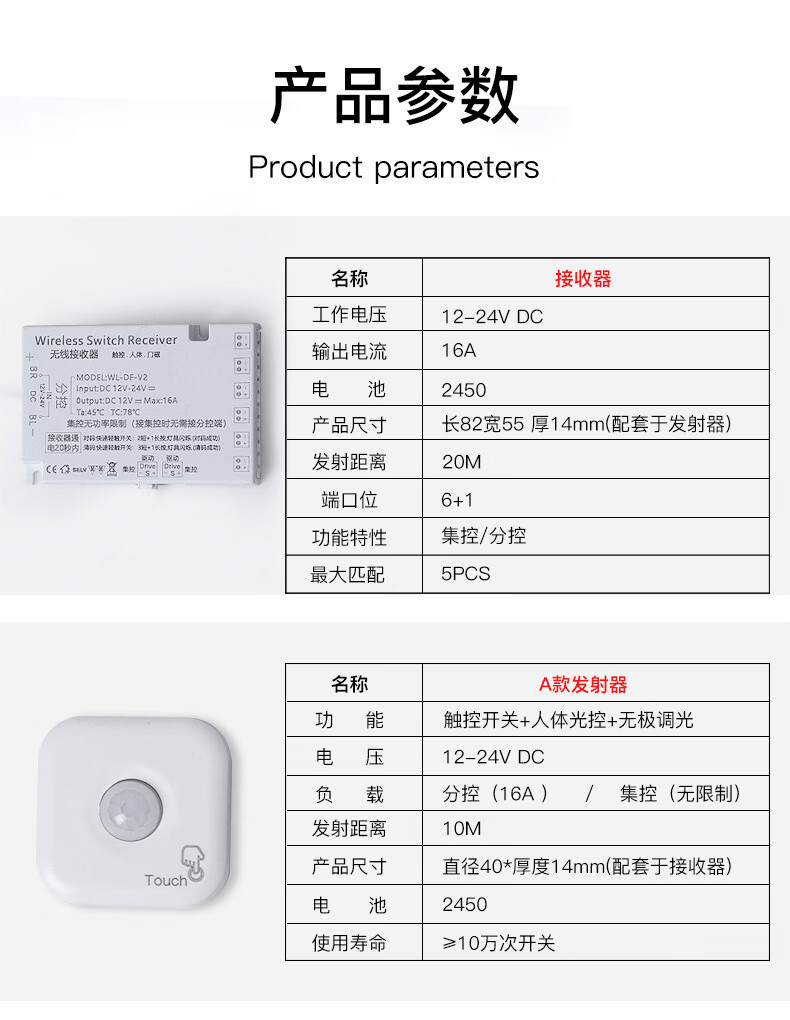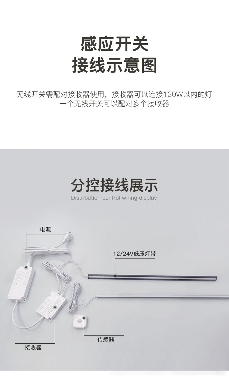 Tianshili wireless sensor switch light-controlled human body sensor wireless touch switch 12V24V wardrobe lamp smart door control light-controlled human body + receiver