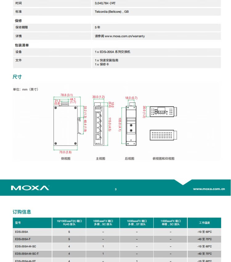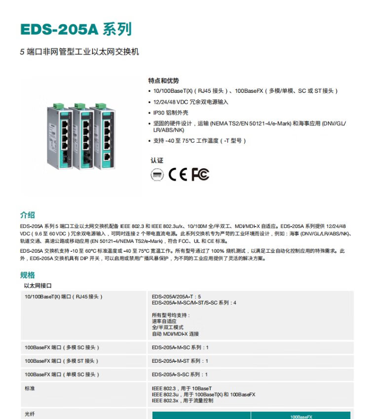 MOXA EDS-205A 5 electrical port 100M unmanaged industrial Ethernet switch