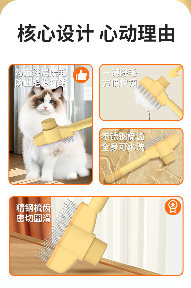 ERGOBABY cat comb, cat combing special debugging comb, bristle artifact, cleaning long hair row comb, needle comb - yellow