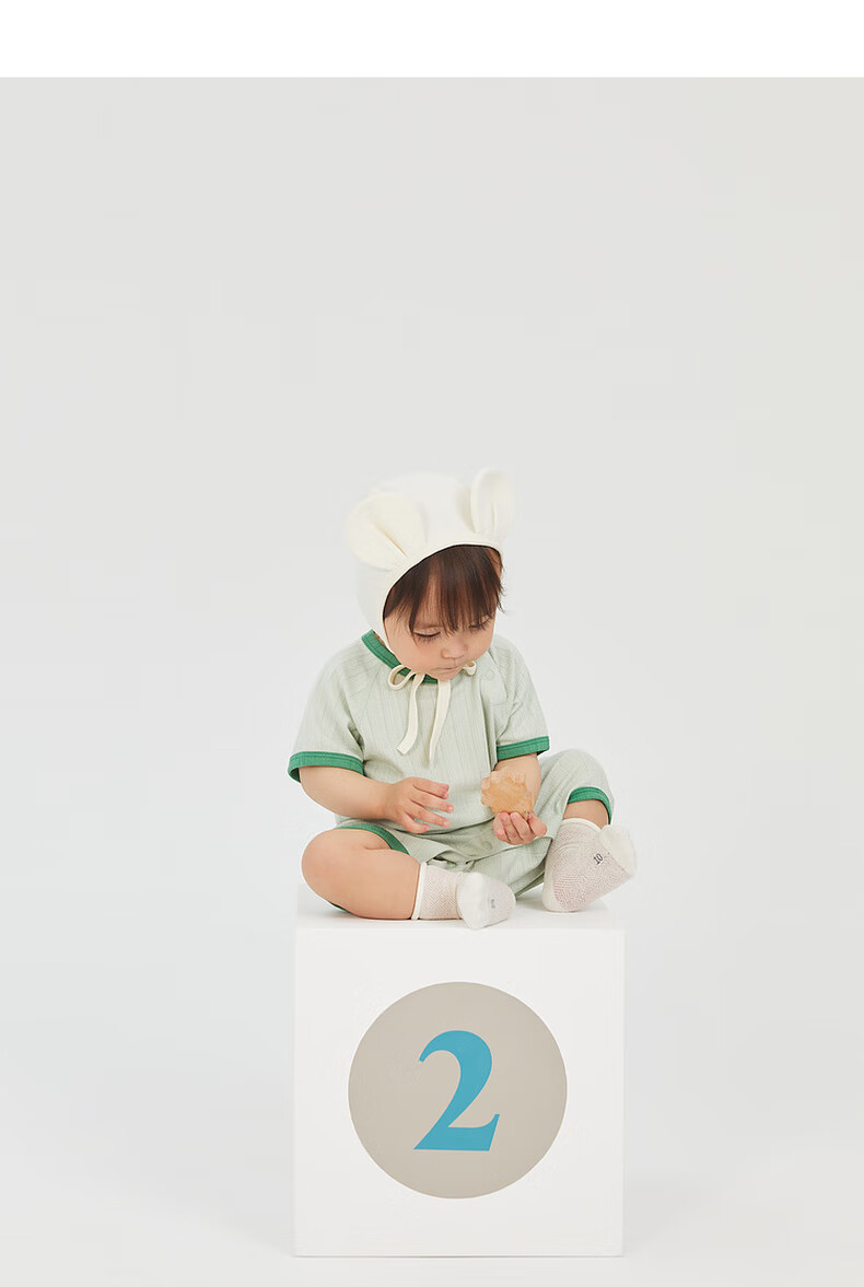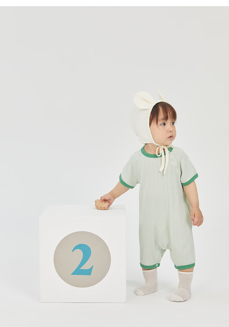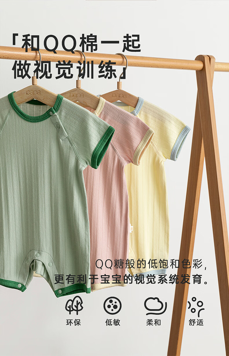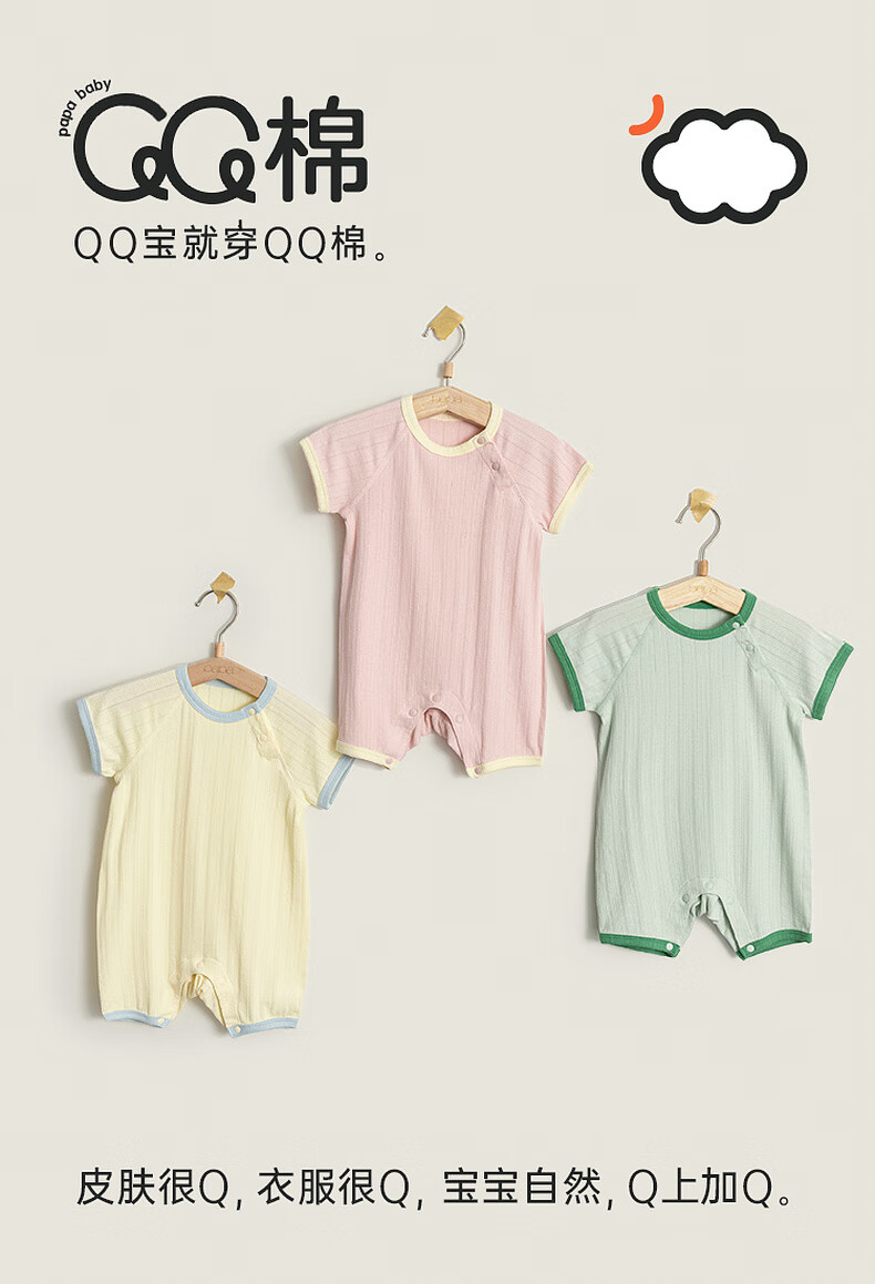 Papa QQ cotton summer baby clothes for men and women, one-piece bodysuits, breathable, elastic and skin-friendly, yellow 66cm