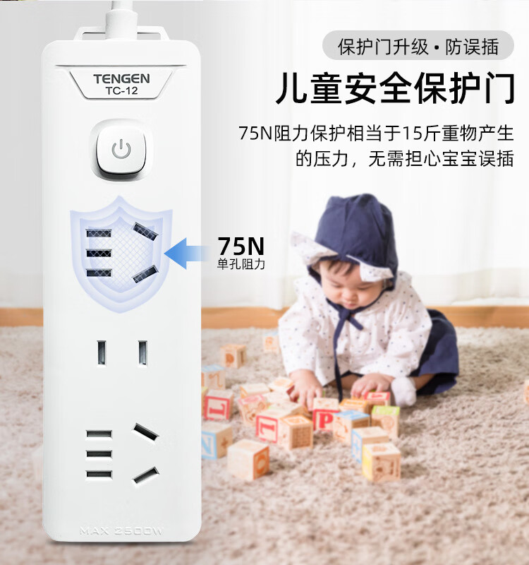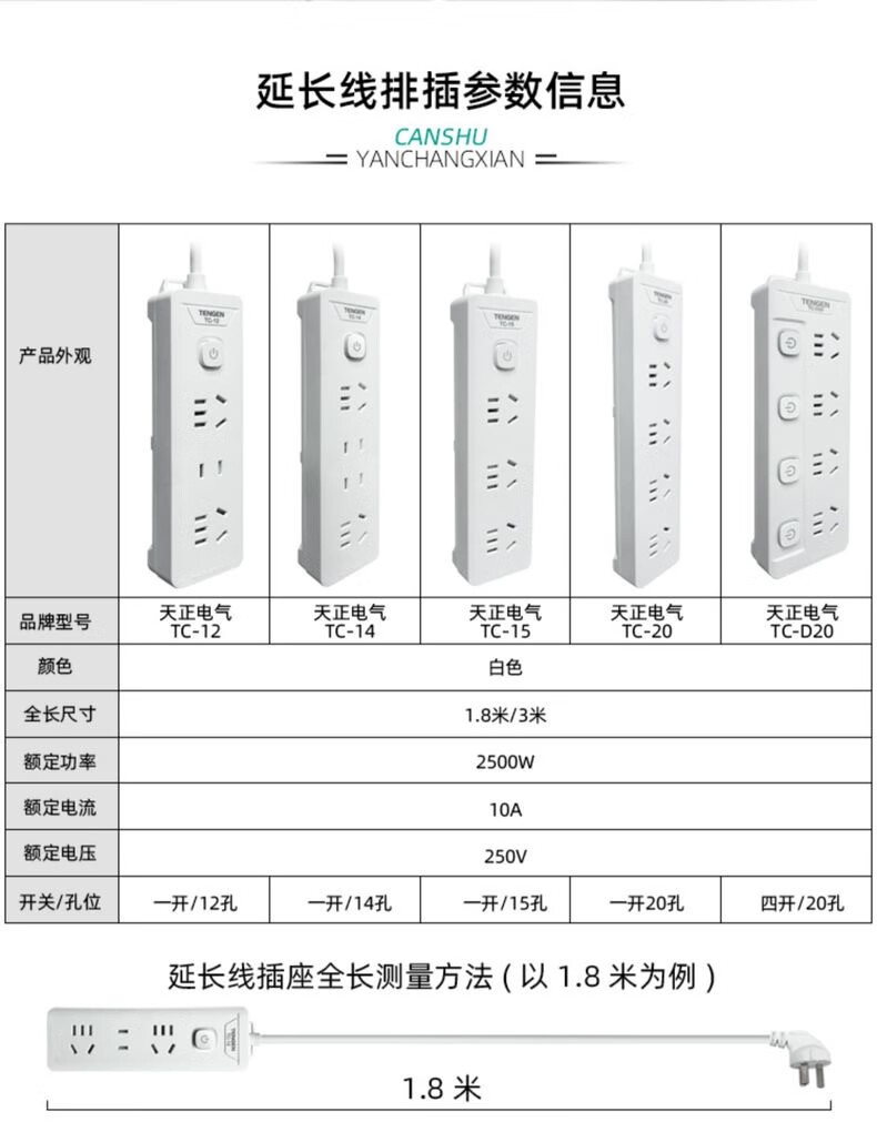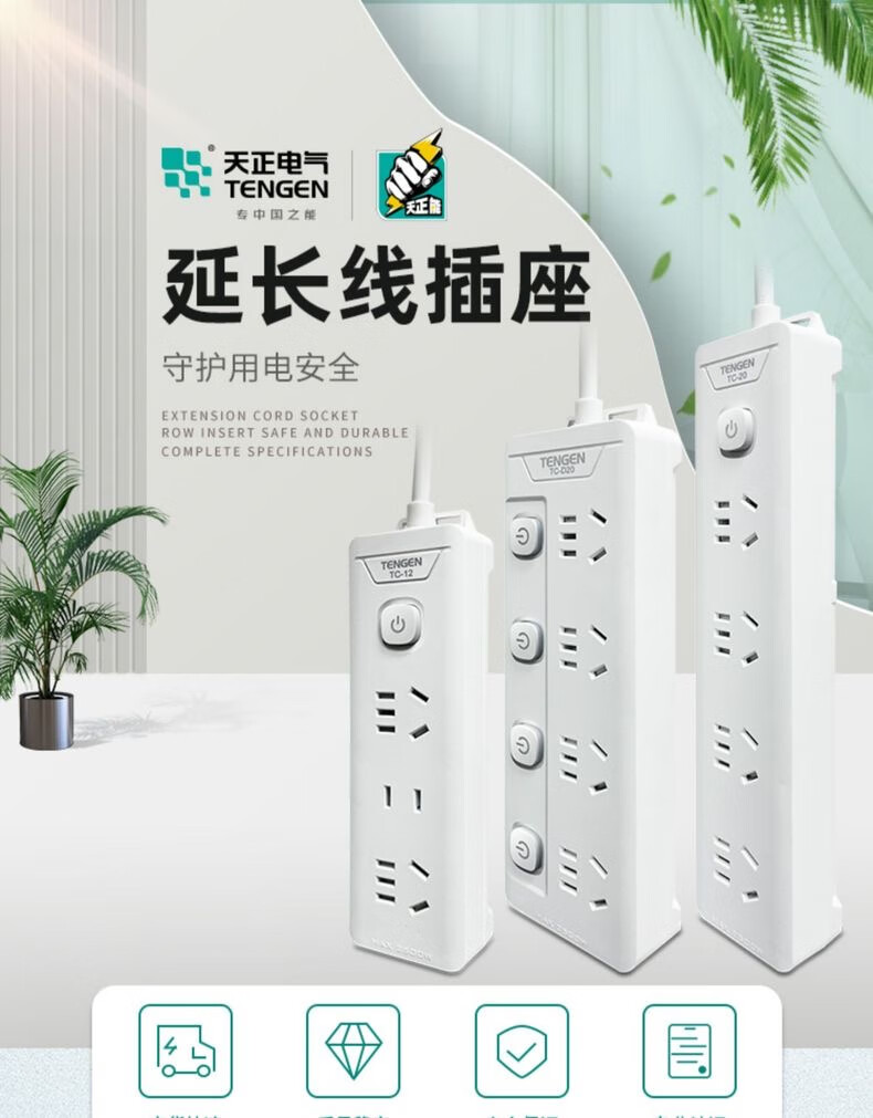 Tianzheng Electric's new national standard socket plug board, plug strip, strip plug, drag strip, plug strip, wiring board, 4-position five-hole sub-control 1.8 meter strip plug
