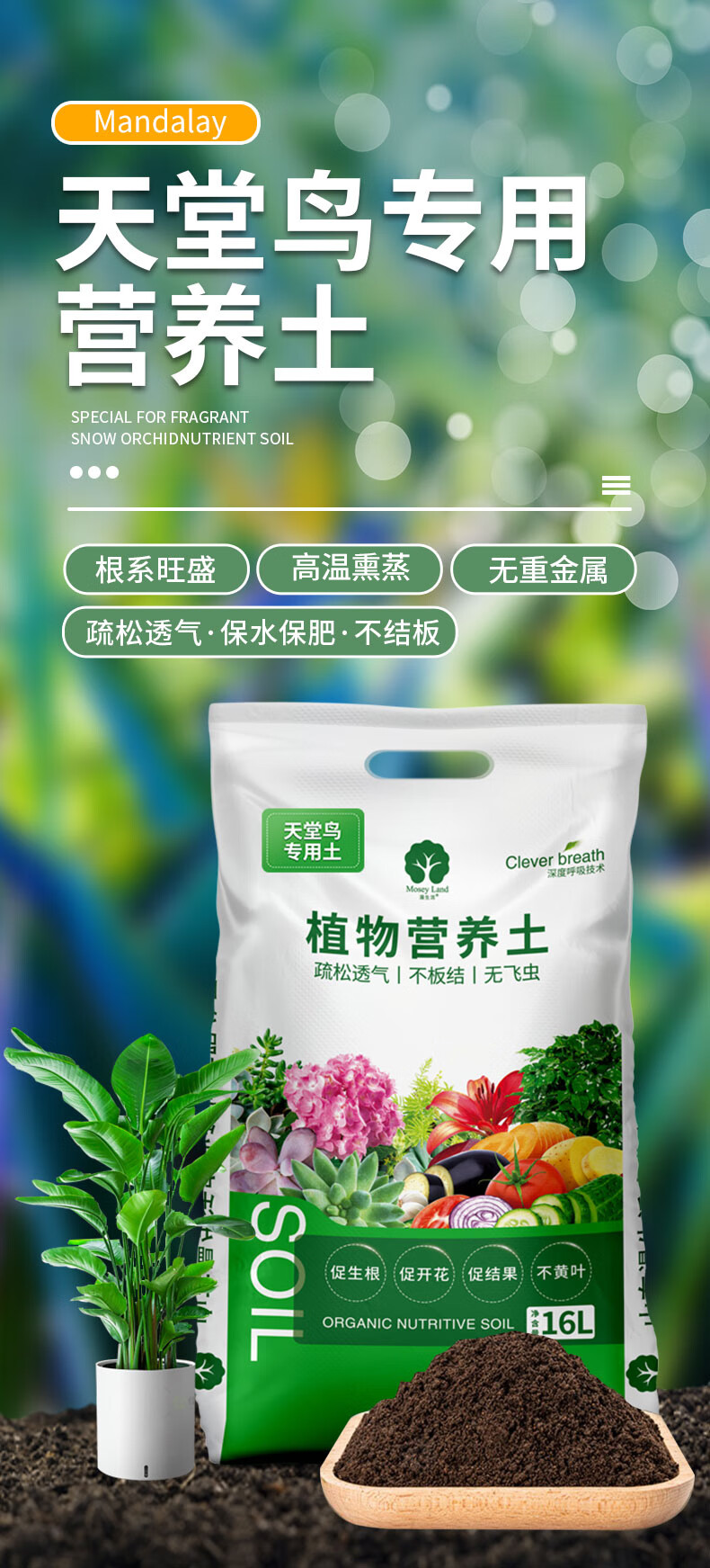 Manlife 16L Bird of Paradise nutritional soil for growing flowers and vegetables, special soil for growing peat soil, organic soil for planting soil, coconut bran green plants