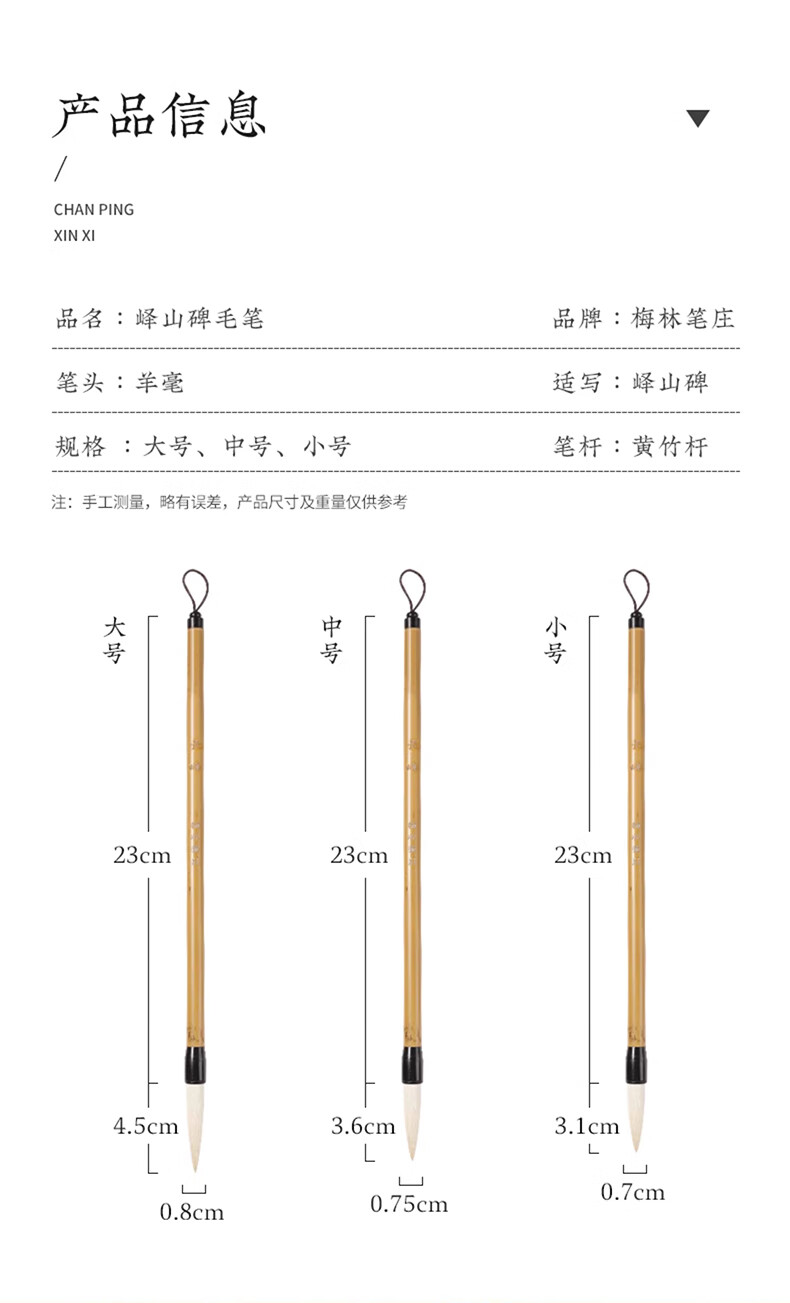 Meilin Bizhuang Yishan Monument Seal Script Brush Adult Professional Grade Enhanced Sheep Hair Changfeng Brush Seal Script Official Script Beginner Practice Calligraphy Seal Script Iron Wire Seal Script Practice Copying Small Seal Script Calligraphy Brush
