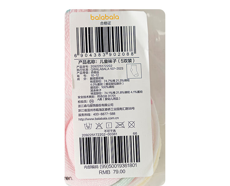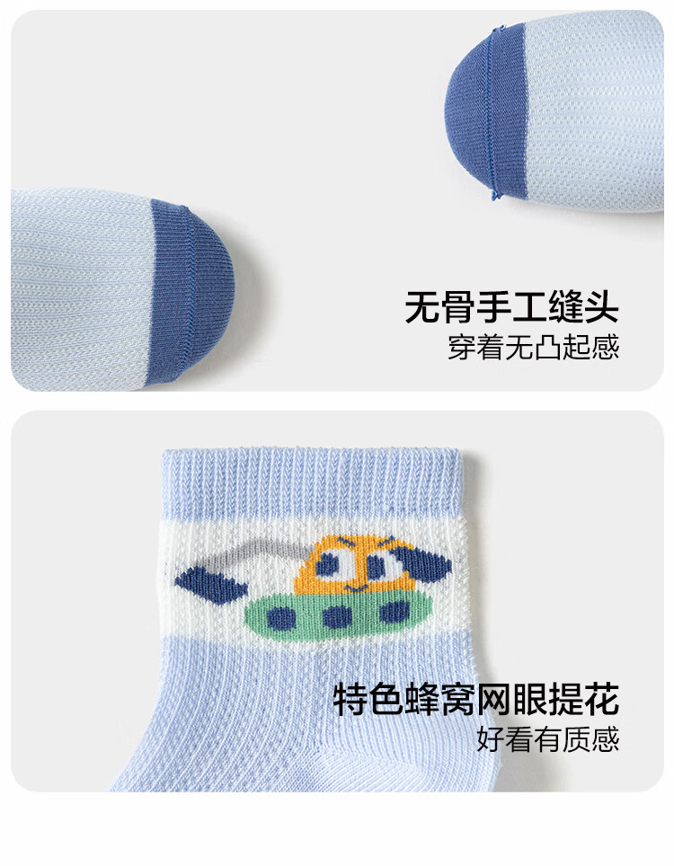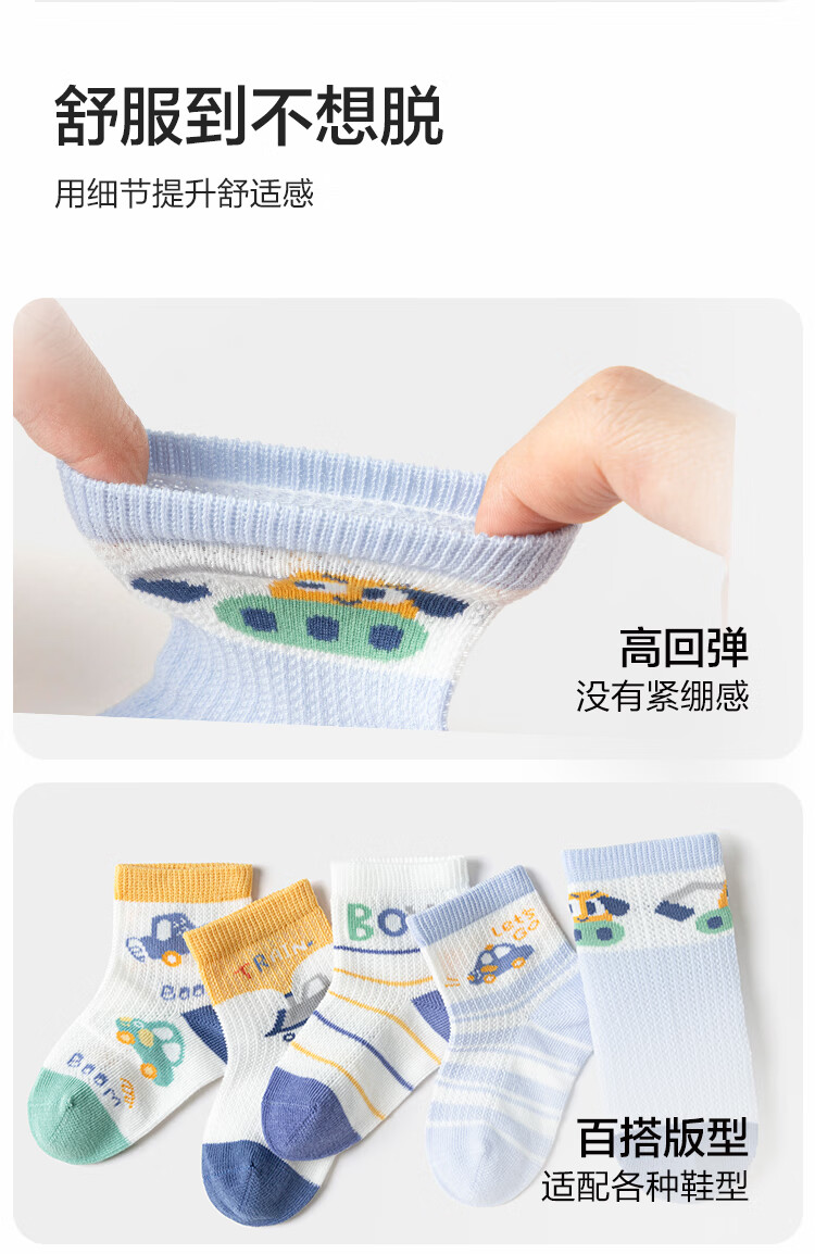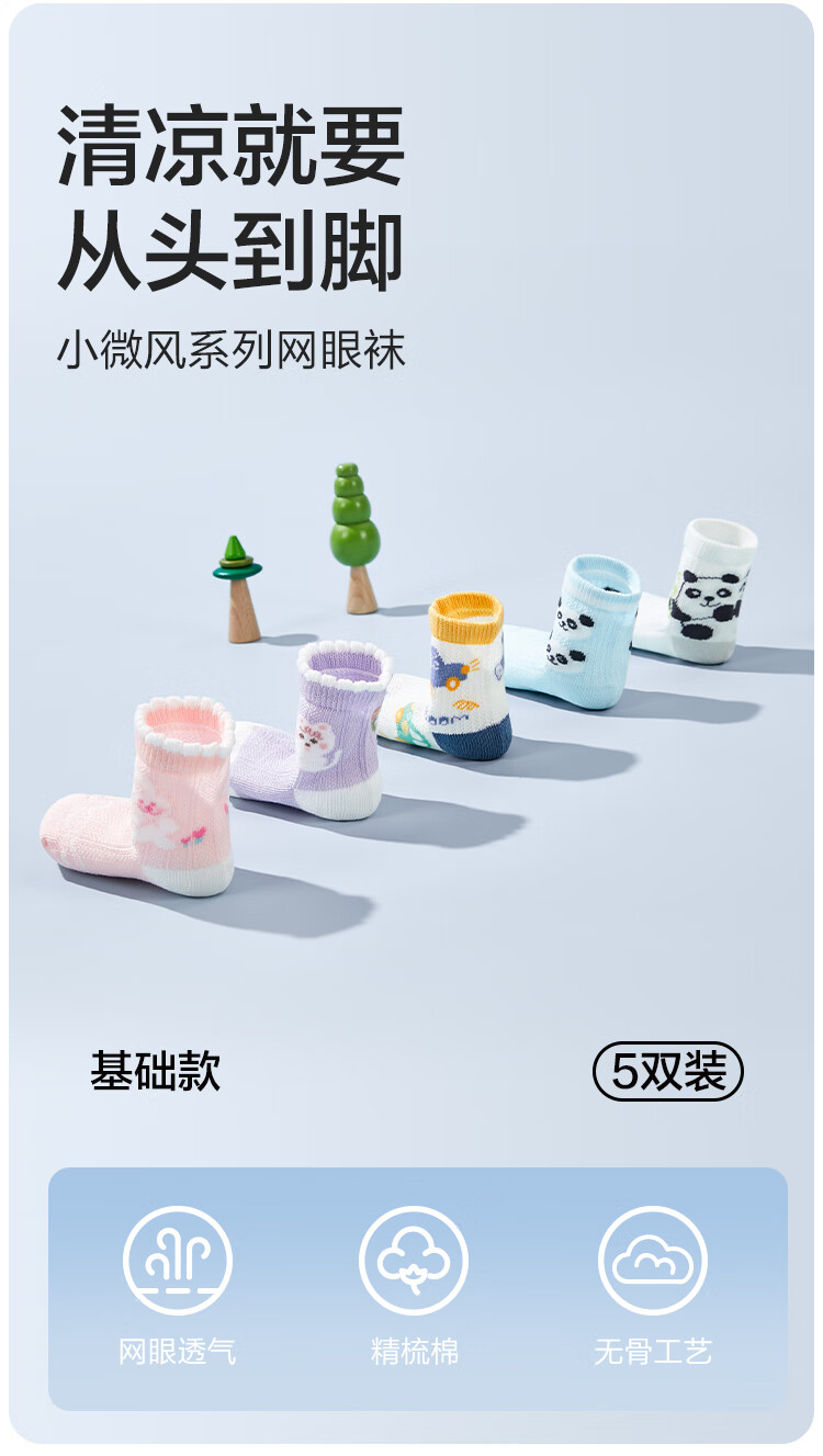 Balabala socks summer mesh socks thin breathable infant socks anti-cold jacquard five pairs pack 209225172202