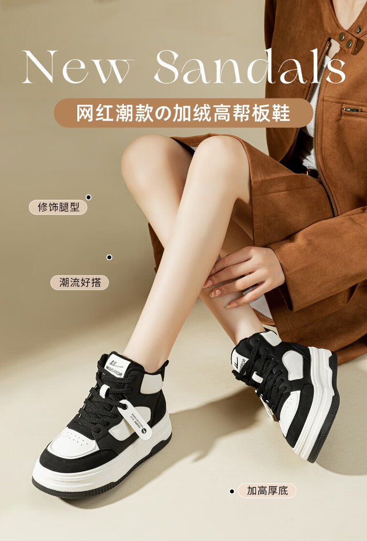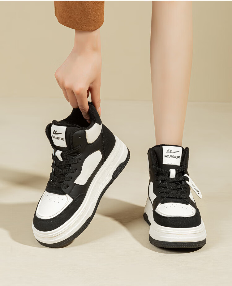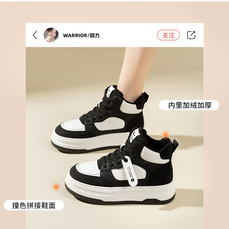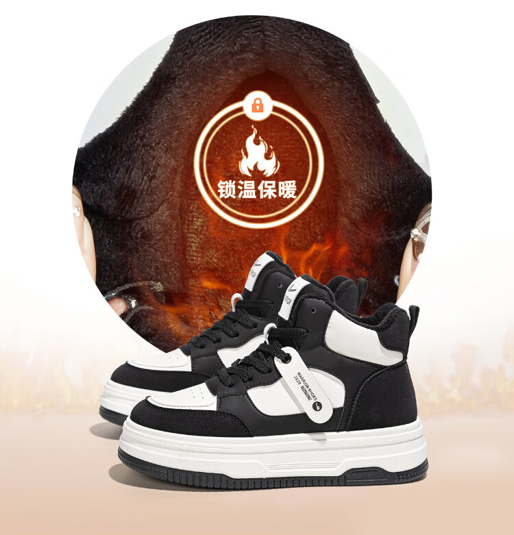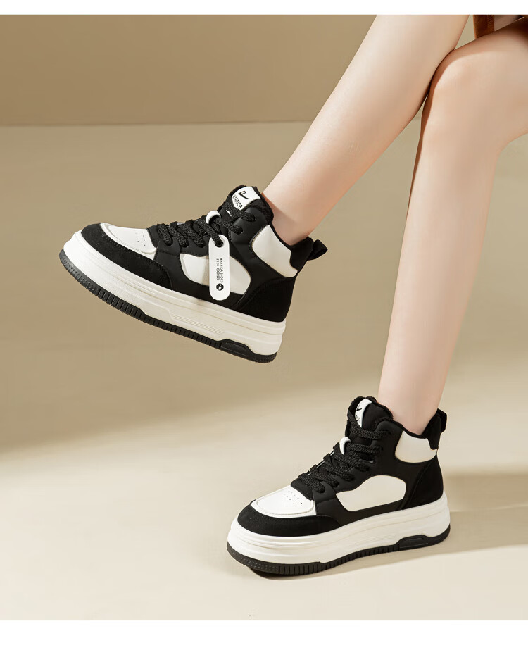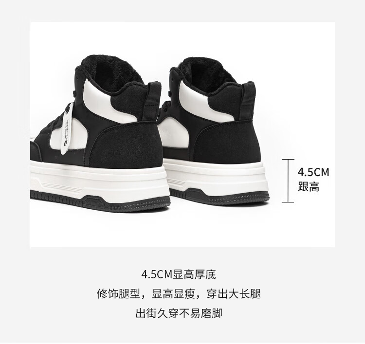 Pull back women's shoes, winter velvet warm high-top sneakers for women, thick soles for heightening, fashionable sports and leisure shoes for women, white and black 39