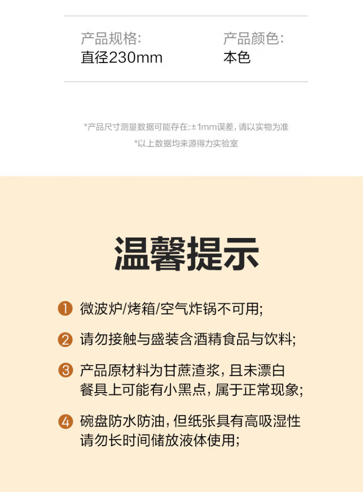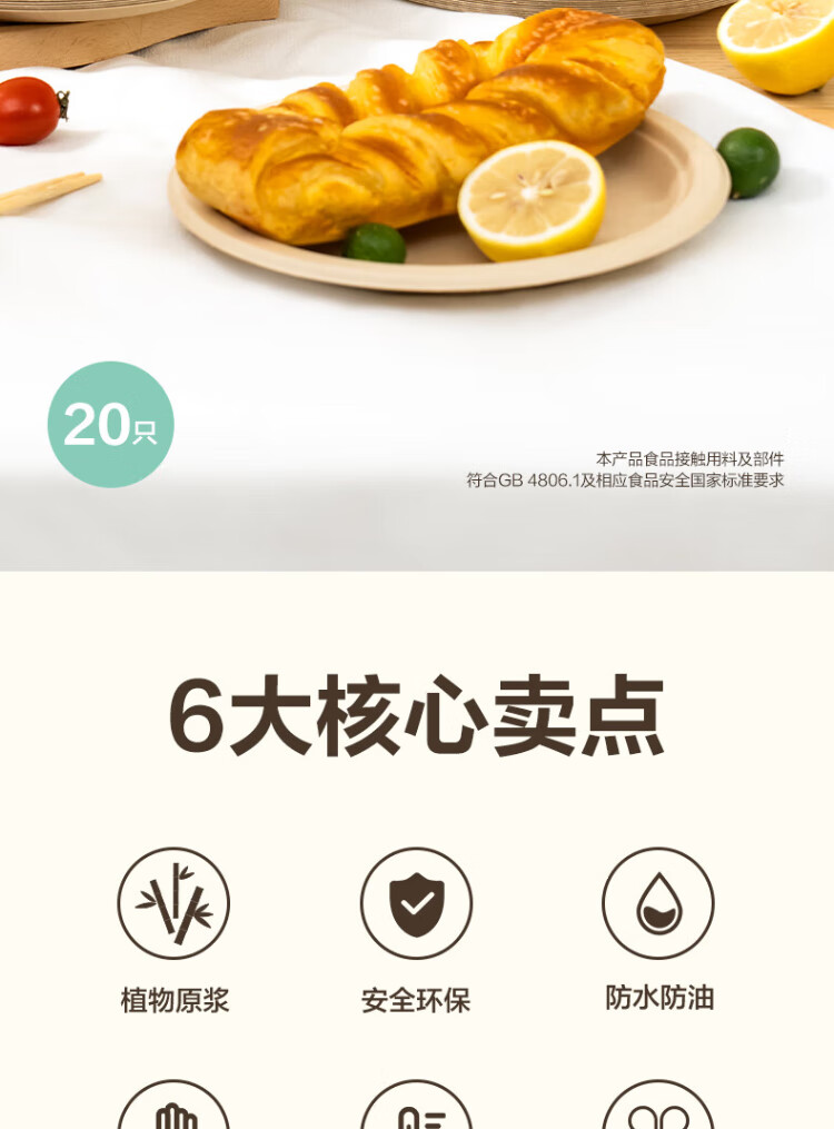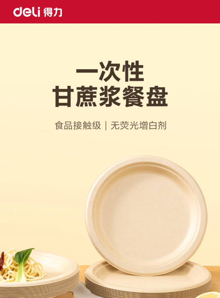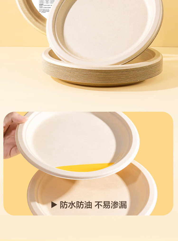 Deli disposable dinner plates and tableware food-grade environmentally friendly sugar cane pulp plates cake paper plates outdoor barbecue 9 inches 20 pieces