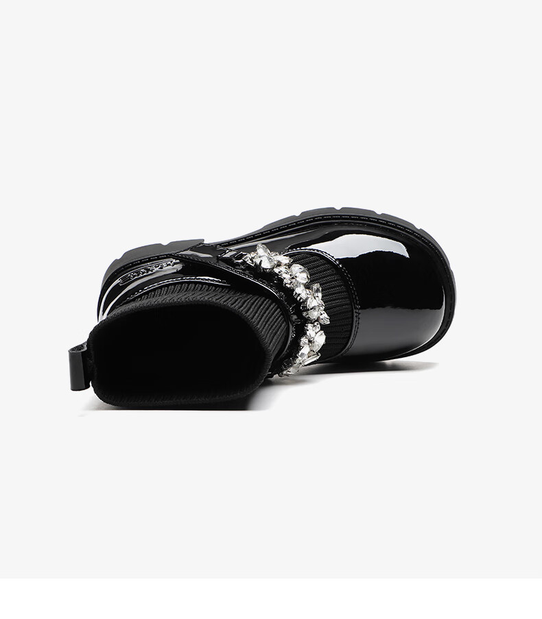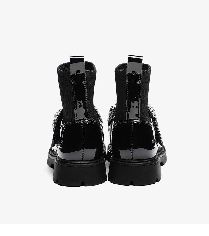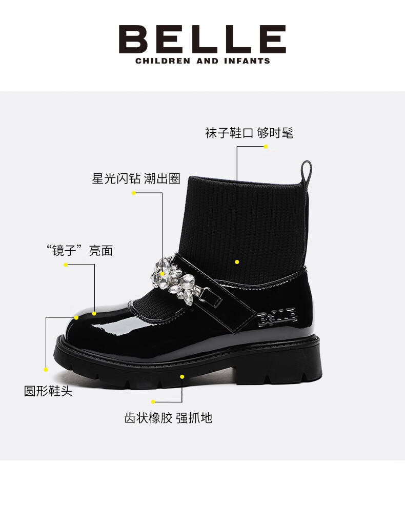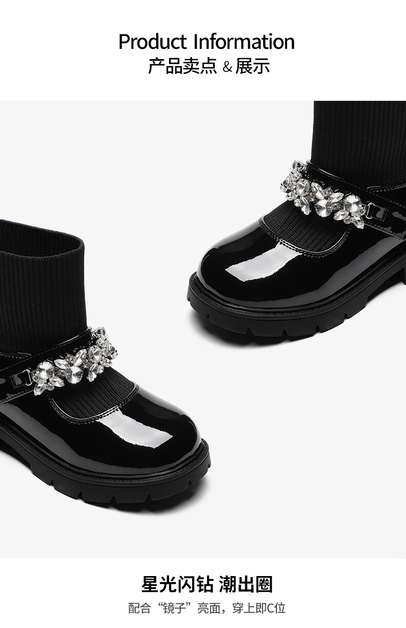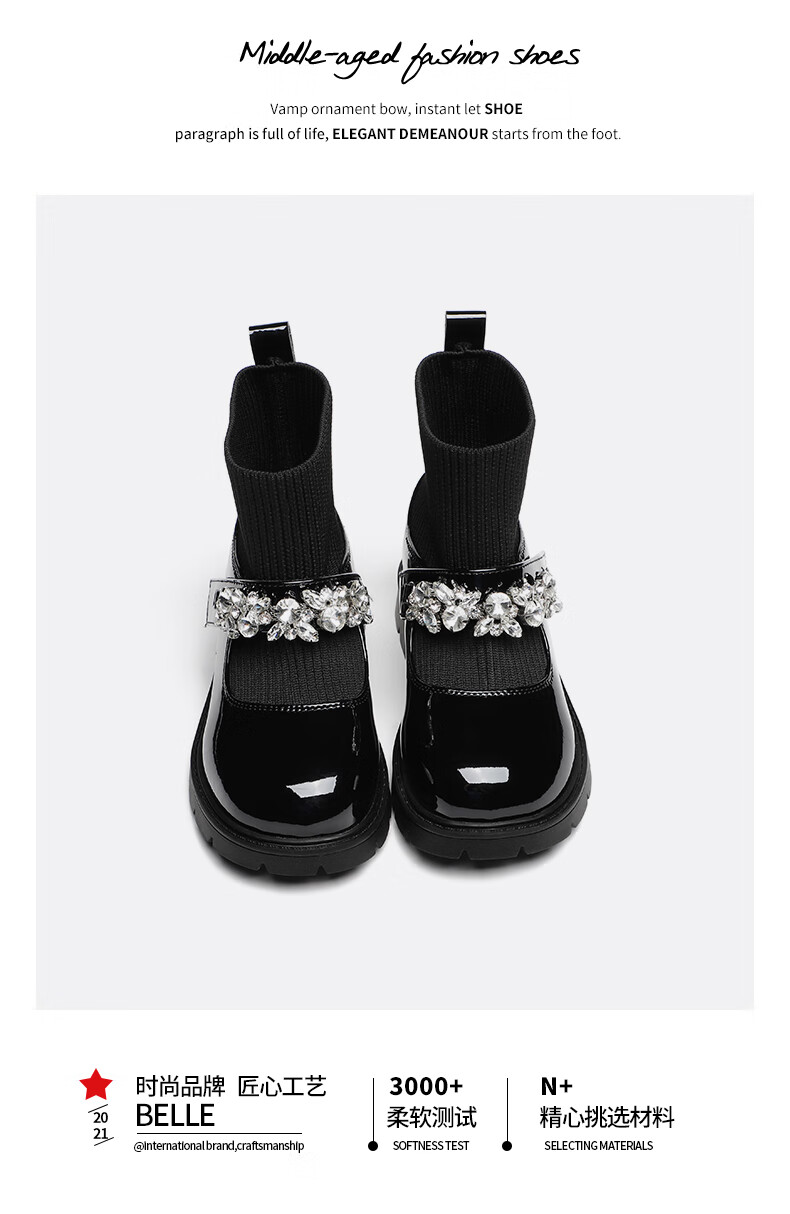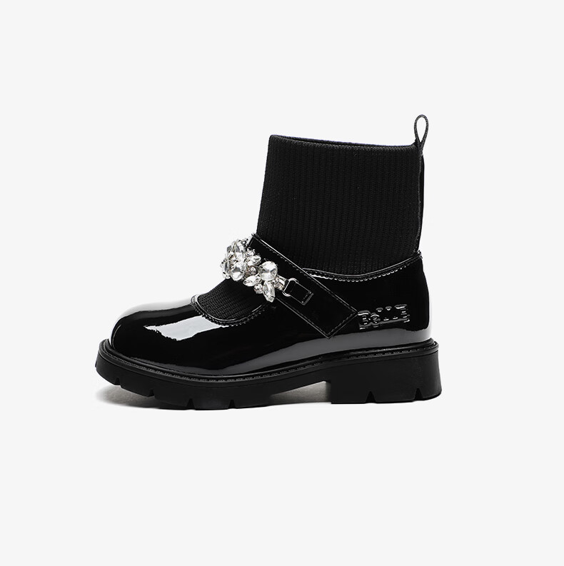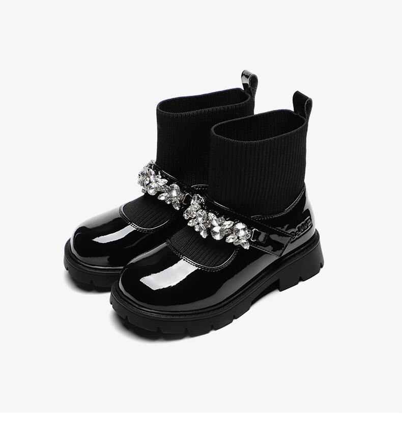 Belle Children's Shoes Girls Princess Boots 2024 Autumn Short Boots Mary Jane Shoes Stretch Socks Boots Obsidian Black 30