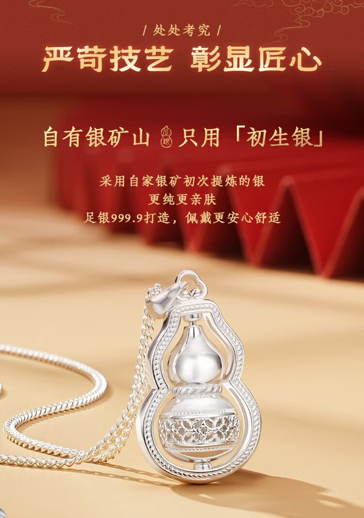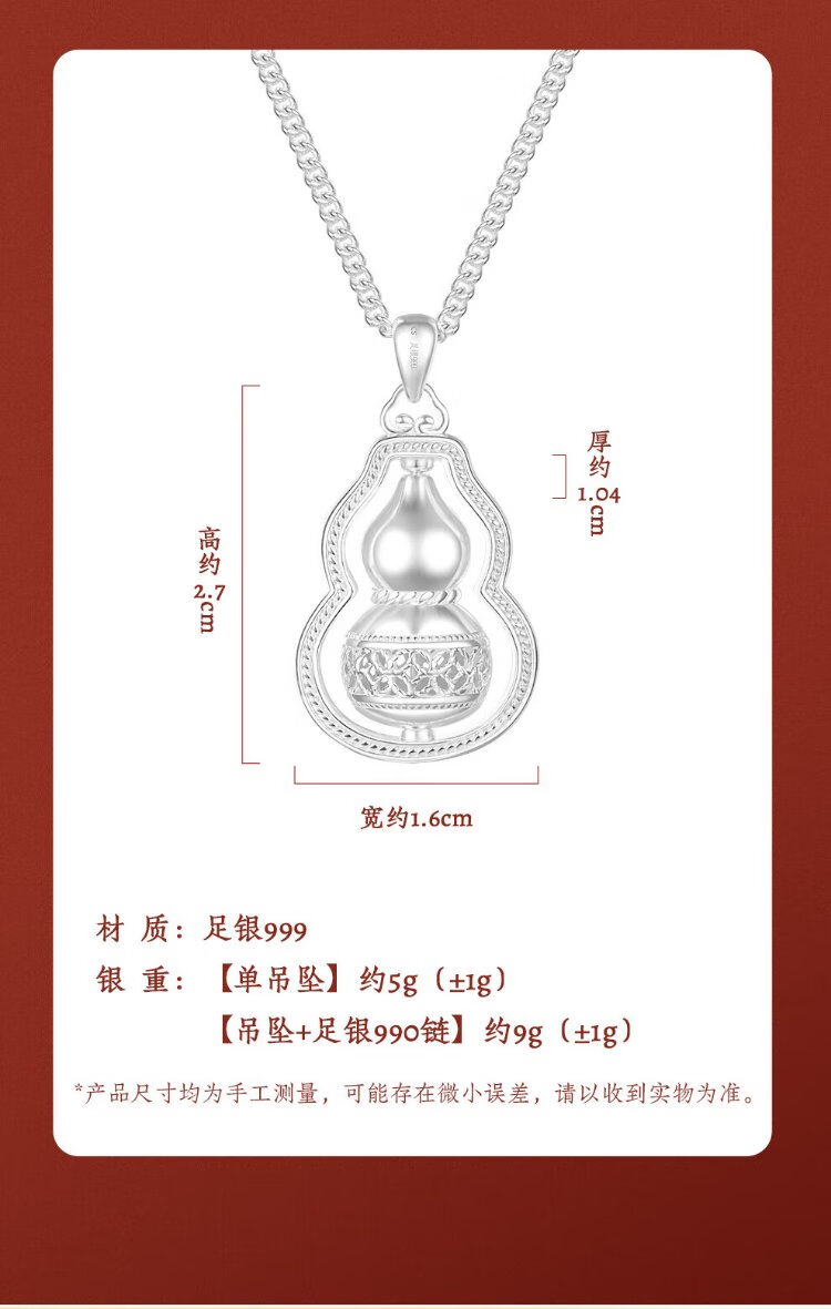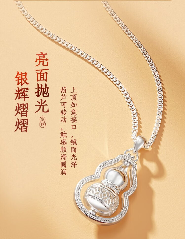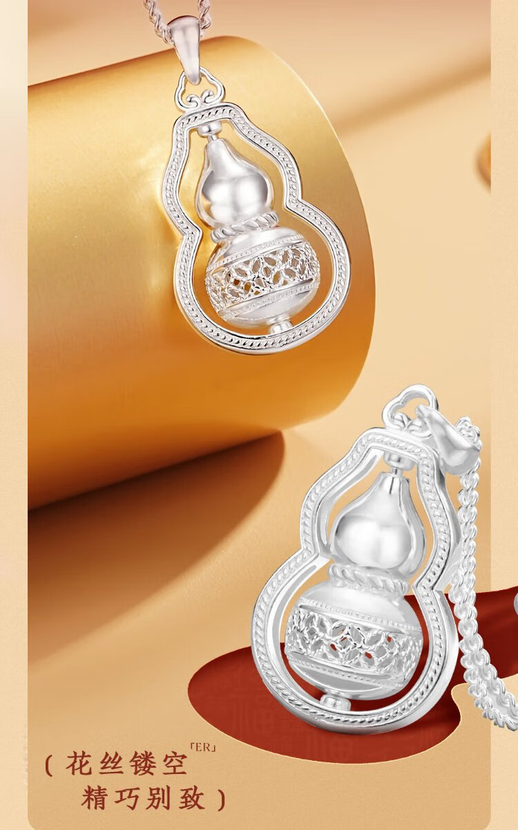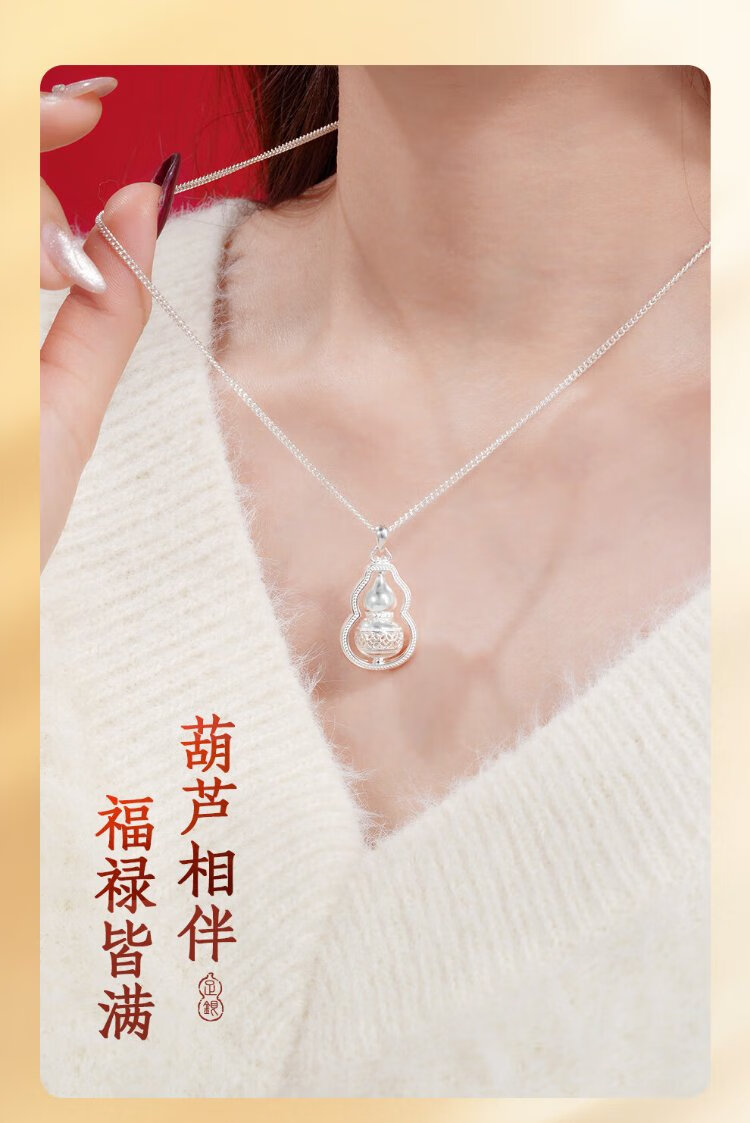 Zhenhui Silver Pure Silver 999 Gourd Pendant Transfer Necklace Women's Clavicle Chain Fashion Jewelry Birthday Gift for Girlfriend