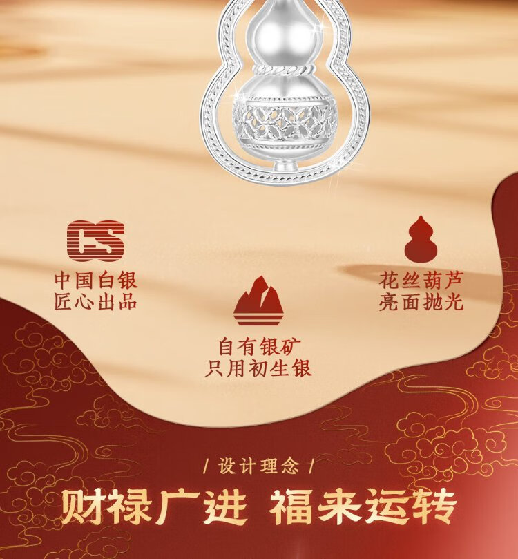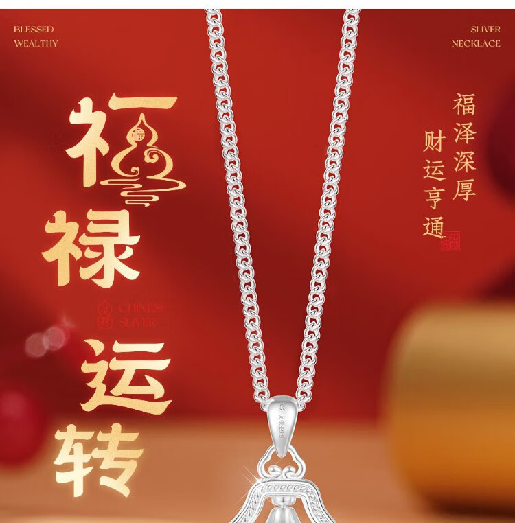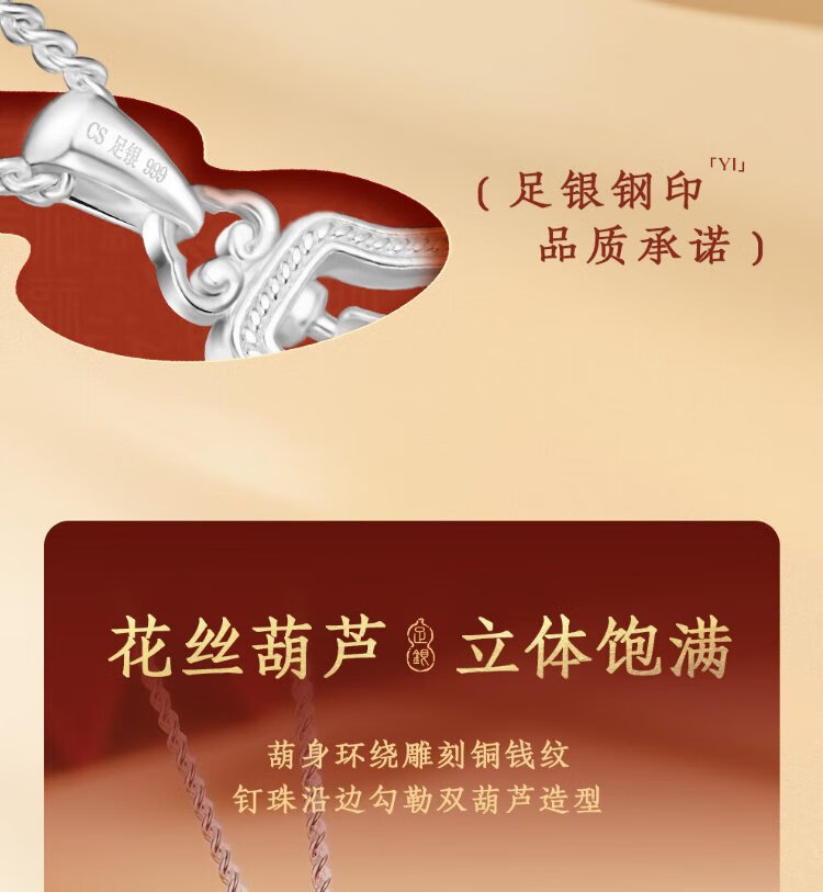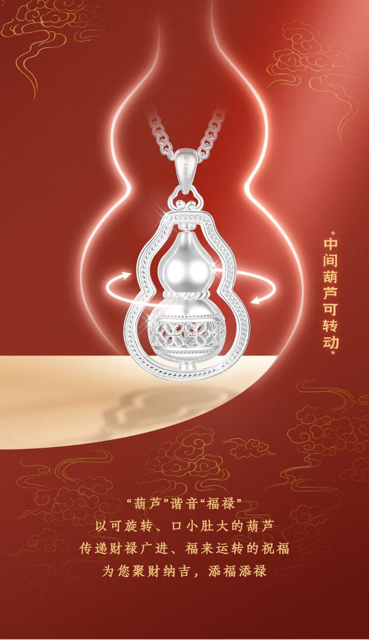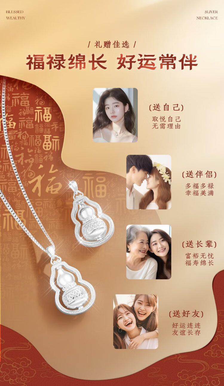 Zhenhui Silver Pure Silver 999 Gourd Pendant Transfer Necklace Women's Clavicle Chain Fashion Jewelry Birthday Gift for Girlfriend