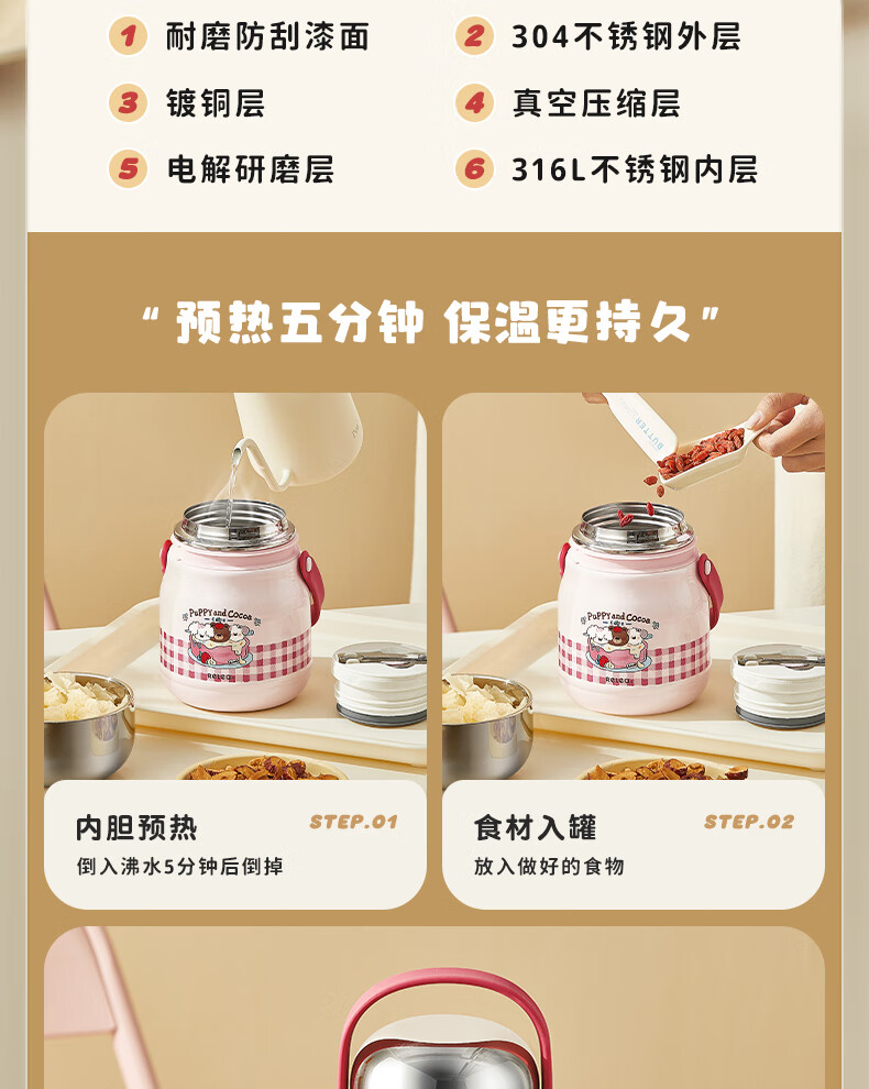 Wu Biological Stew Beaker 316L Stainless Steel Insulated Lunch Box Large Capacity Stew Pot Portable Work Stew Porridge Soup Pot Holiday Gift