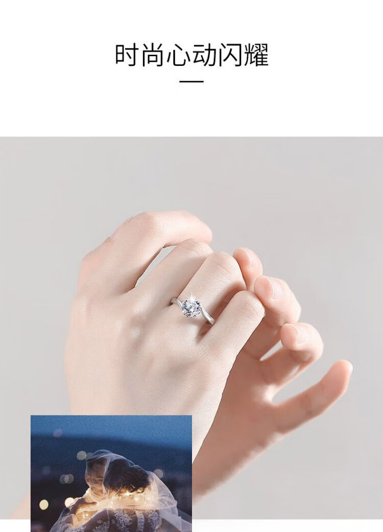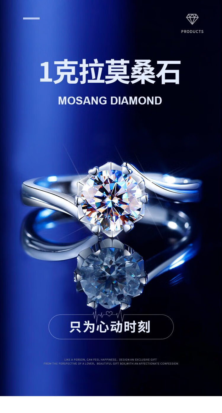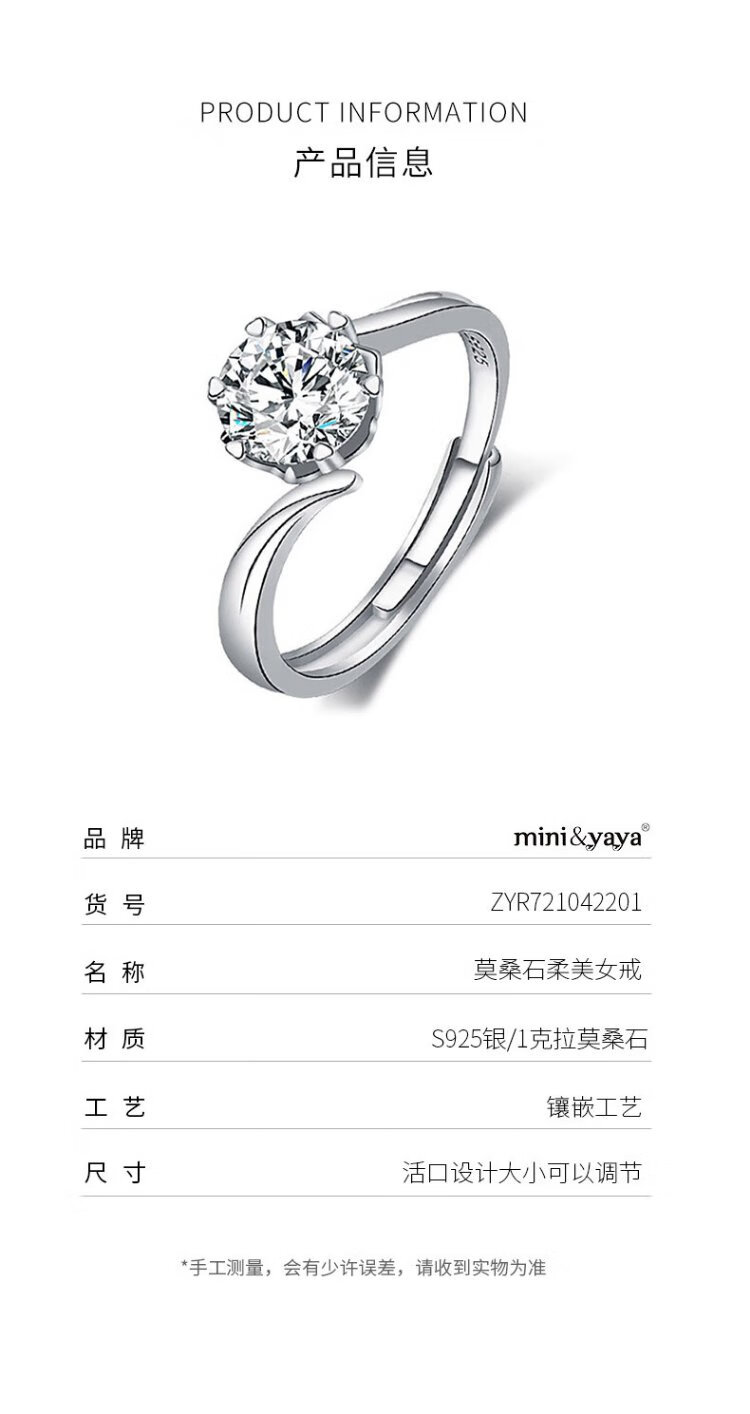Mini&yaya one carat moissanite silver ring for ladies proposal, engagement, Valentine's Day birthday gift for girlfriend and wife