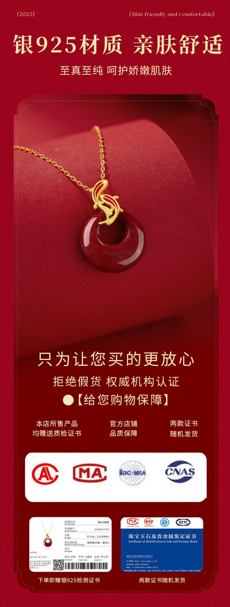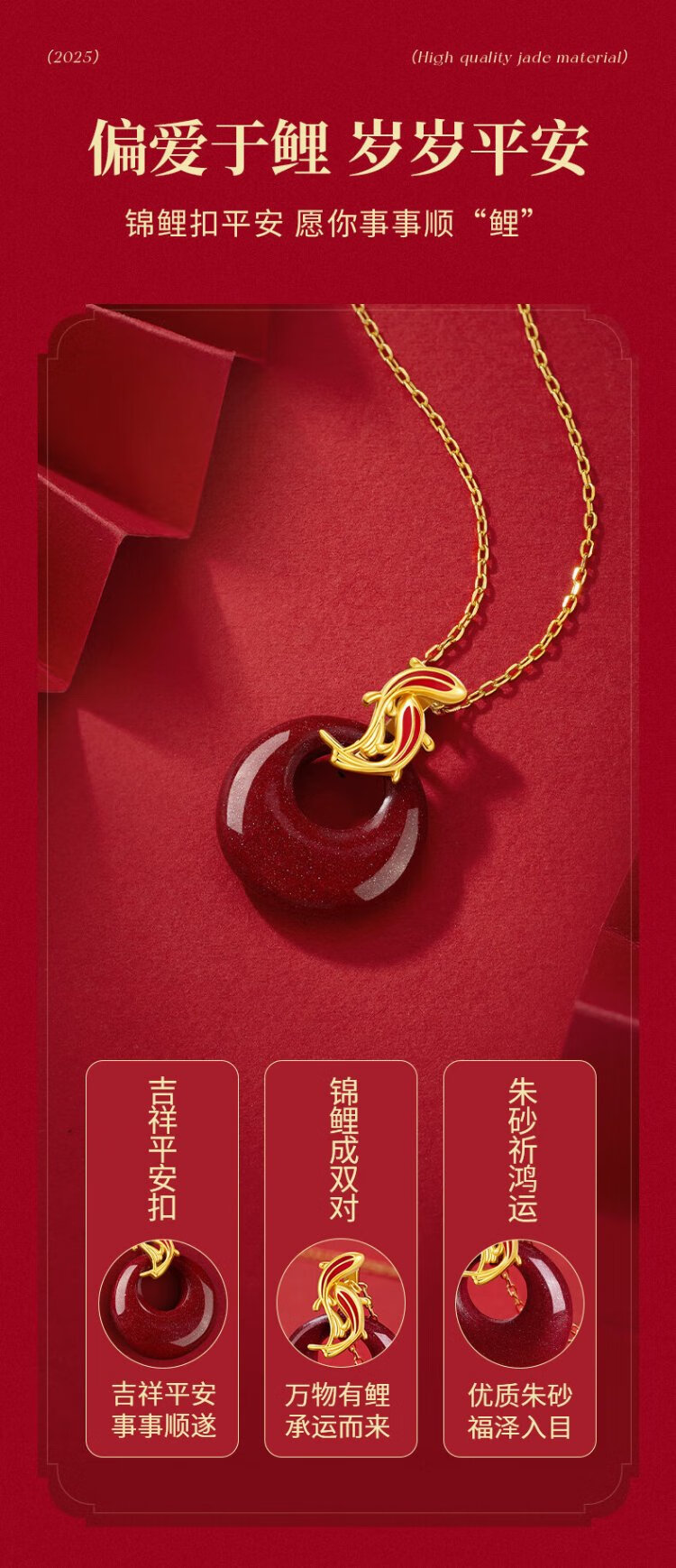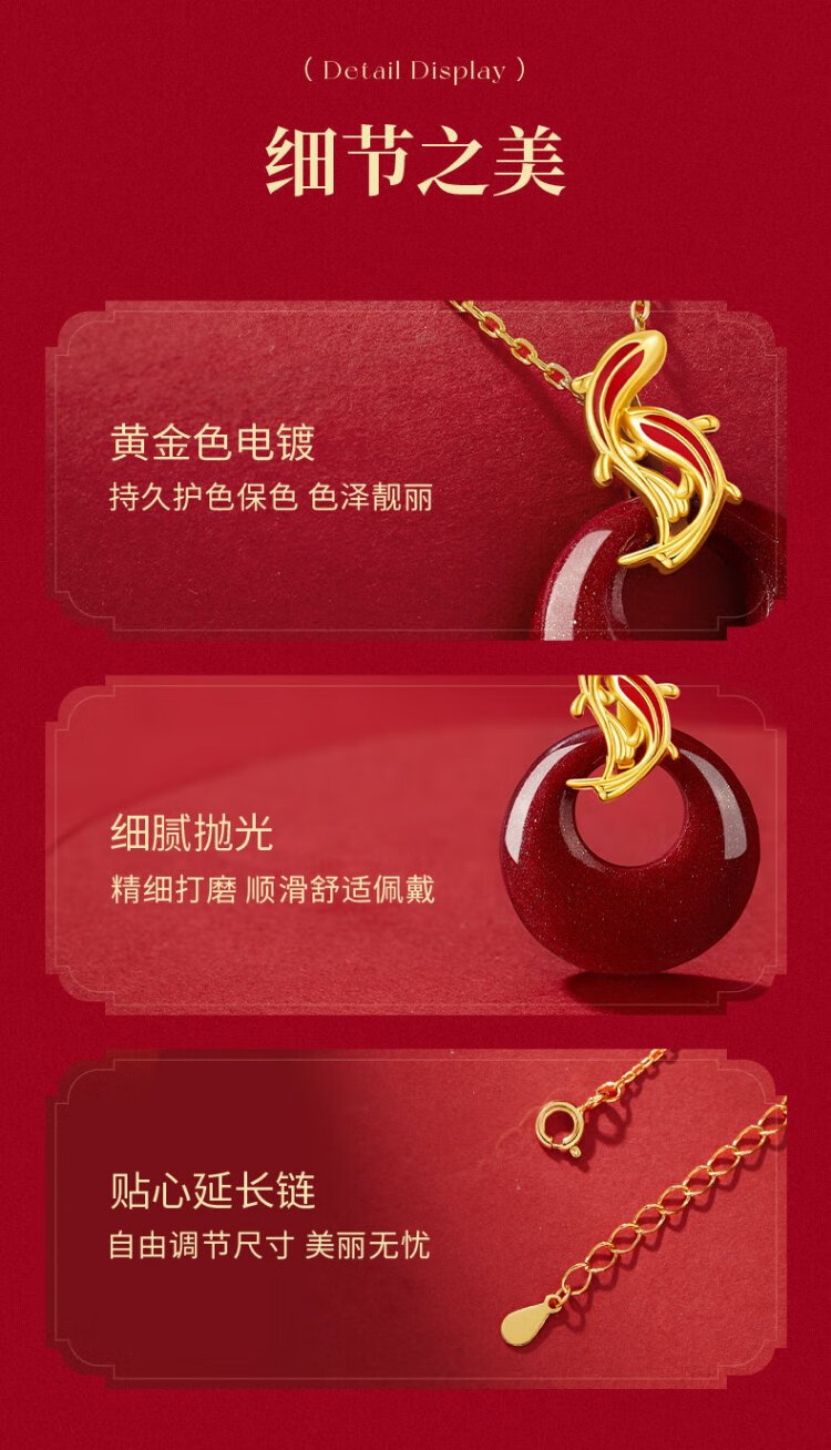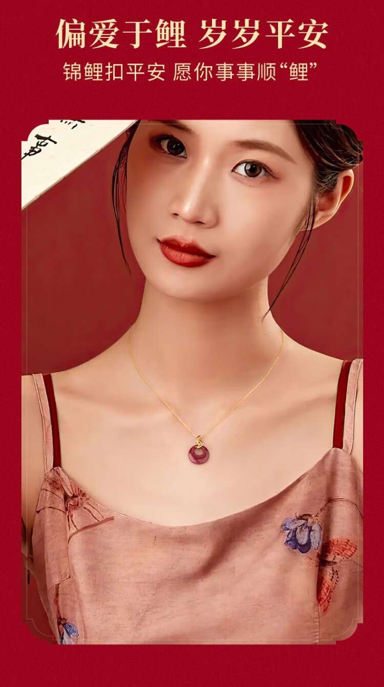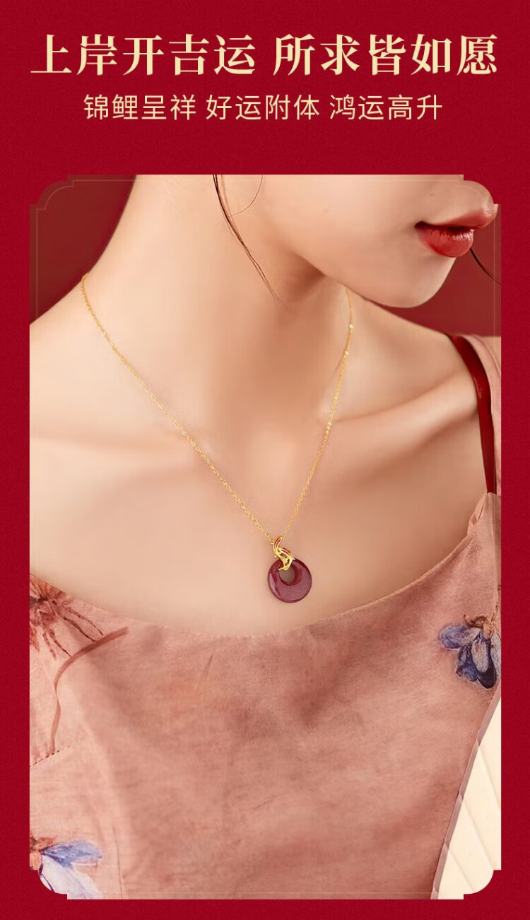 Zhen Shang Silver Chinese Gold Zodiac Year of the Horse Koi Cinnabar Peaceful Buckle Silver Necklace for Girls Japanese Zodiac Year Gift for Girlfriend
