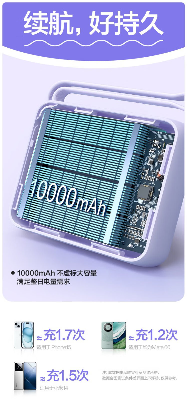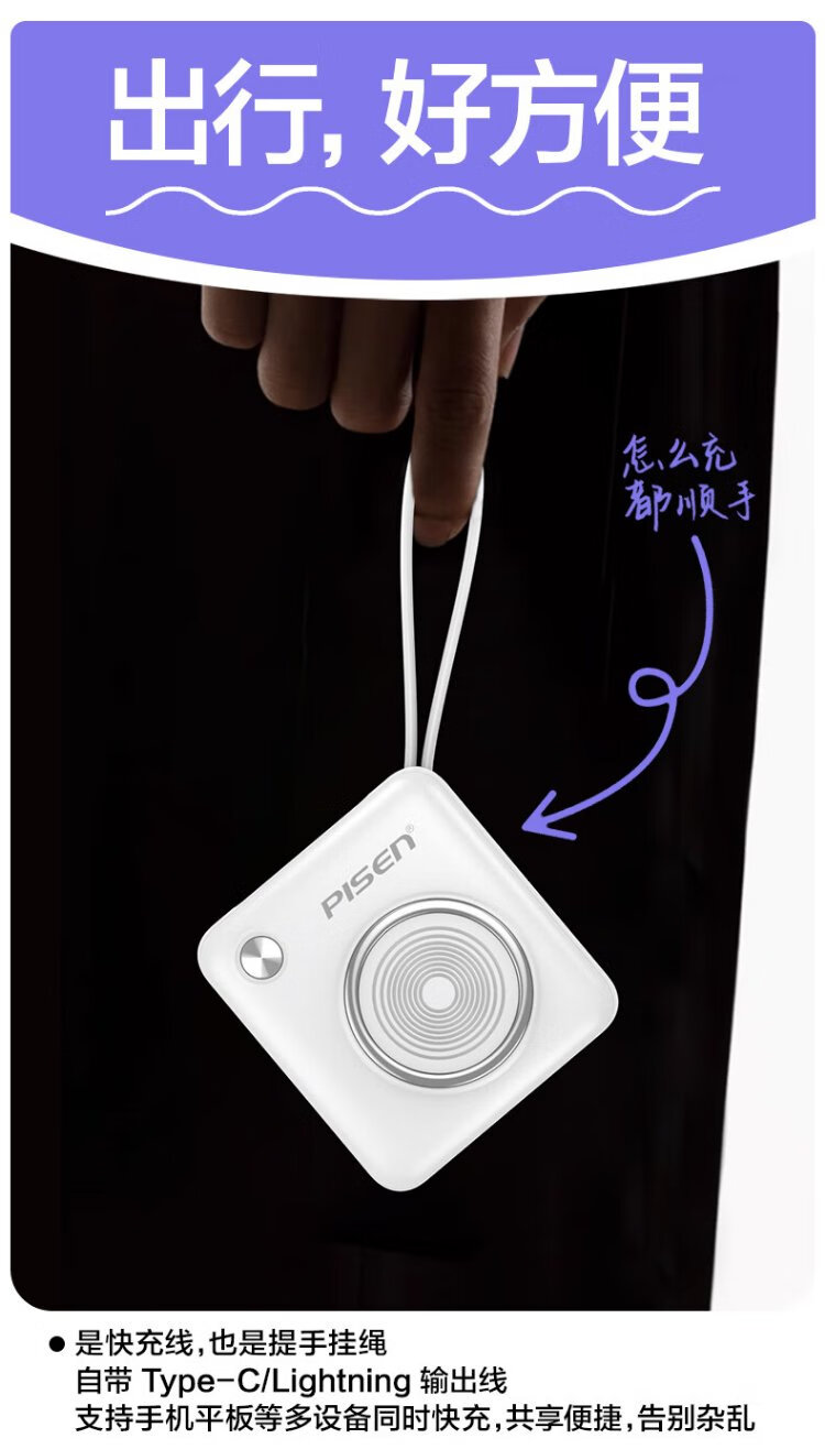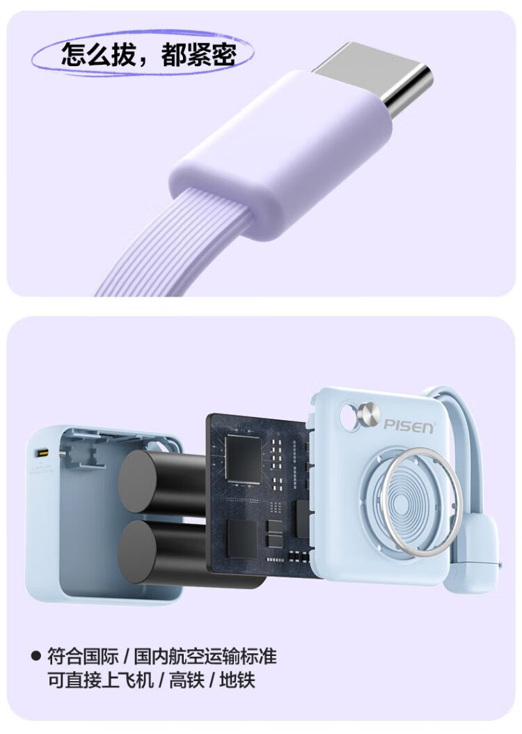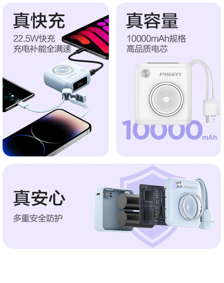 Pinsheng 3C certified power bank 22.5W fast charging comes with dual-wire portable 10000 mAh mobile power supply suitable for airplanes, suitable for Apple 17promax, Huawei Xiaomi Blue