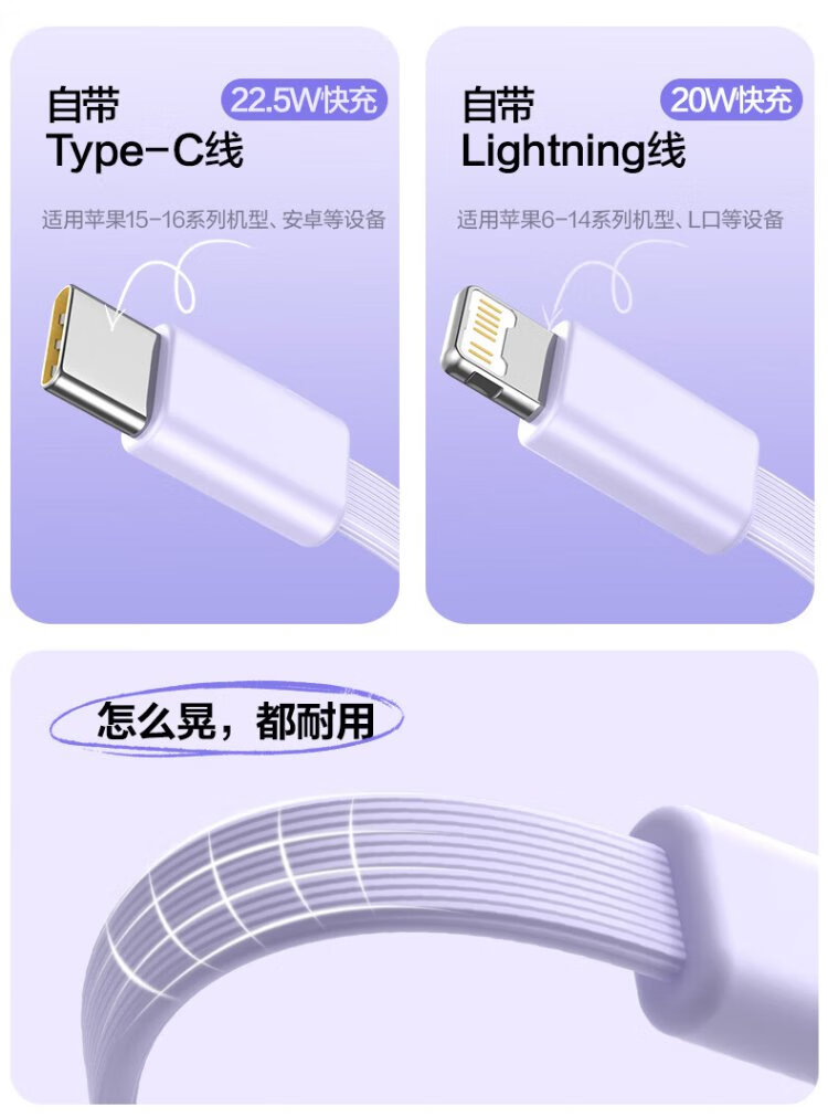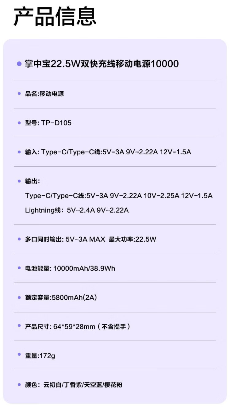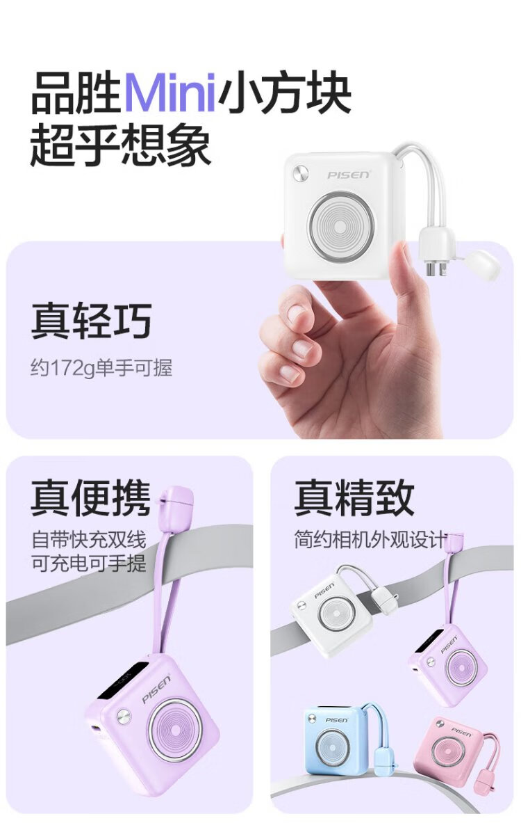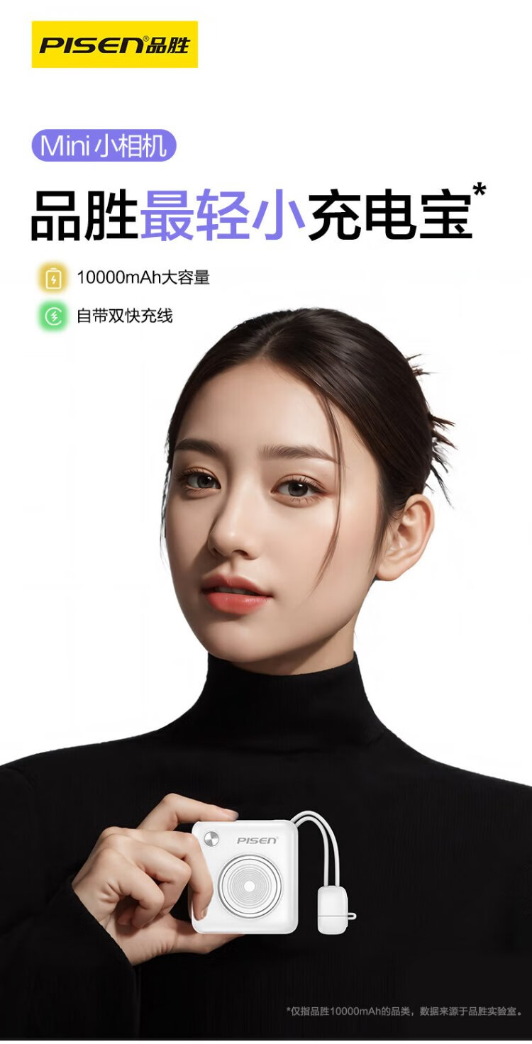 Pinsheng 3C certified power bank 22.5W fast charging comes with dual-wire portable 10000 mAh mobile power supply suitable for airplanes, suitable for Apple 17promax, Huawei Xiaomi Blue