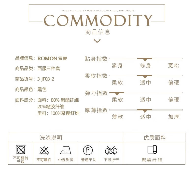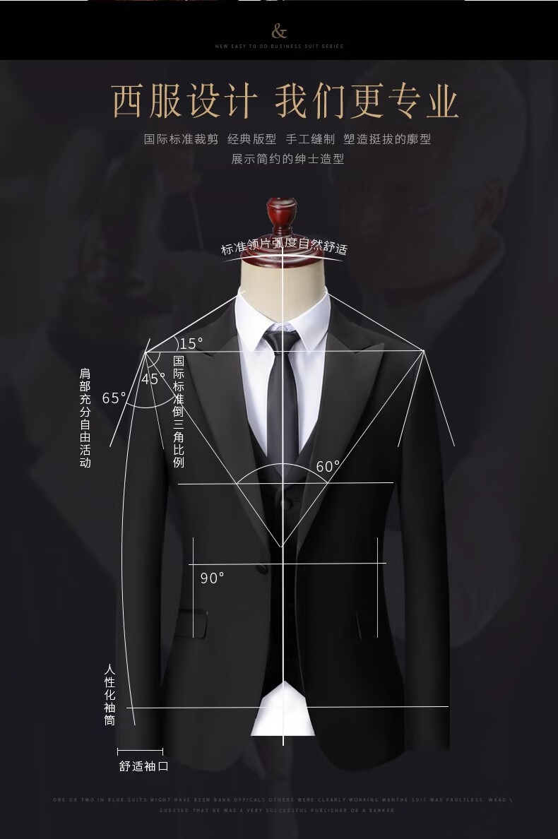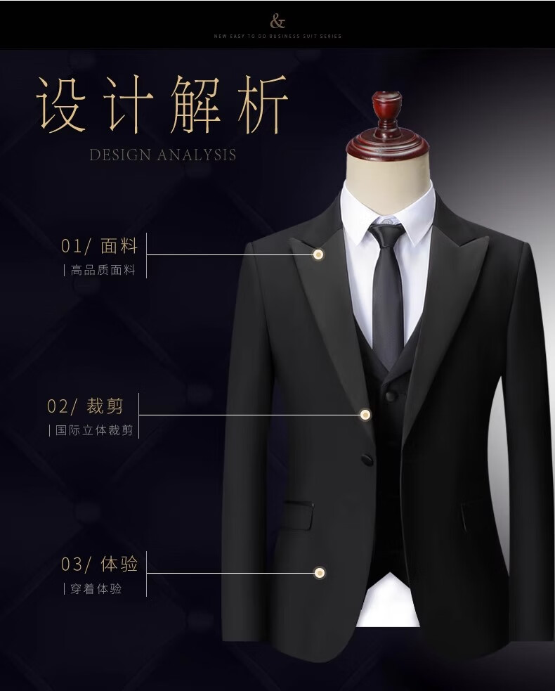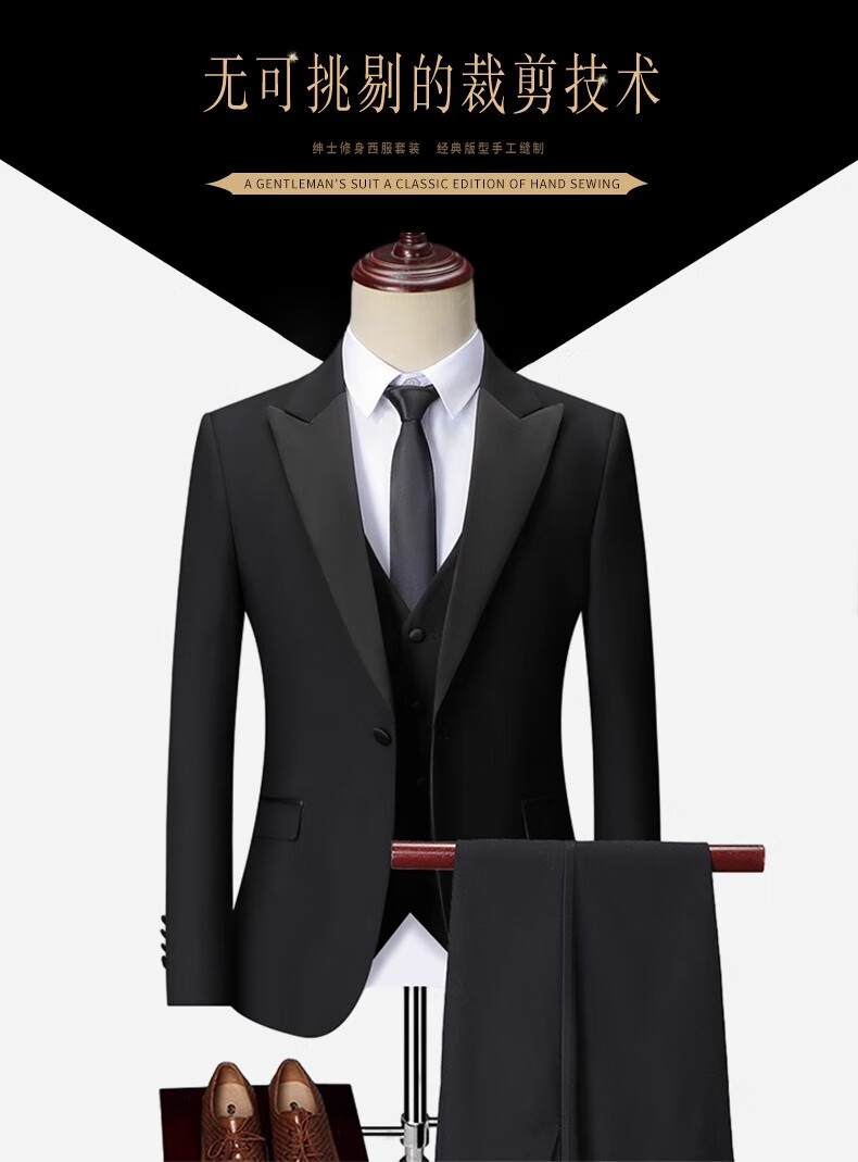 Romon anti-wrinkle three-piece suit suit men's business casual professional slim suit vest wedding dress for men