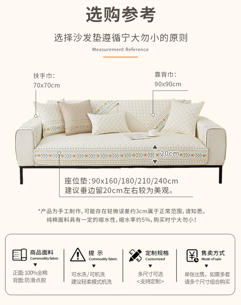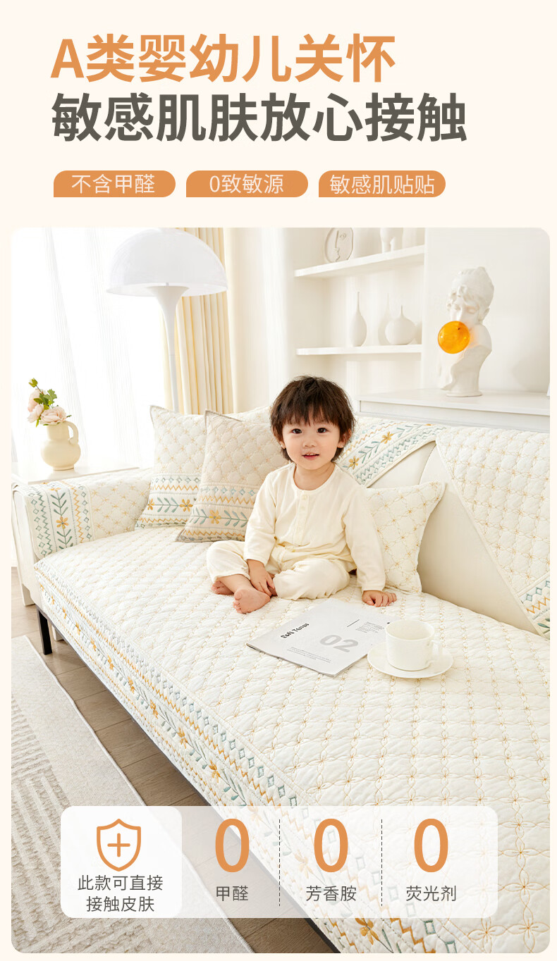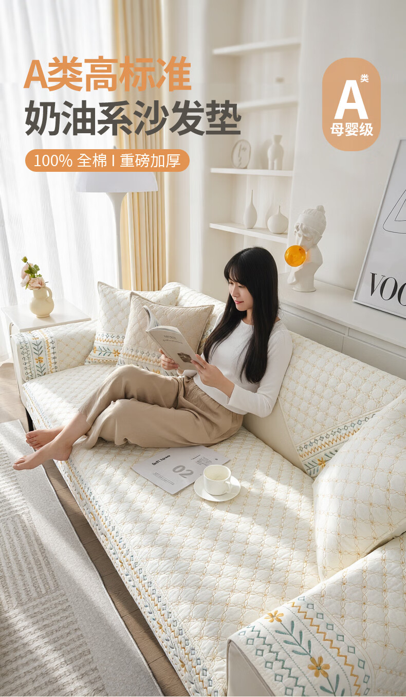 MUJI Class A Maternal and Infant Grade Pure Cotton Sofa Cushion 2025 New Leather Sofa Special Cover Cloth Anti-Slip Cover 90*240cm