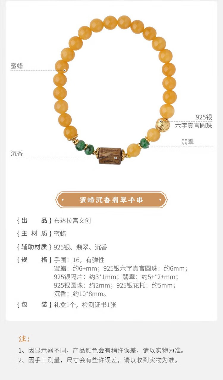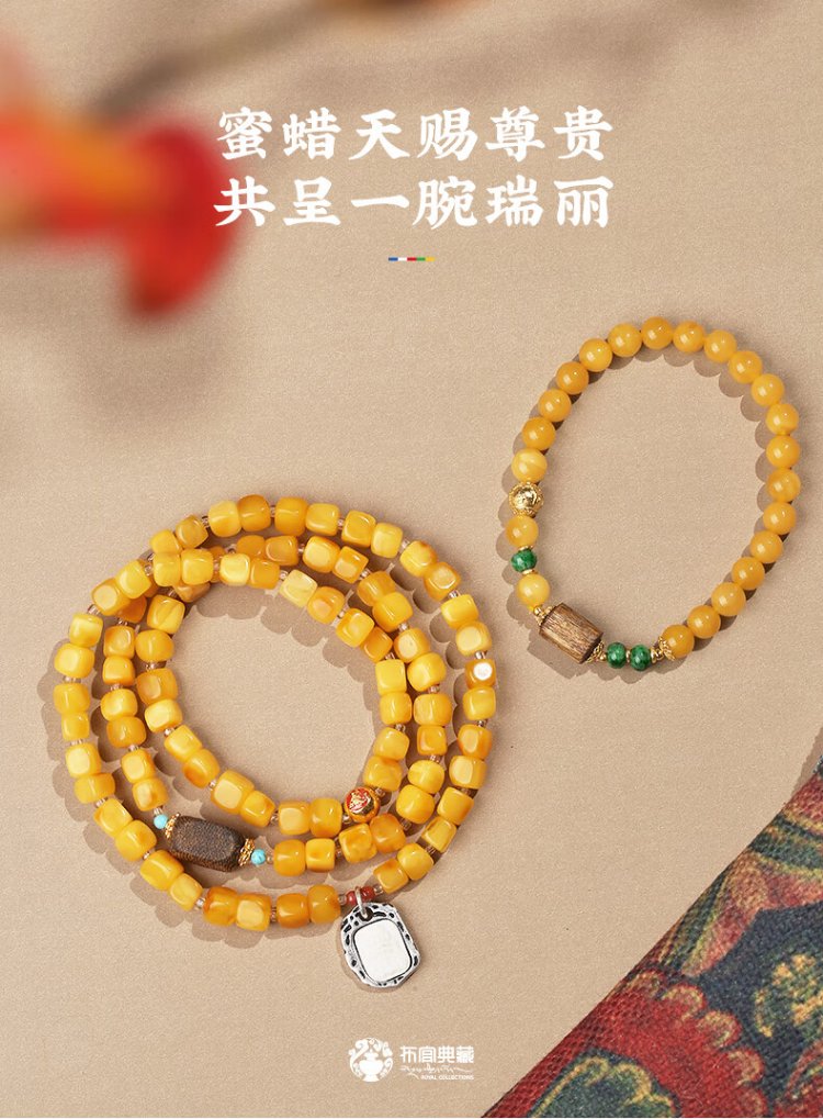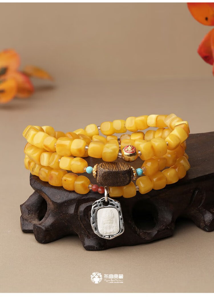 Potala Palace Beeswax Multi-circle Bracelet Agarwood Transfer Bead Jade Amber Bracelet Men and Women's Birthday Gift for Girlfriend