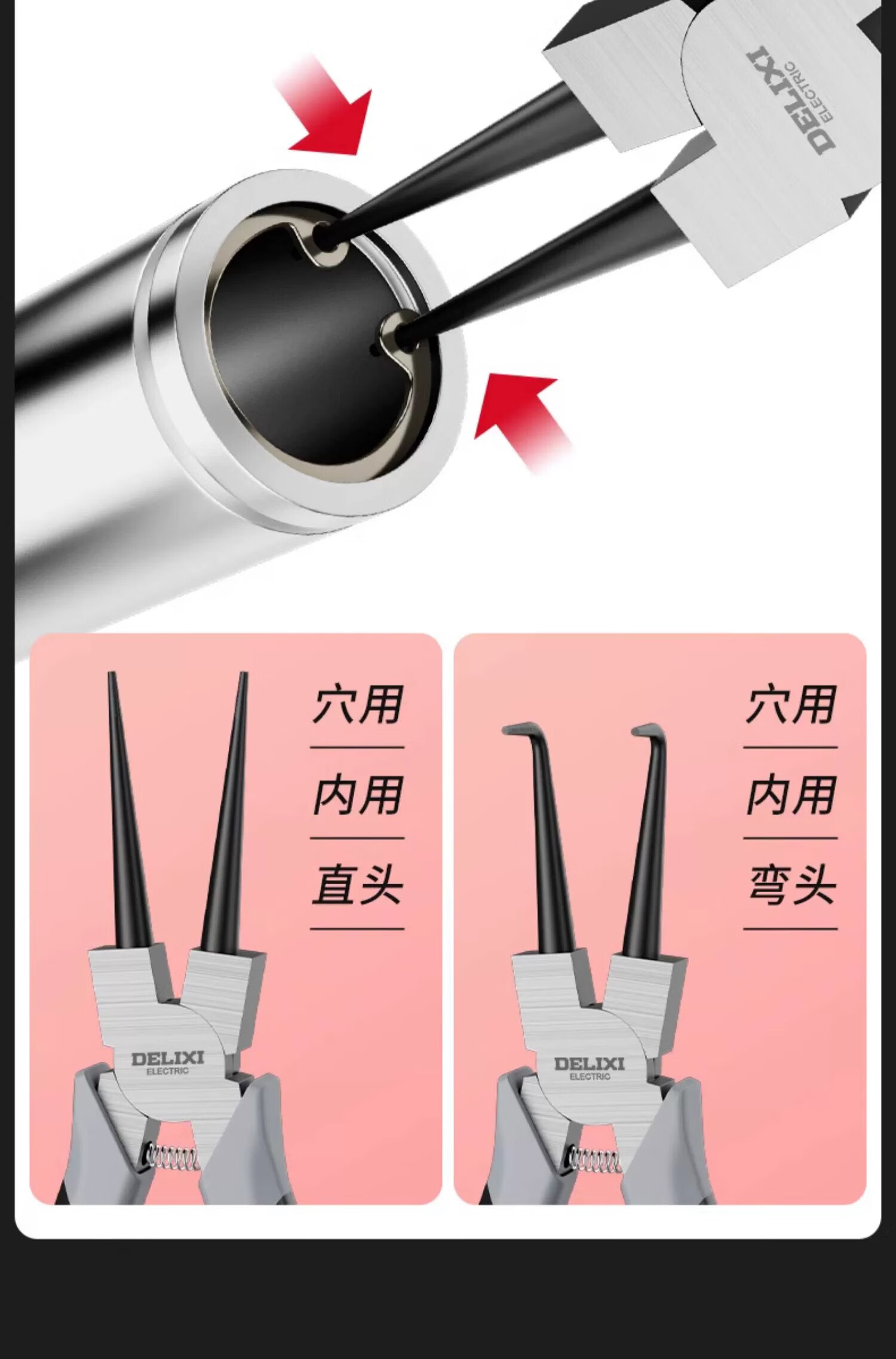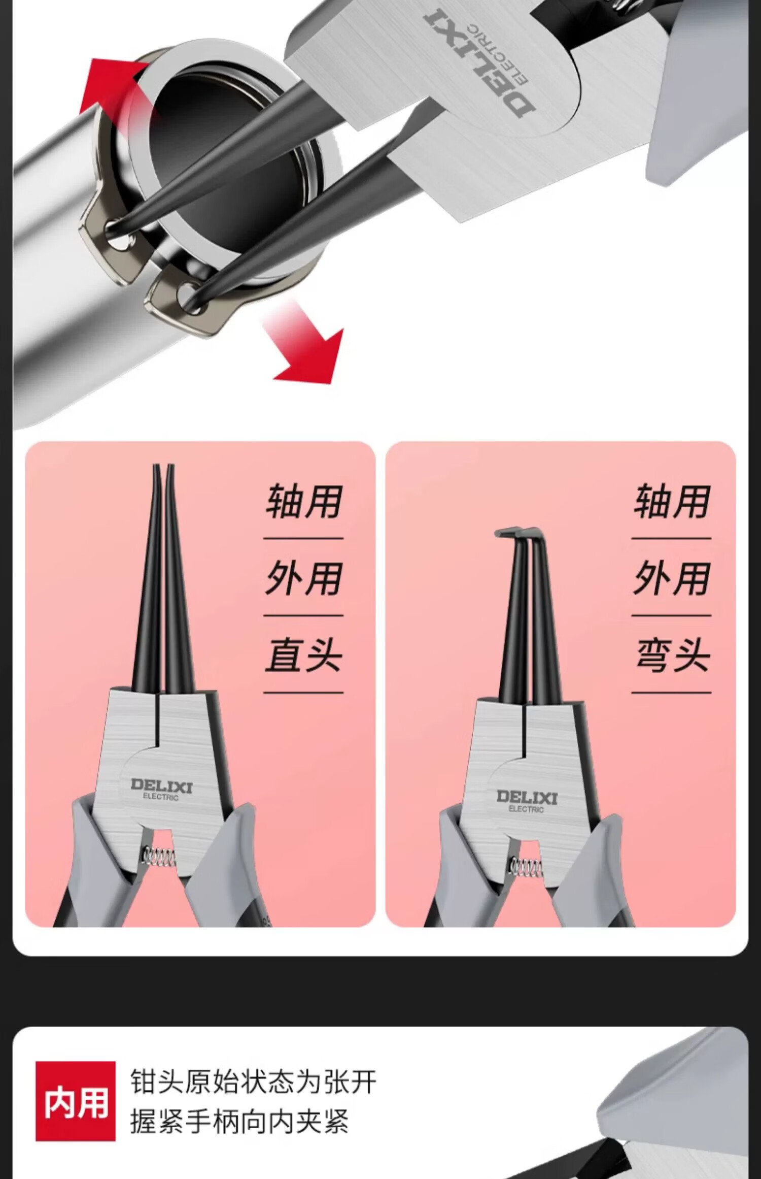 Delixi circlip pliers internal and external dual-use industrial grade circlip yellow pliers set clasp spring pliers opening expansion pliers