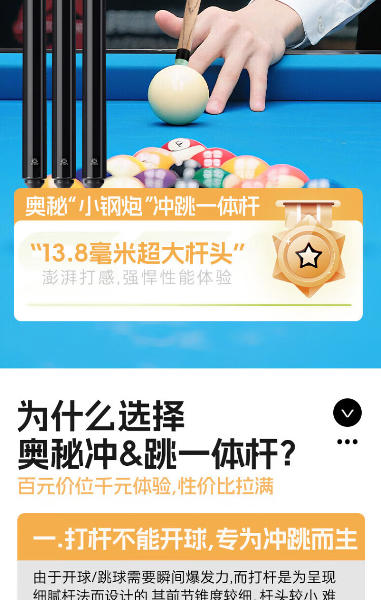 OMIN (O MIN) small steel cannon, one-piece billiard cue, one-piece billiard cue, one-piece billiard cue, black eight-eight billiard cue, punch and kick cue