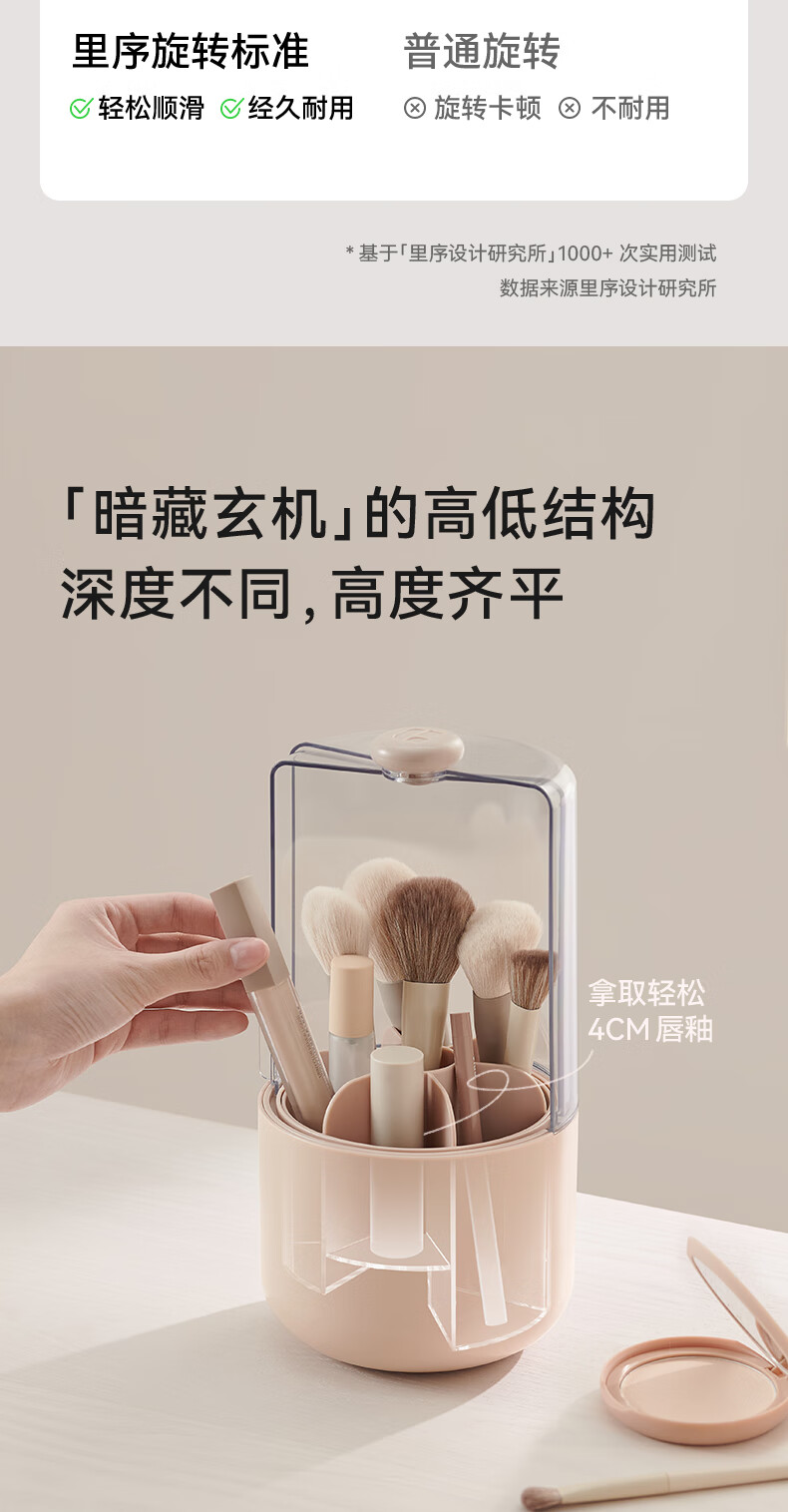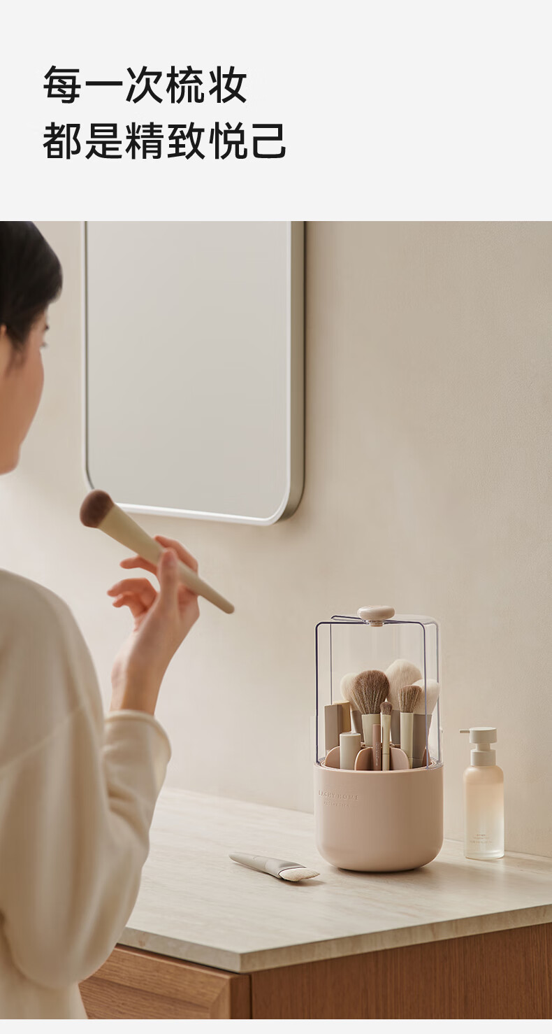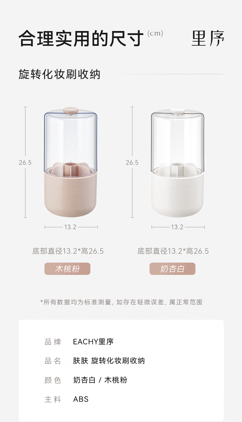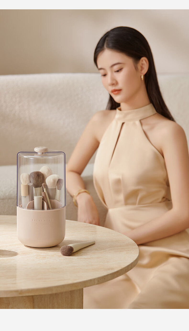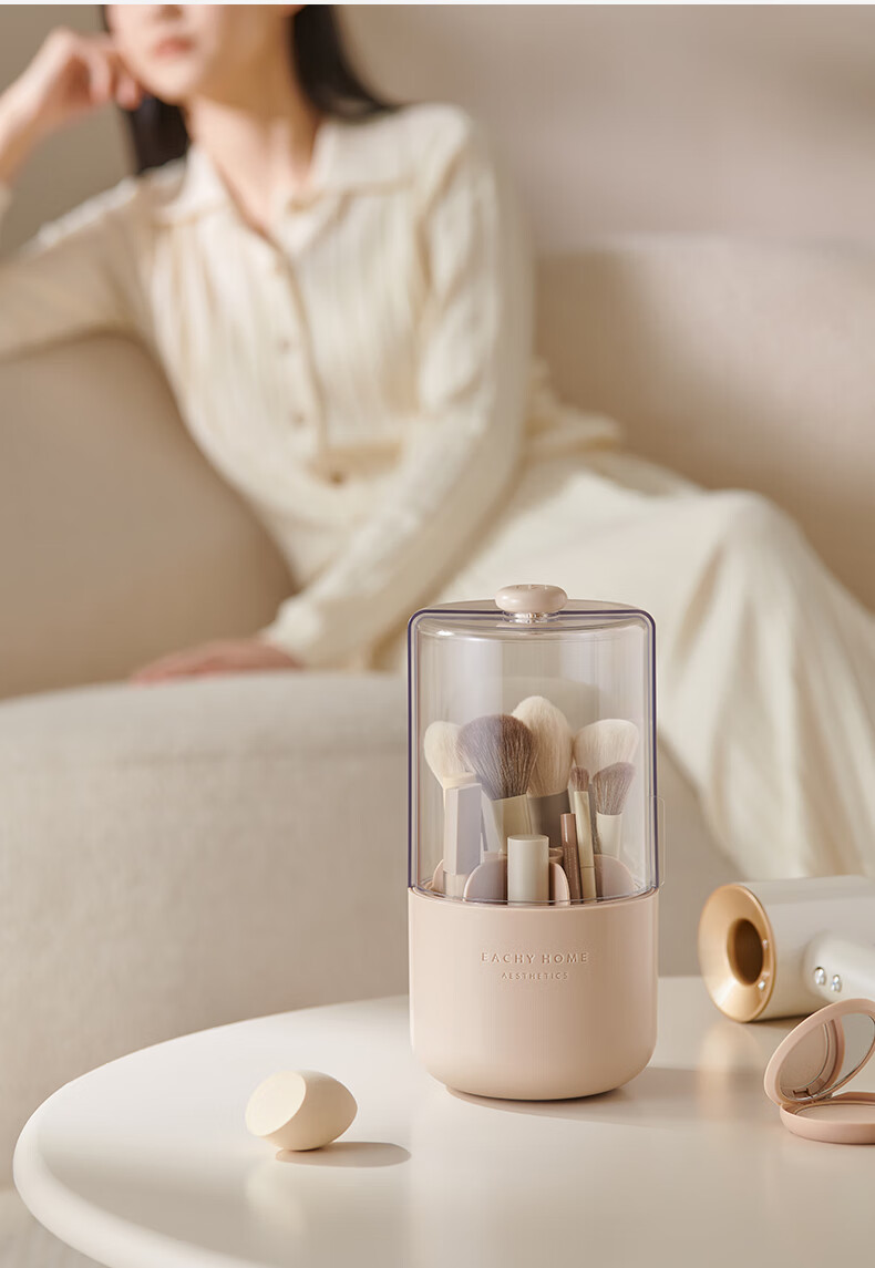 EACHY Makeup Brush Storage Tube Desktop Storage Box Dustproof Covered Makeup Brush Barrel Dressing Table Storage Rack-Wooden Peach Powder