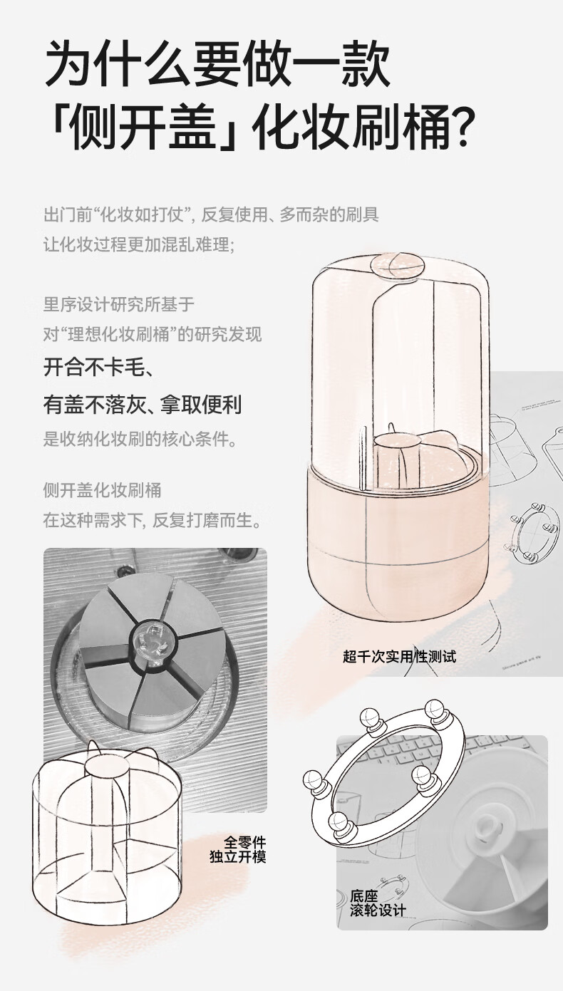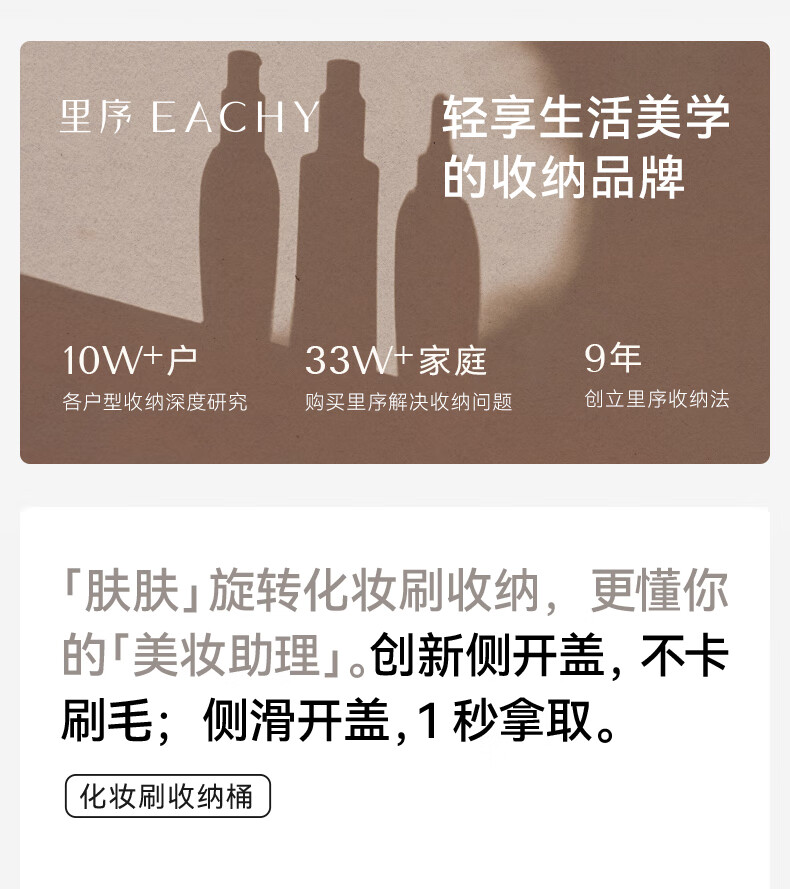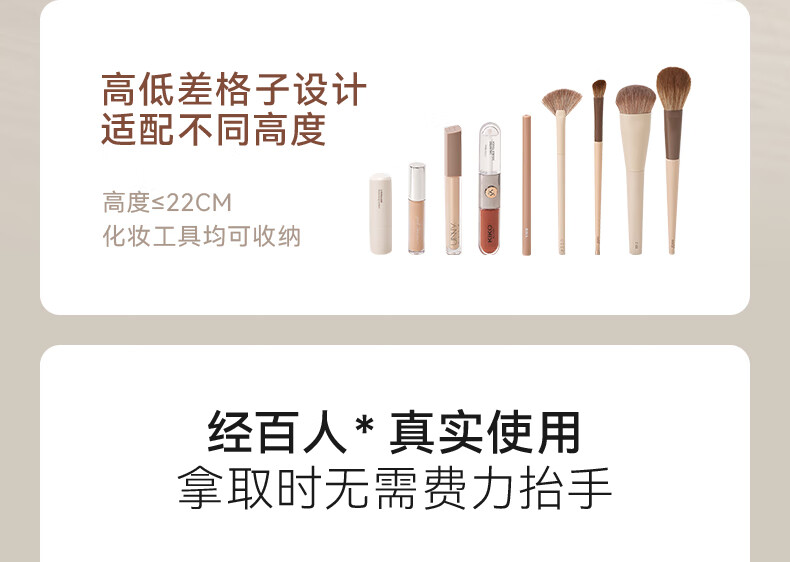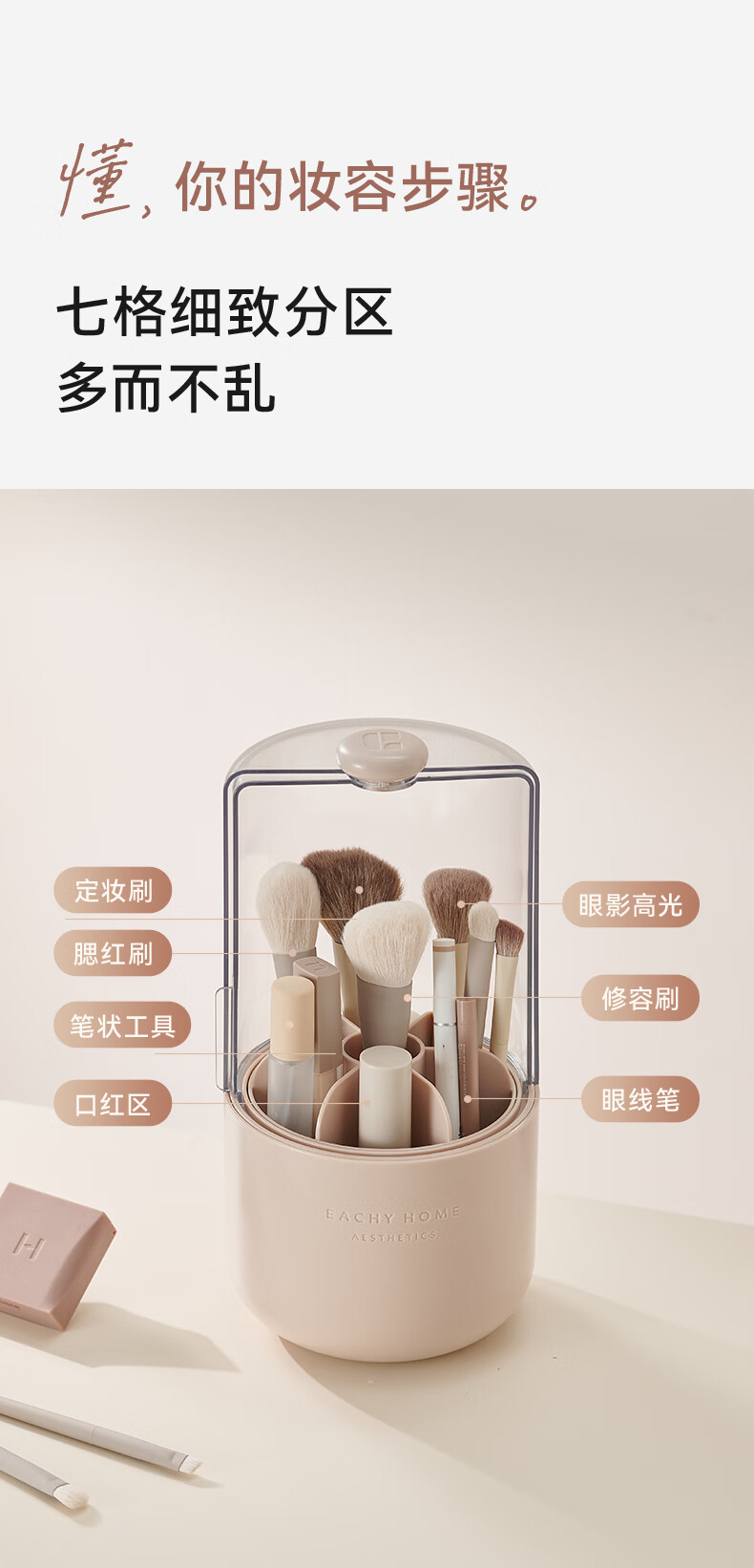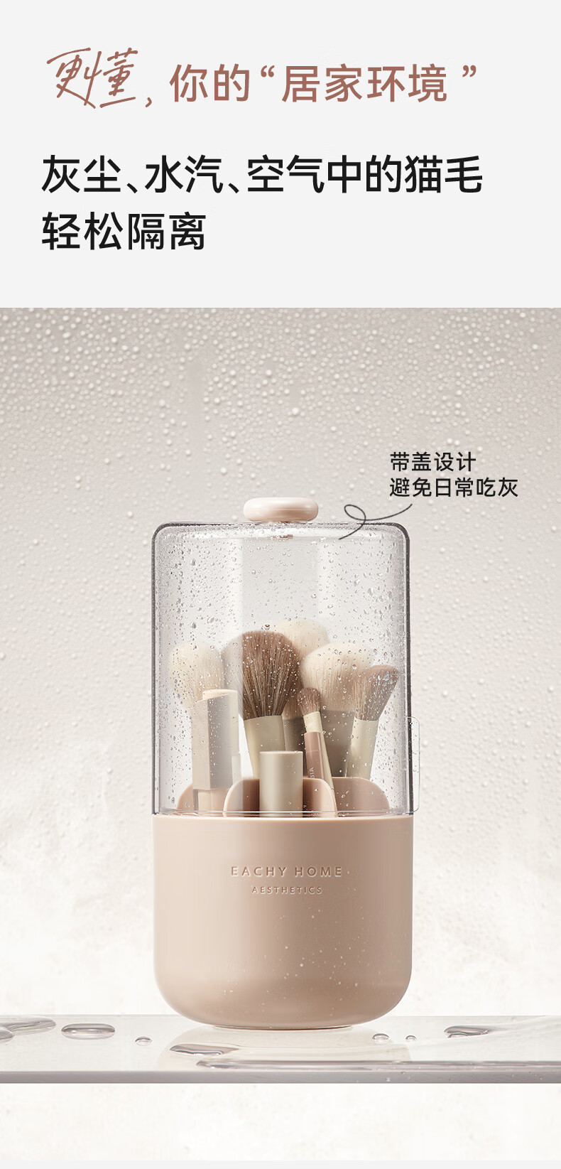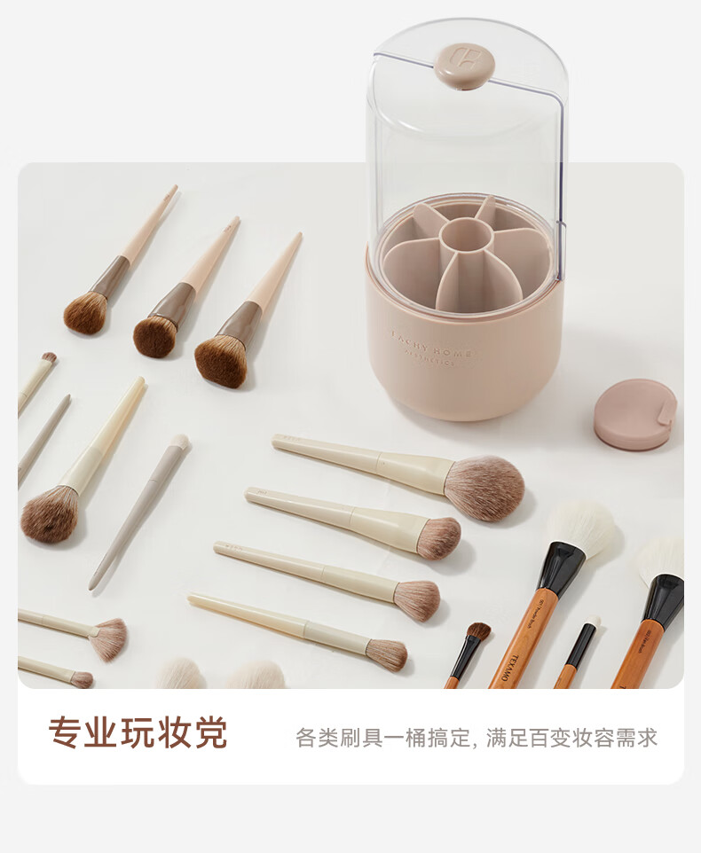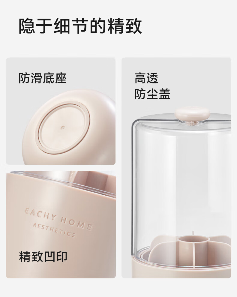 EACHY Makeup Brush Storage Tube Desktop Storage Box Dustproof Covered Makeup Brush Barrel Dressing Table Storage Rack-Wooden Peach Powder