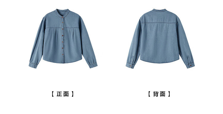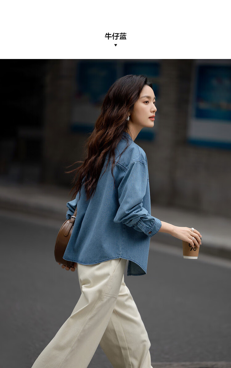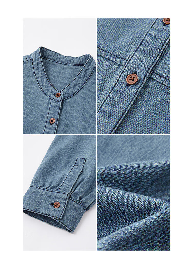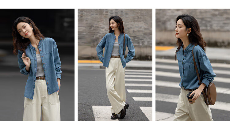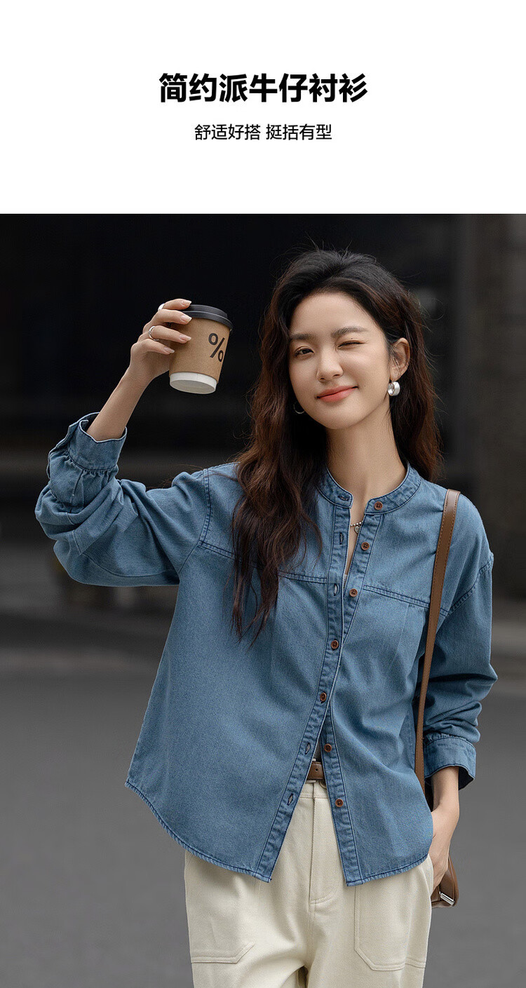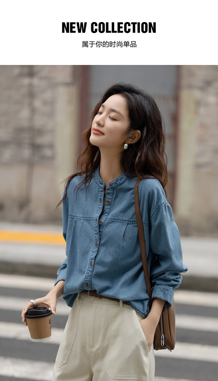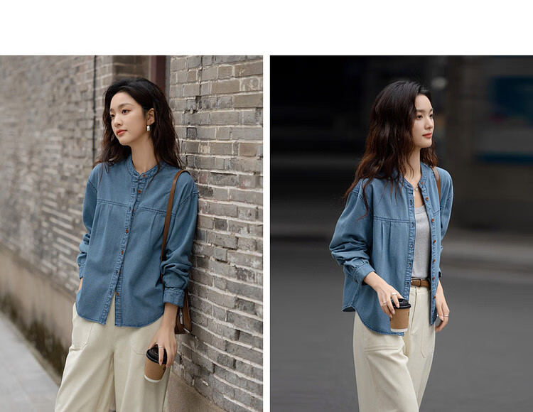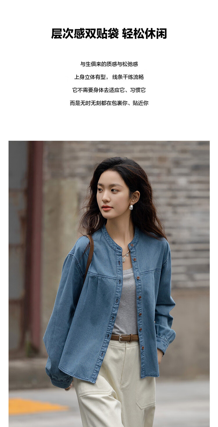 Demana Qinfu Cloud Feel Cotton Spring Simple Style Round Neck Shirt Comfortable to Hidden Meat and Matches Denim Shirt Women's Top