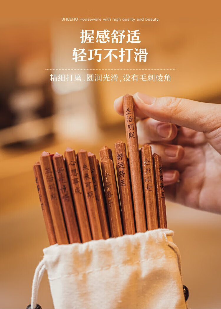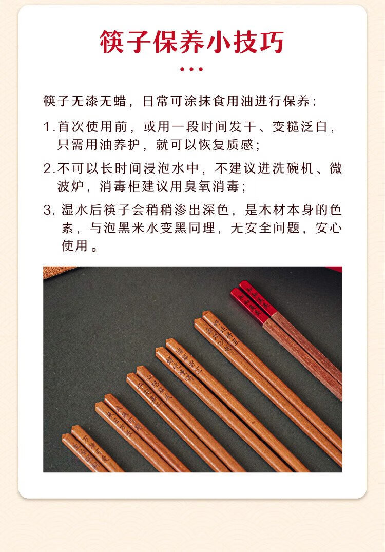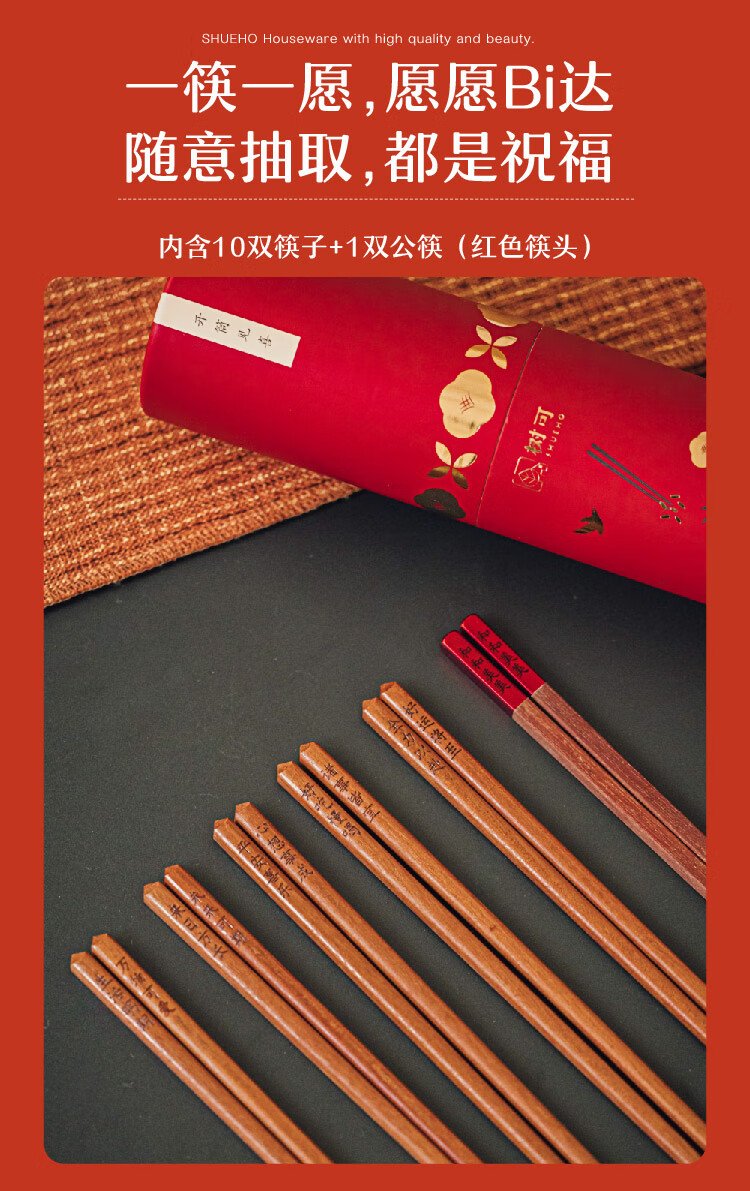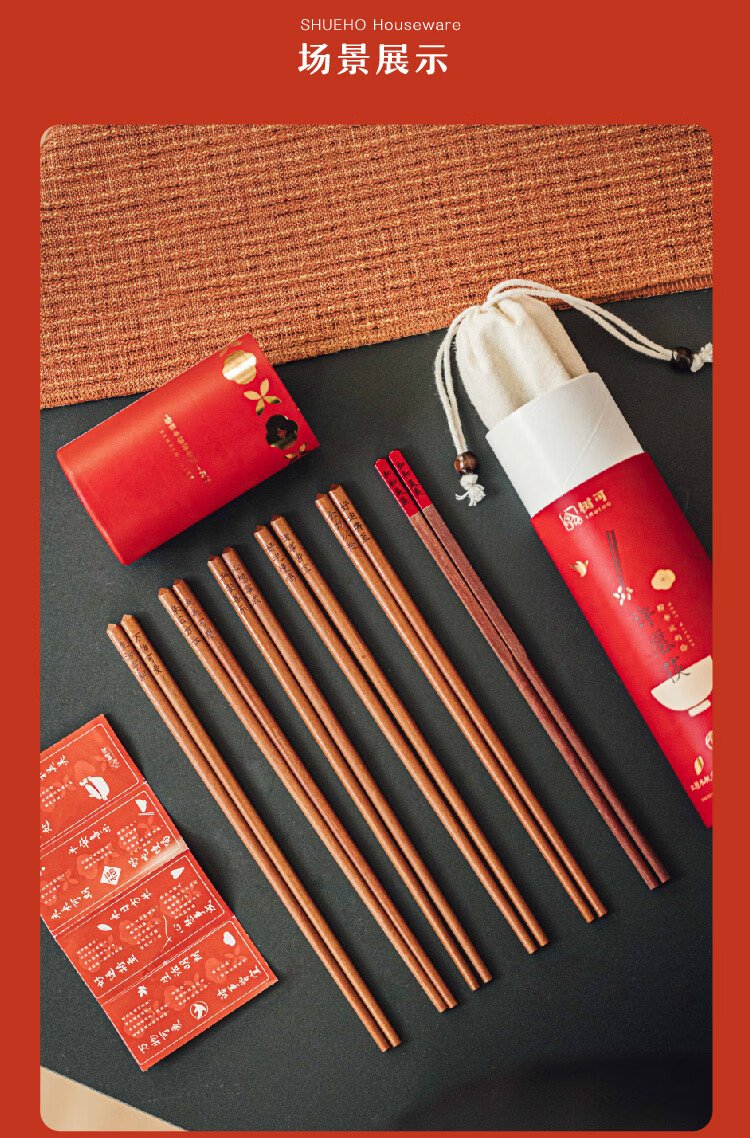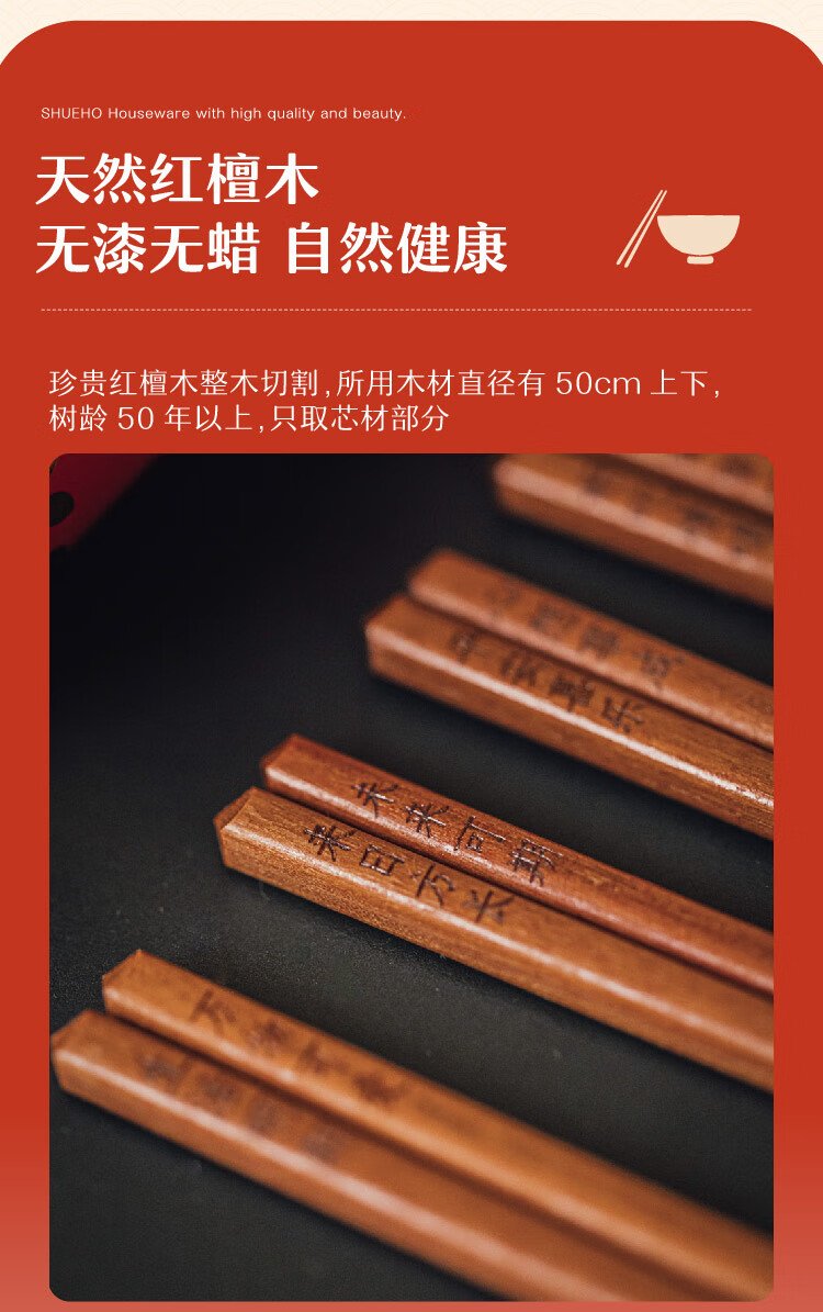 Shuke natural red sandalwood wishing chopsticks set new antibacterial paint-free wax solid wood Chinese style household one pair