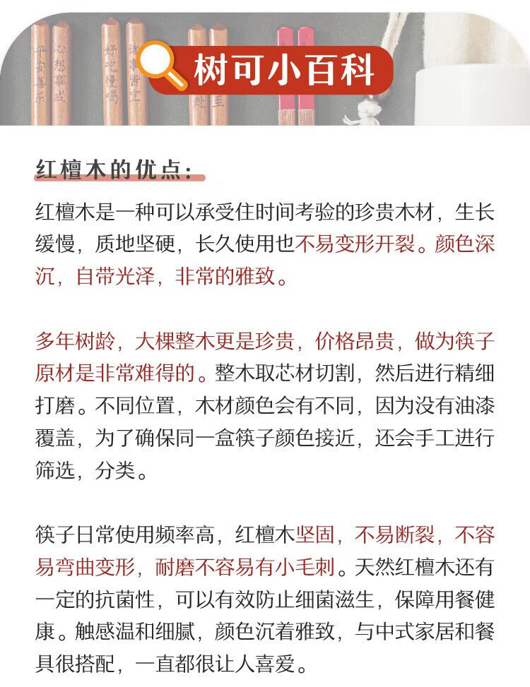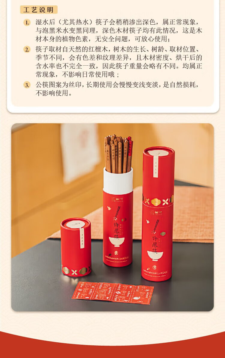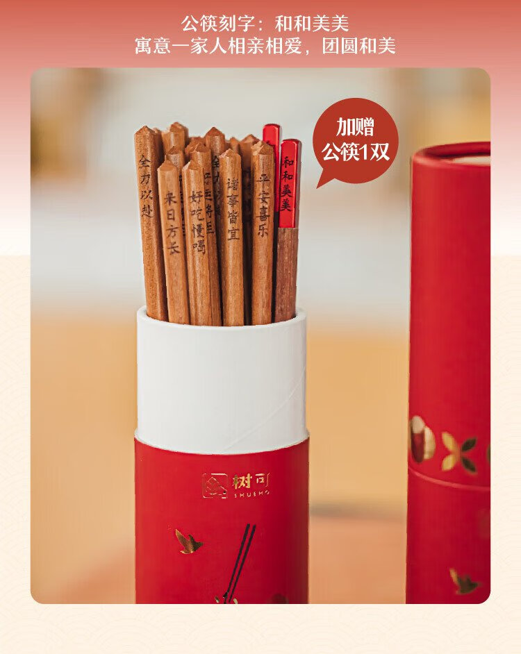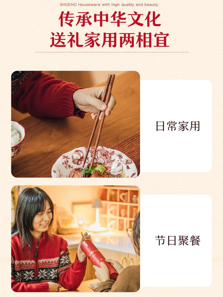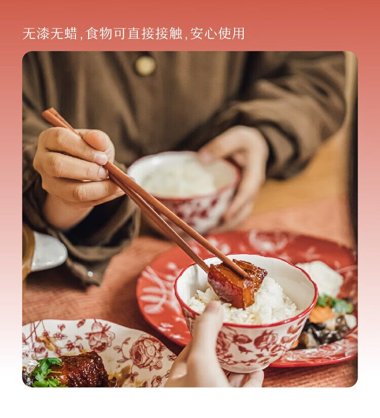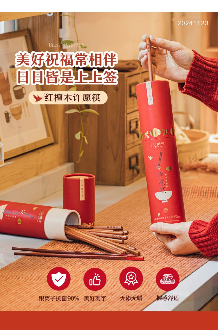 Shuke natural red sandalwood wishing chopsticks set new antibacterial paint-free wax solid wood Chinese style household one pair