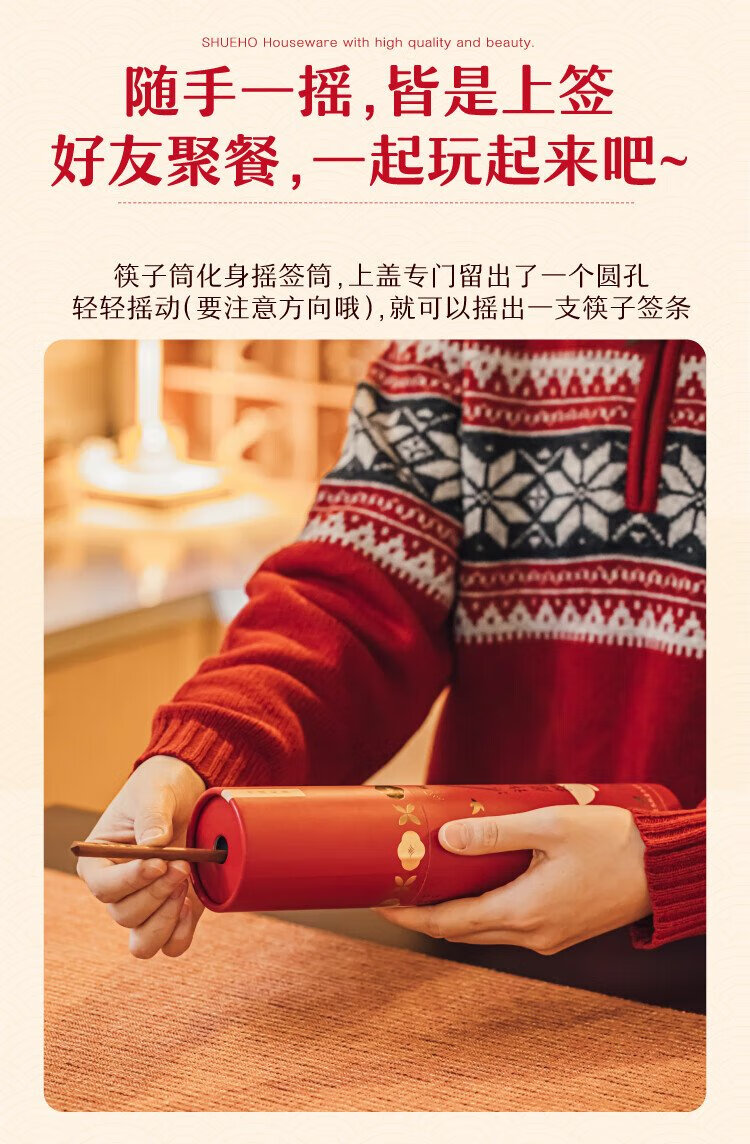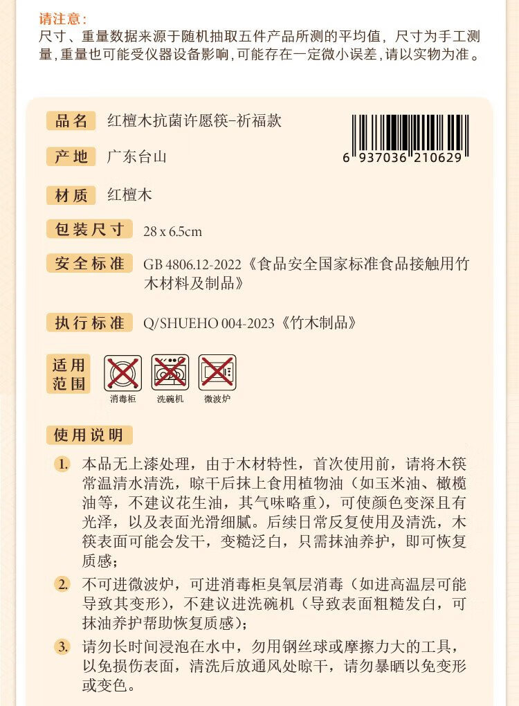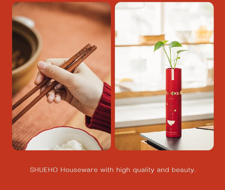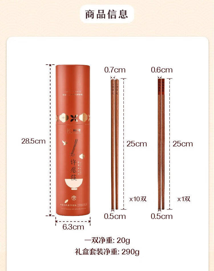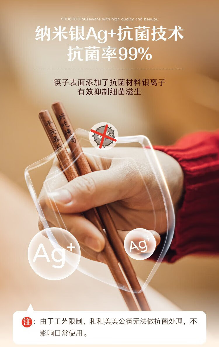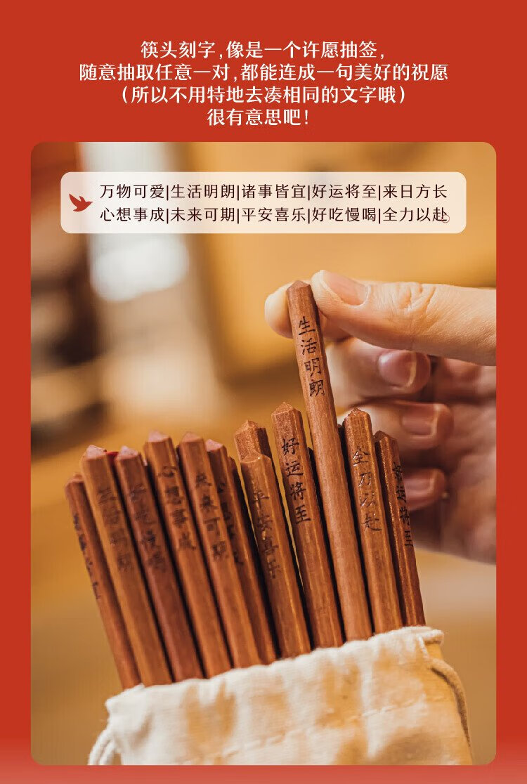 Shuke natural red sandalwood wishing chopsticks set new antibacterial paint-free wax solid wood Chinese style household one pair