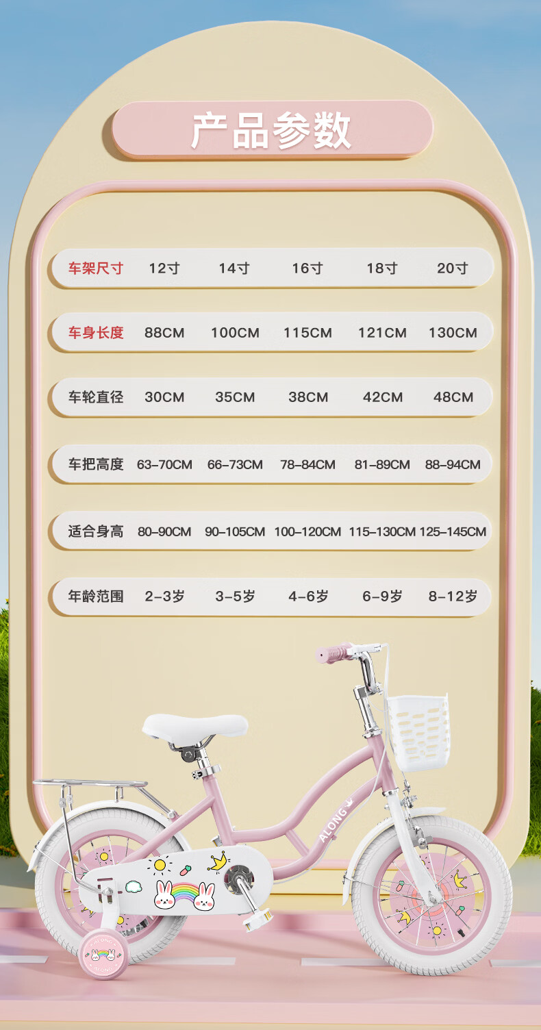 AO SHI LONG AO SHI LONG children's bicycle 3-5-8 years old children's bicycle girl princess bicycle 16-inch children's bicycle