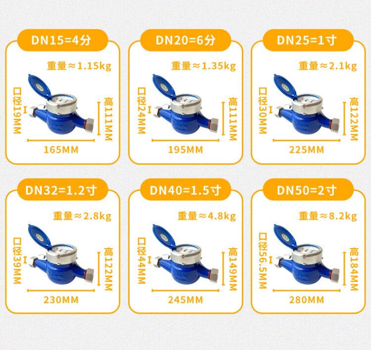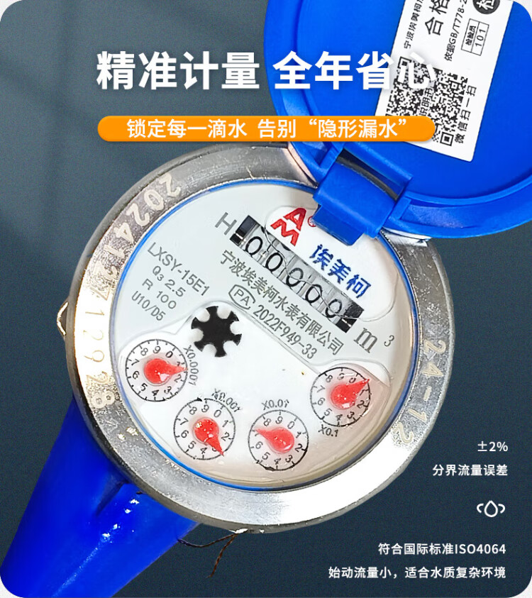 AM Amico ZK02-062 stainless steel cover steel liquid seal cold water meter tap water meter rotary wing national standard DN20/6 points