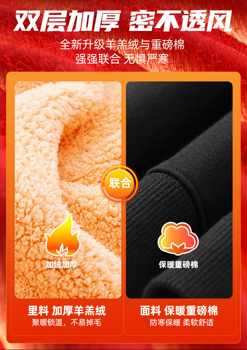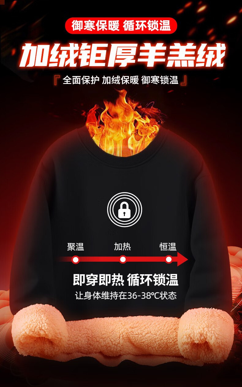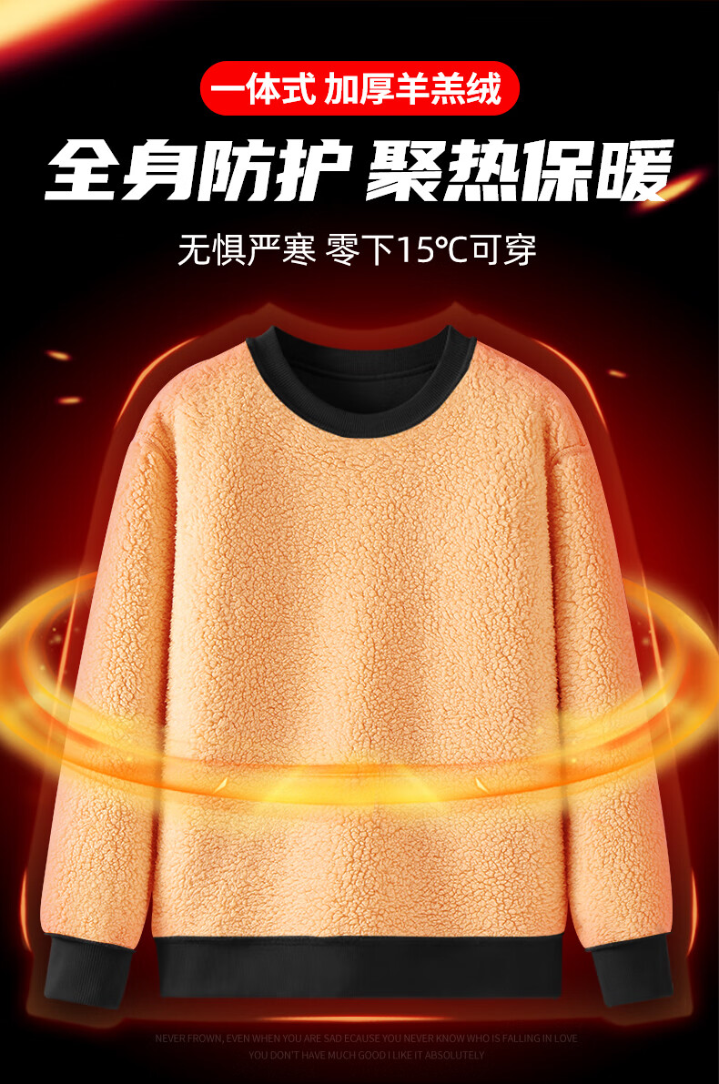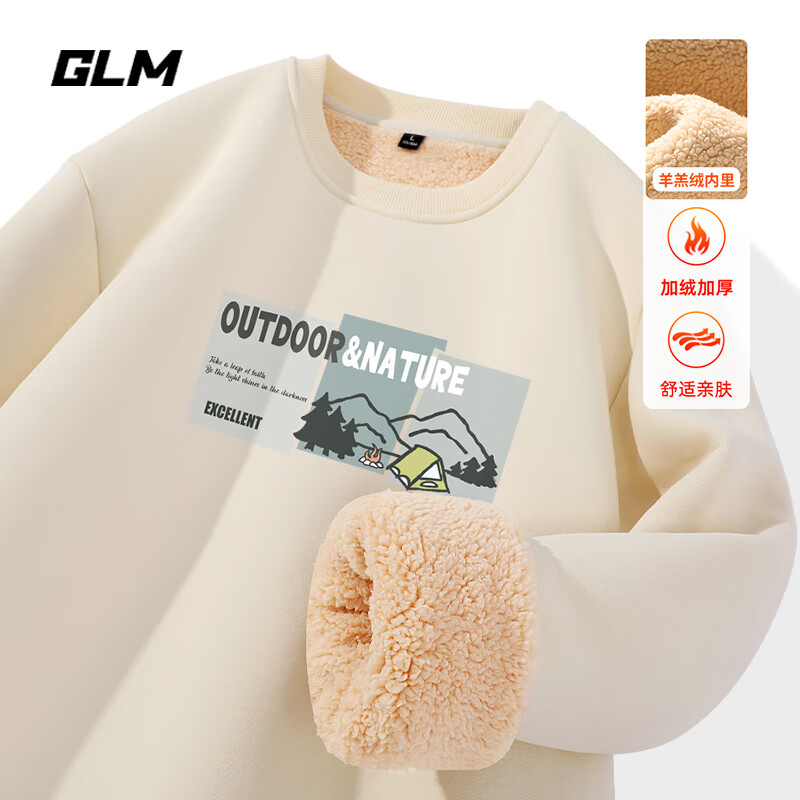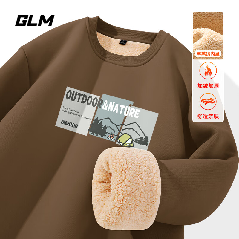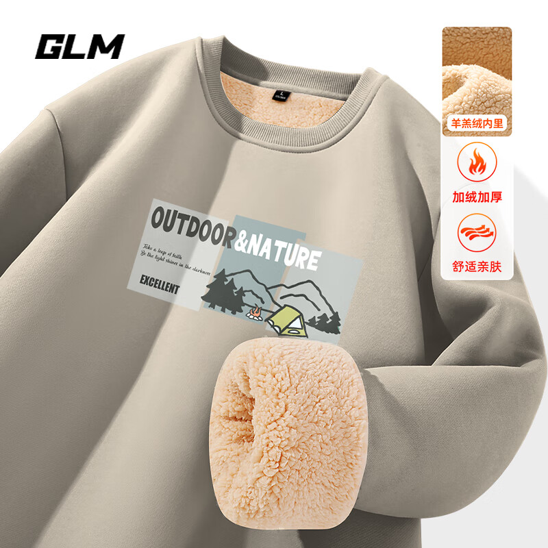 GLM sweatshirt men's winter lamb heavyweight warm and cold-proof men's tops plus velvet thickened round neck long sleeves