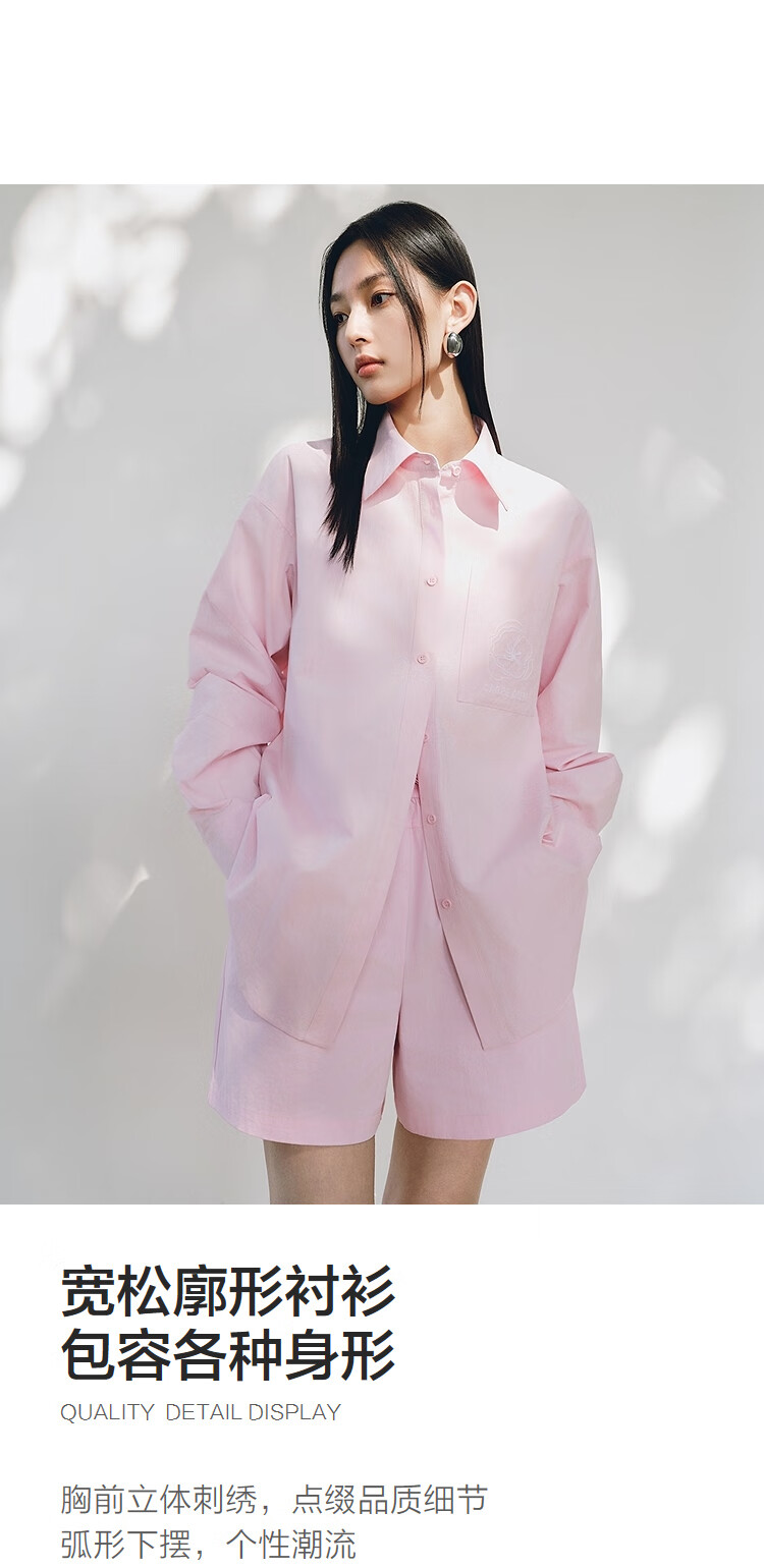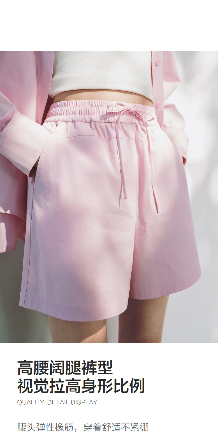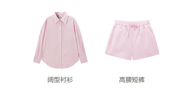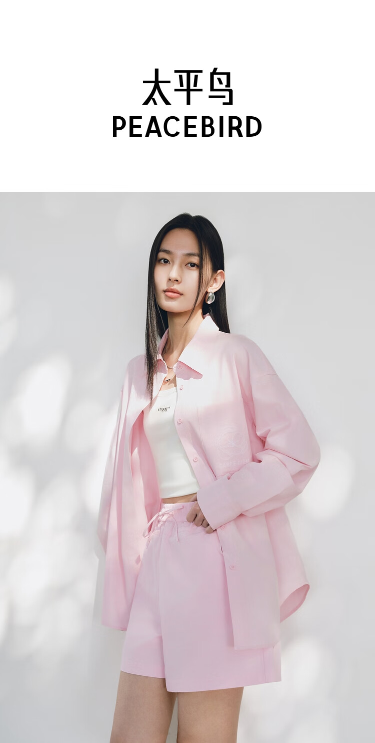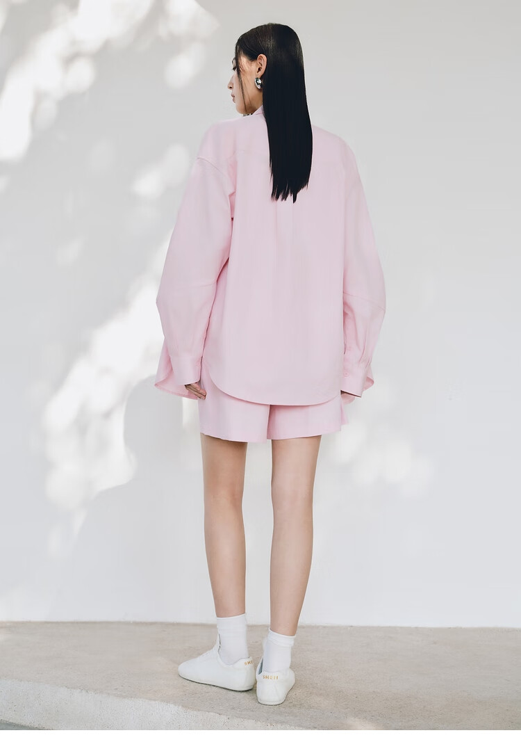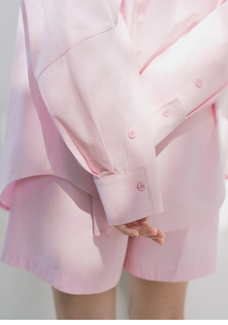 Peacebird Women's Shirt Summer Women's Summer Textured Long Sleeve Drawstring Shorts Pink Shirt S