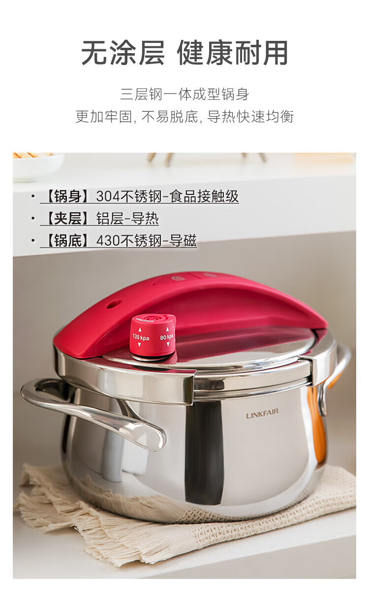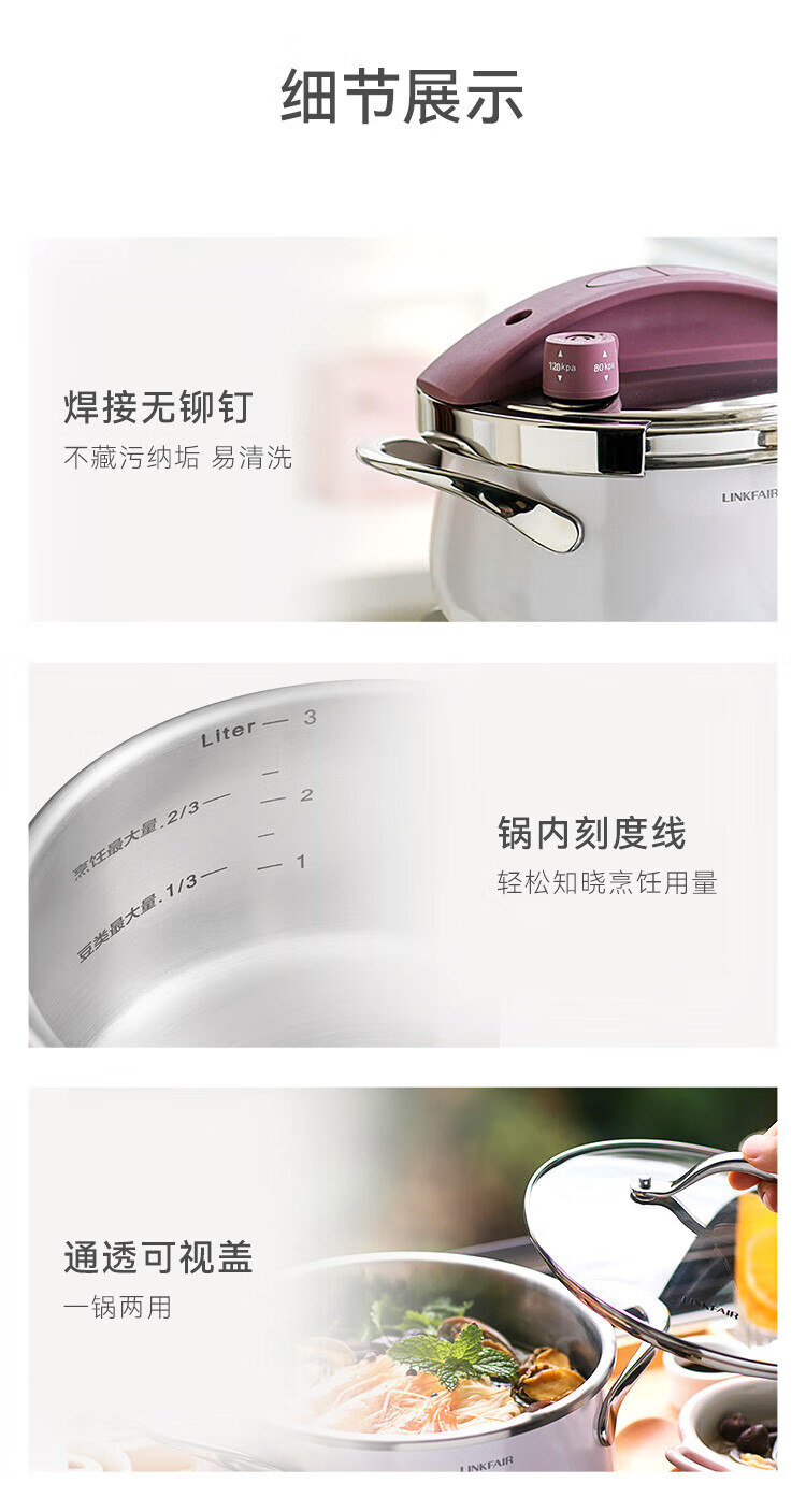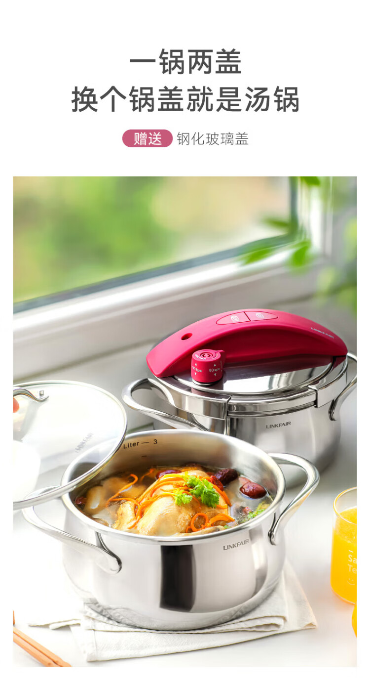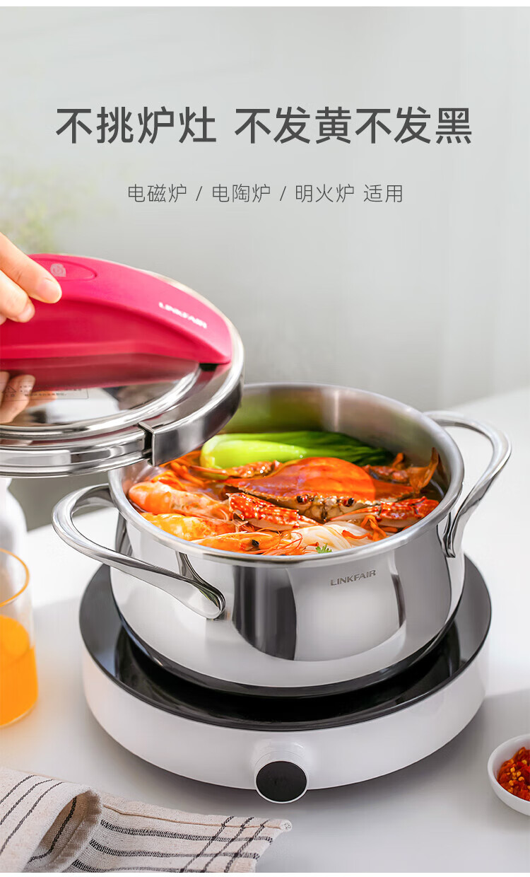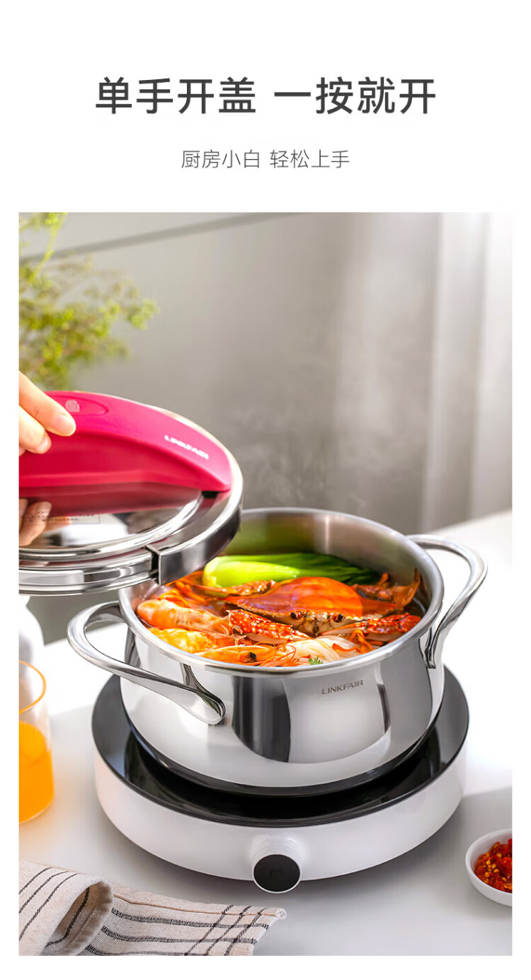 Lingfeng pressure cooker household explosion-proof stainless steel pressure cooker small multi-functional mini one-hand opening and closing gas induction cooker