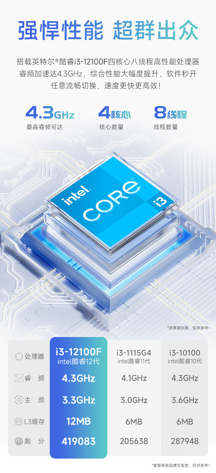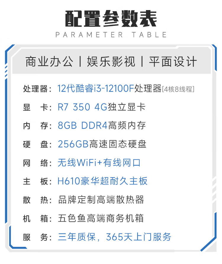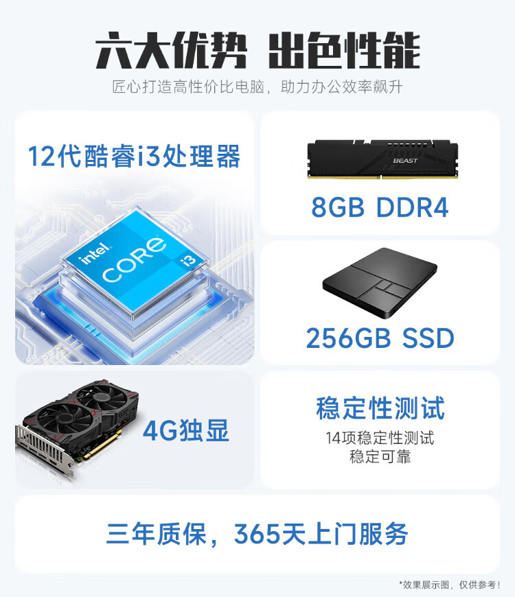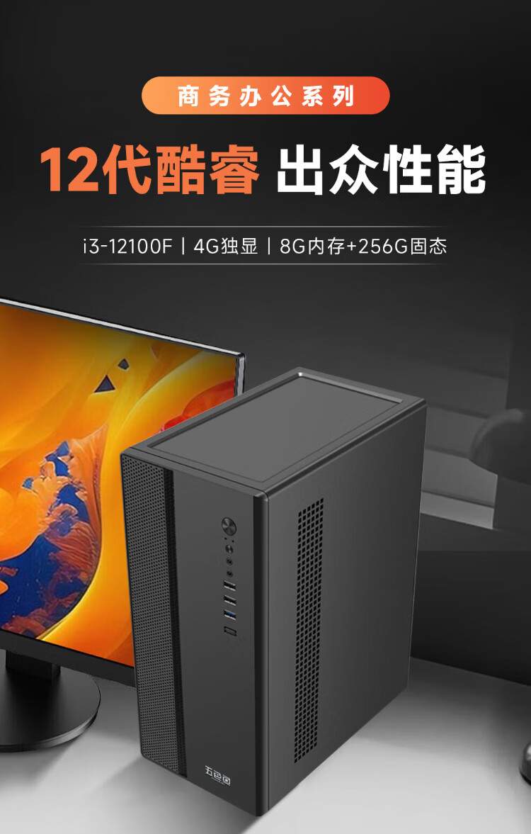 WuSeYu desktop computer host commercial office home game machine (Core i3-12100F 8G 256G 4G game independent display wireless WiFi)