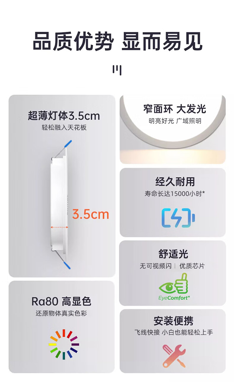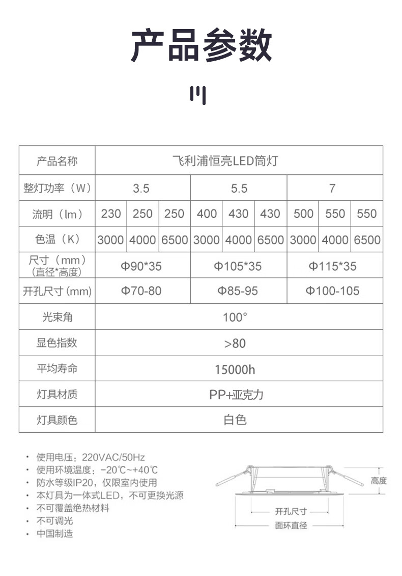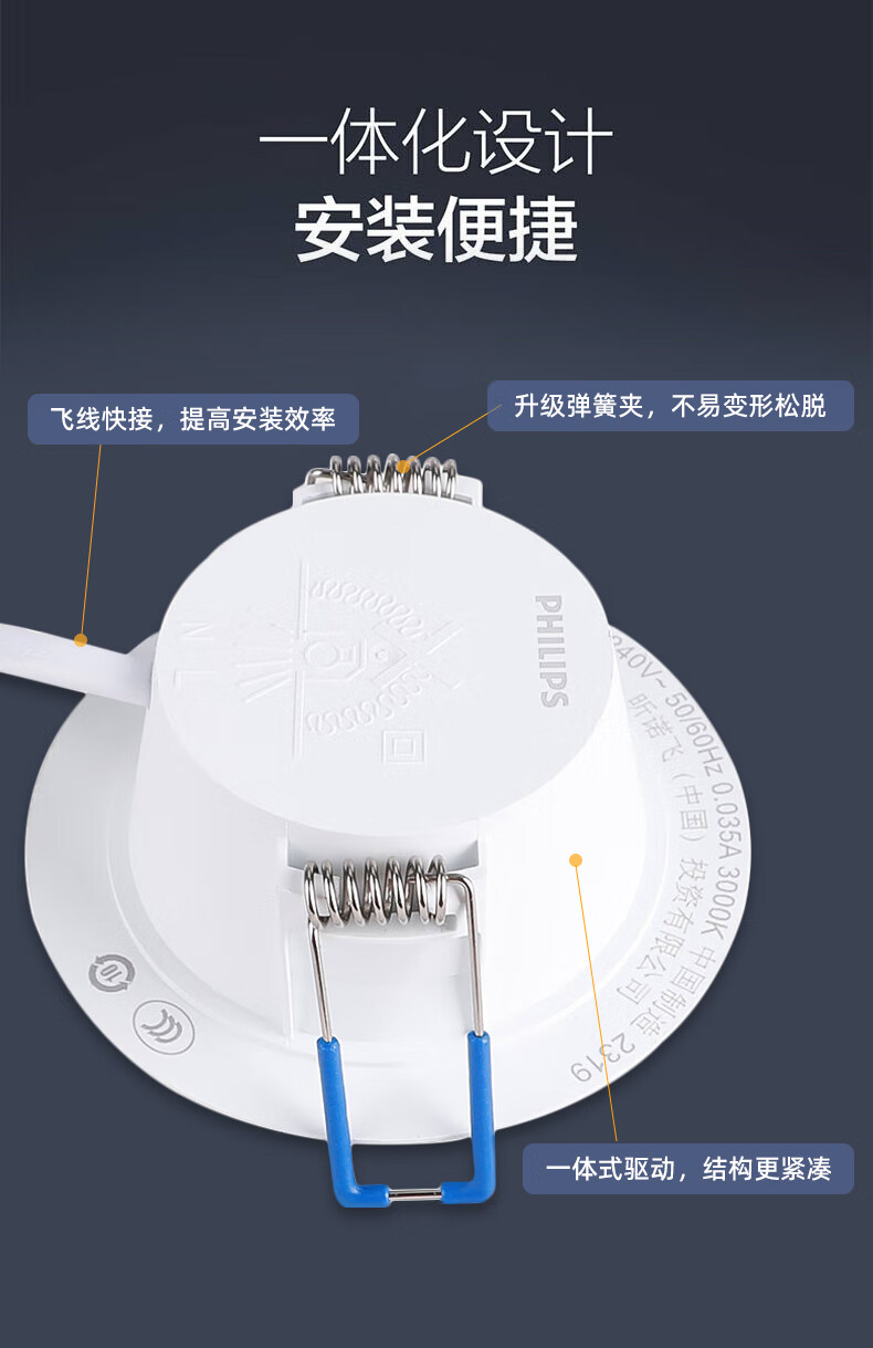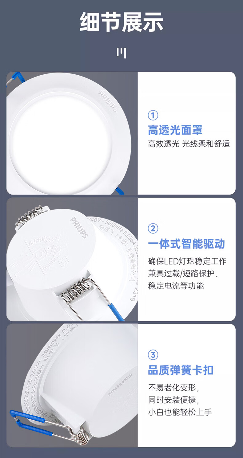 Philips (PHILIPS) LED ultra-thin aisle recessed downlight 7w 3.5-inch anti-glare ceiling light 6500K opening 100~105mm