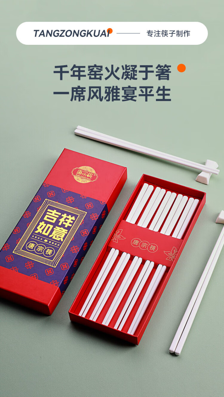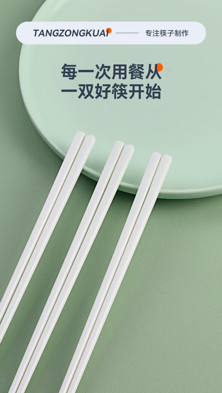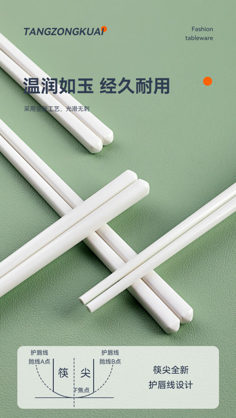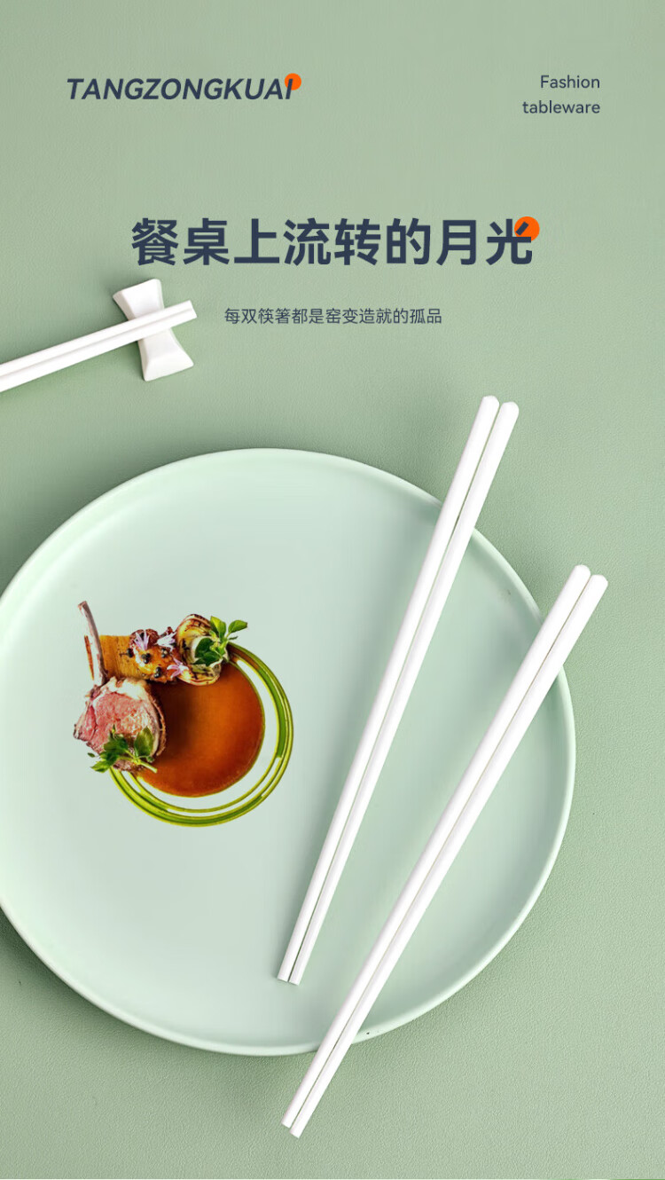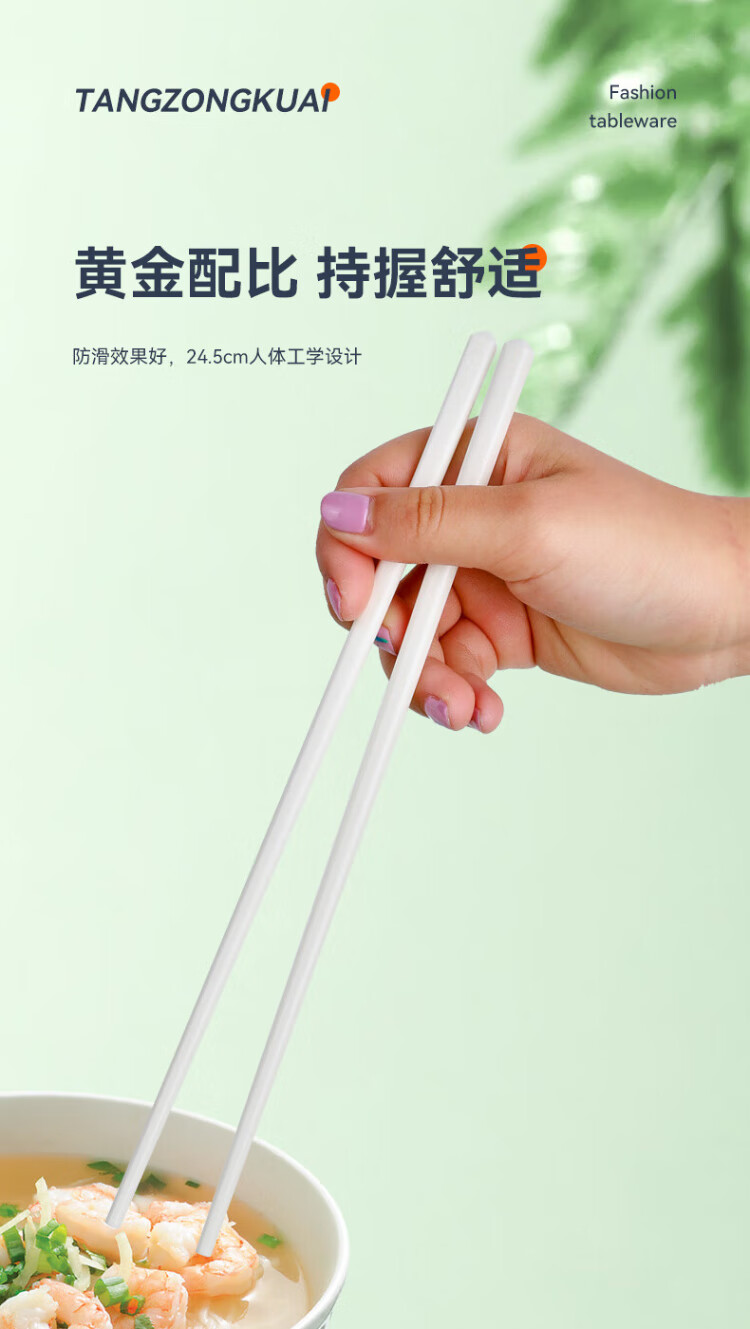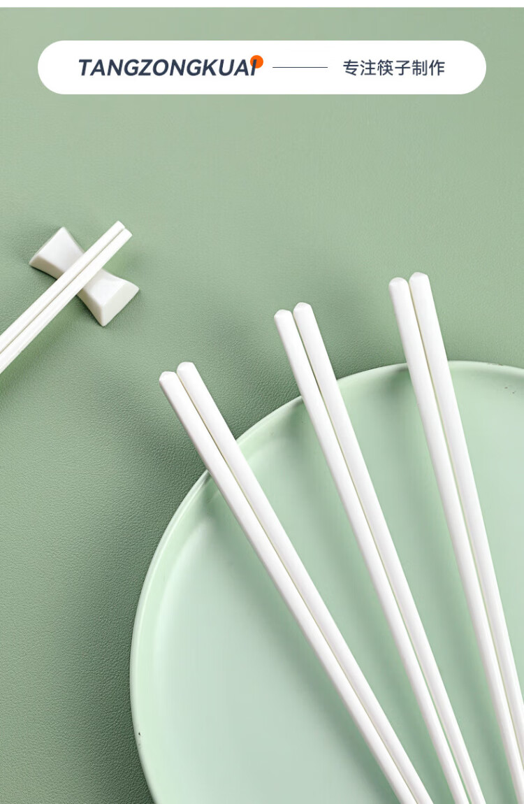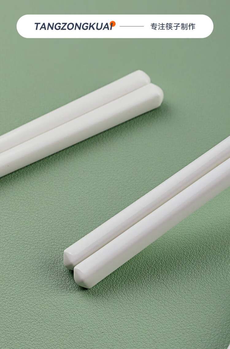 Tang Zong Chopsticks Light Luxury Pure White Ceramic Chopsticks 5 Pairs, Mildew Resistant, Anti-Slip, Antibacterial, High Temperature Resistant, Anti-scald Household C1583