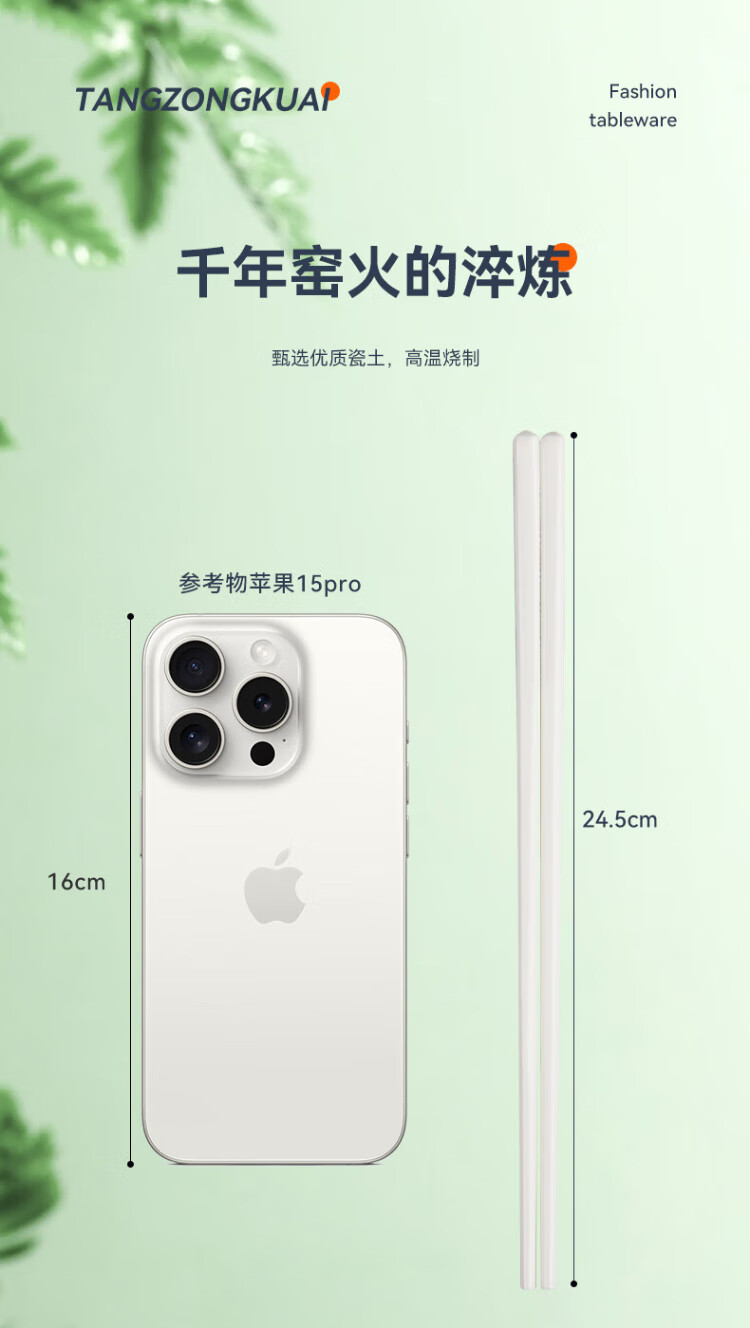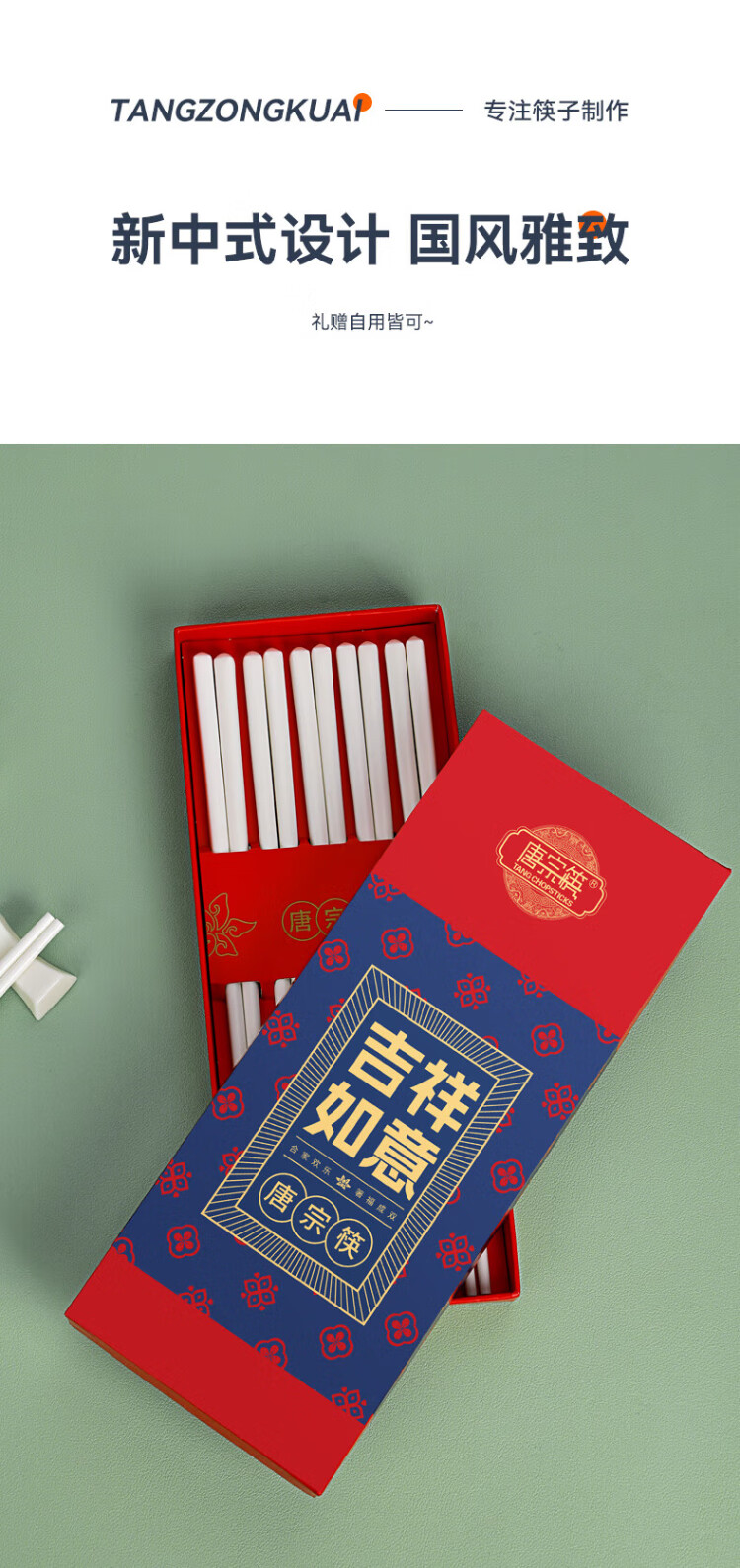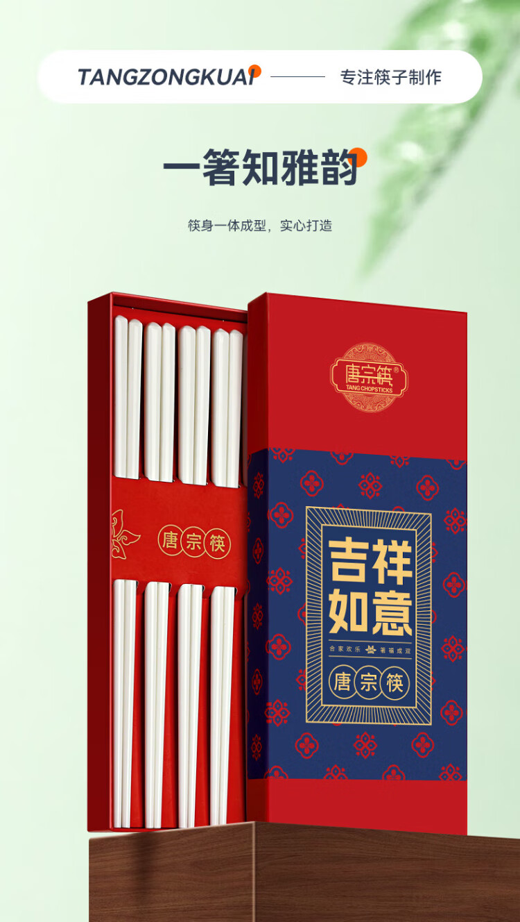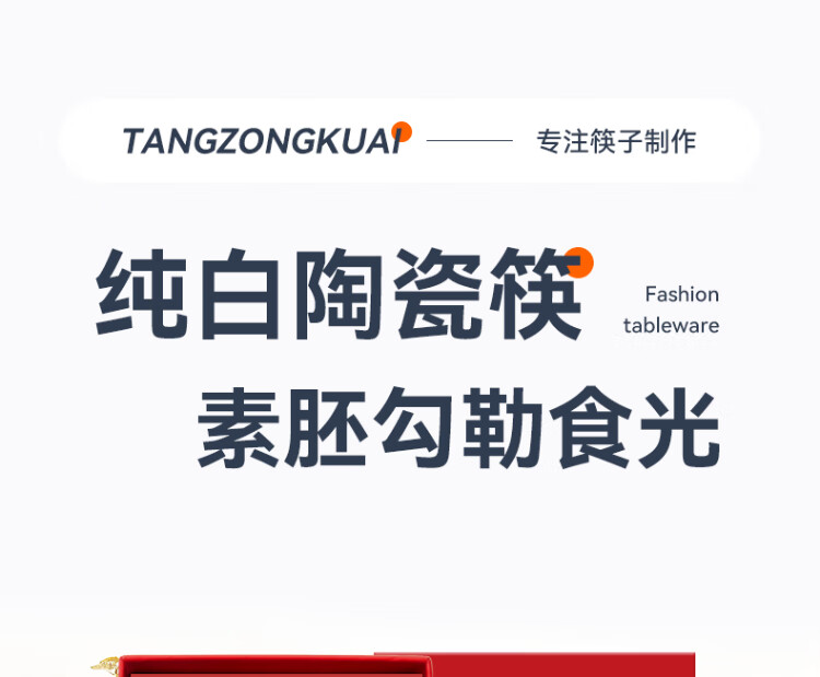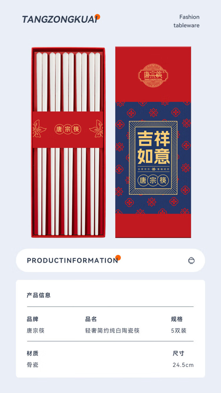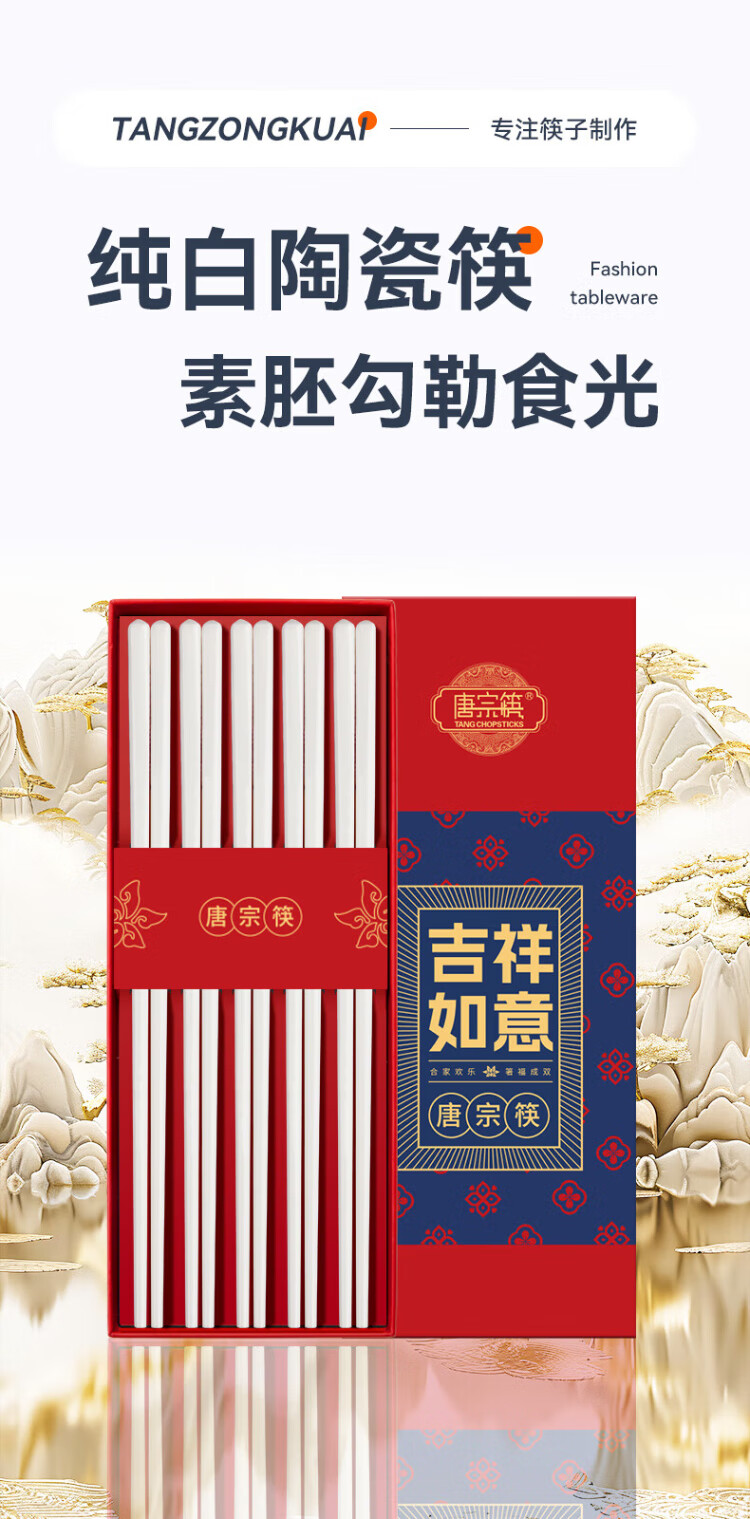 Tang Zong Chopsticks Light Luxury Pure White Ceramic Chopsticks 5 Pairs, Mildew Resistant, Anti-Slip, Antibacterial, High Temperature Resistant, Anti-scald Household C1583