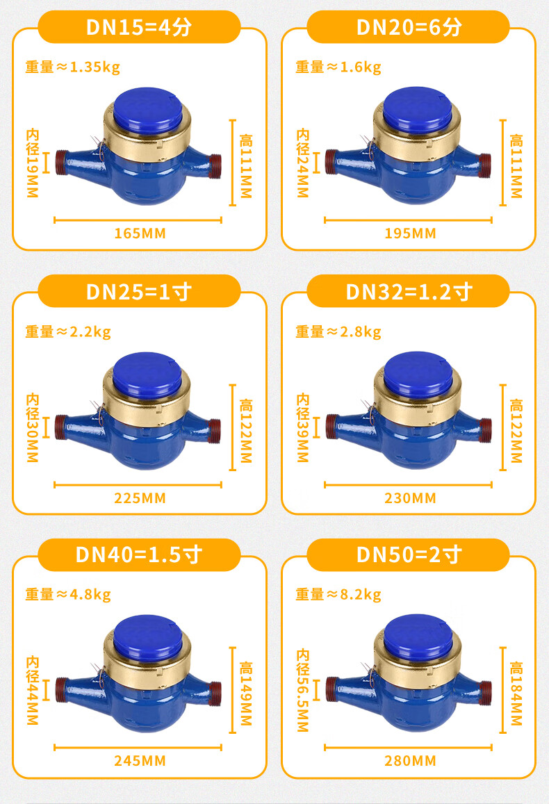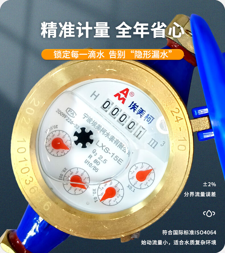 AM Amico ZK02-099 copper cover with copper connection rotor wet cold water meter tap water meter national standard DN20/6 points/wire mouth