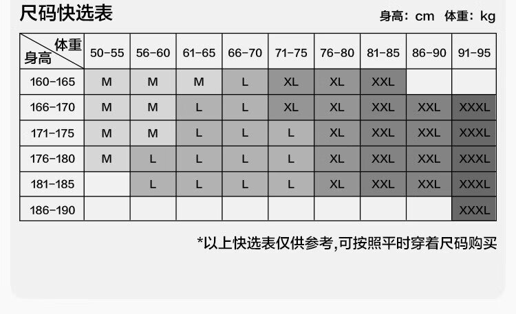 China (cm) 160-165/84-86 165-170 / 88-90 167-172 / 92-96 168-173 / 98-102 170-176 / 106-110