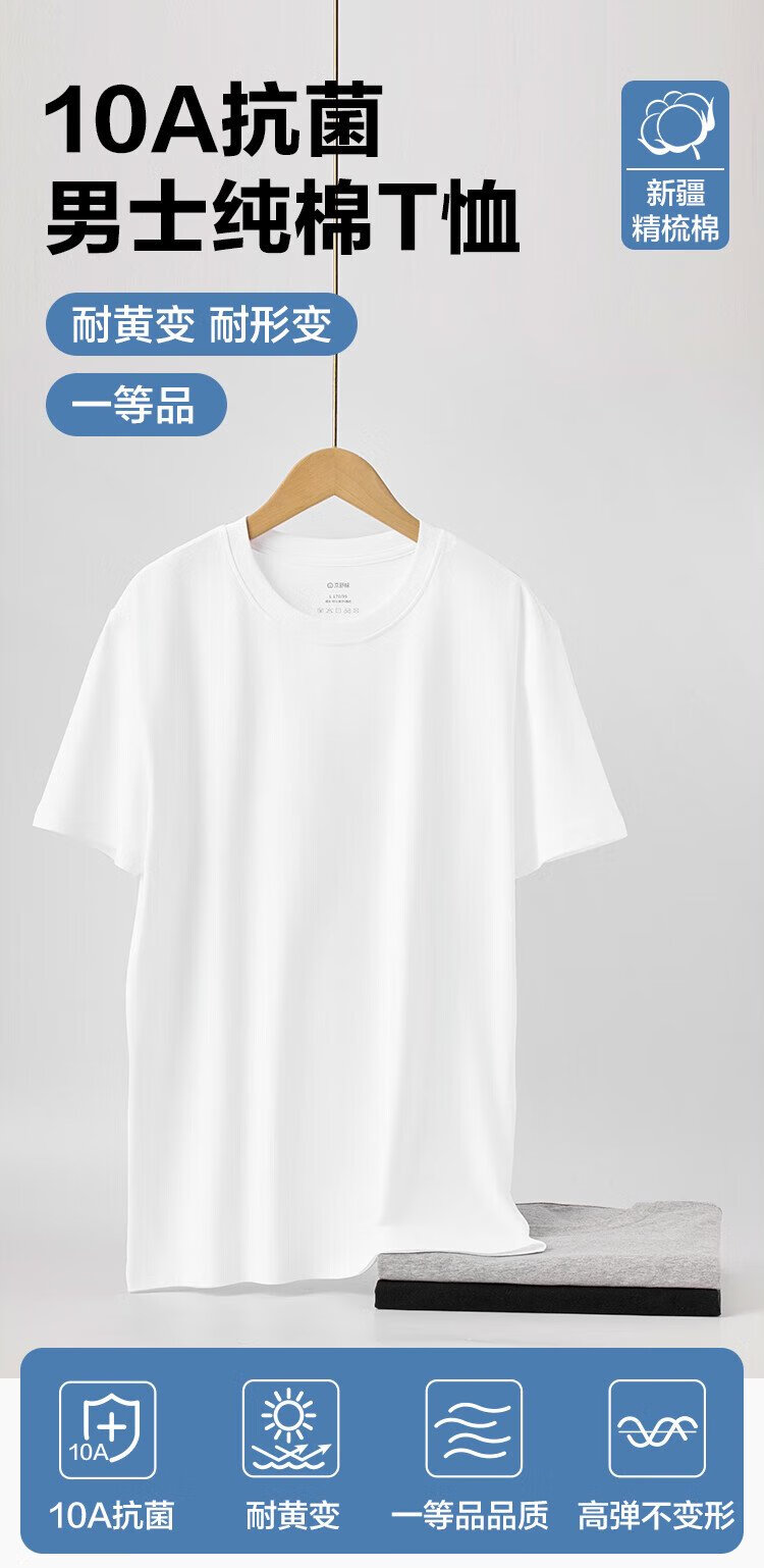 Jingshu cotton Jingdong's own brand cotton 10A antibacterial Xinjiang cotton men's short t-shirt T-shirt Valentine's Day white L