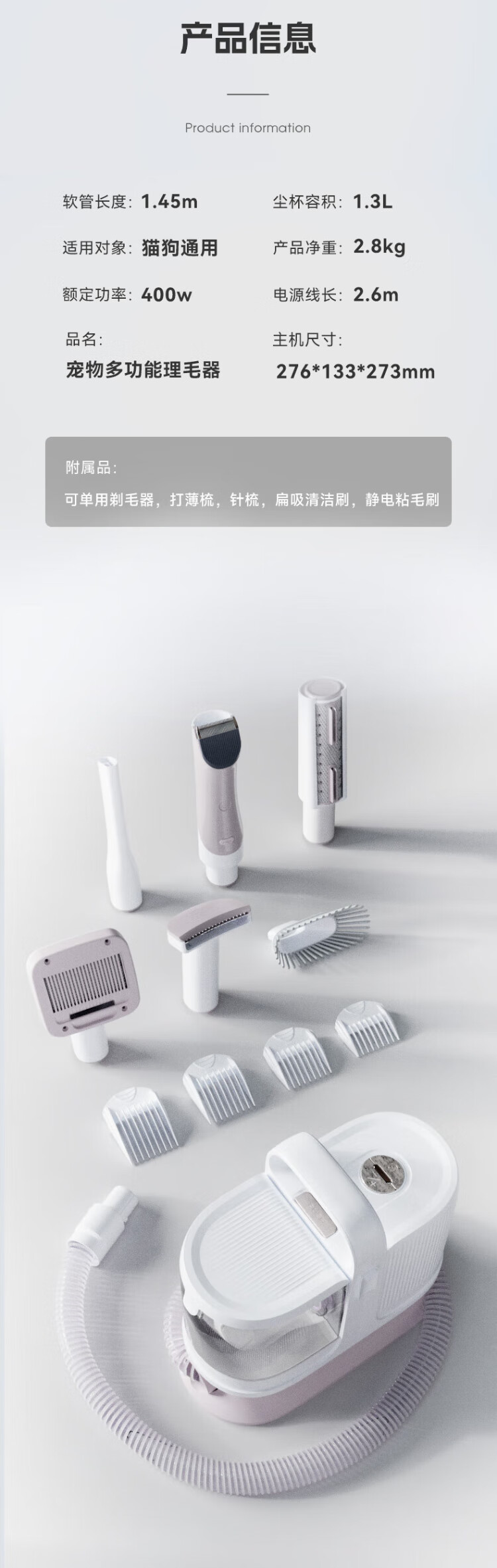 Huayuan pet equipment (hoopet) pet hair extractor shaver cat and dog vacuum cleaner de-floating hair cleaning device comb sticky cat hair artifact