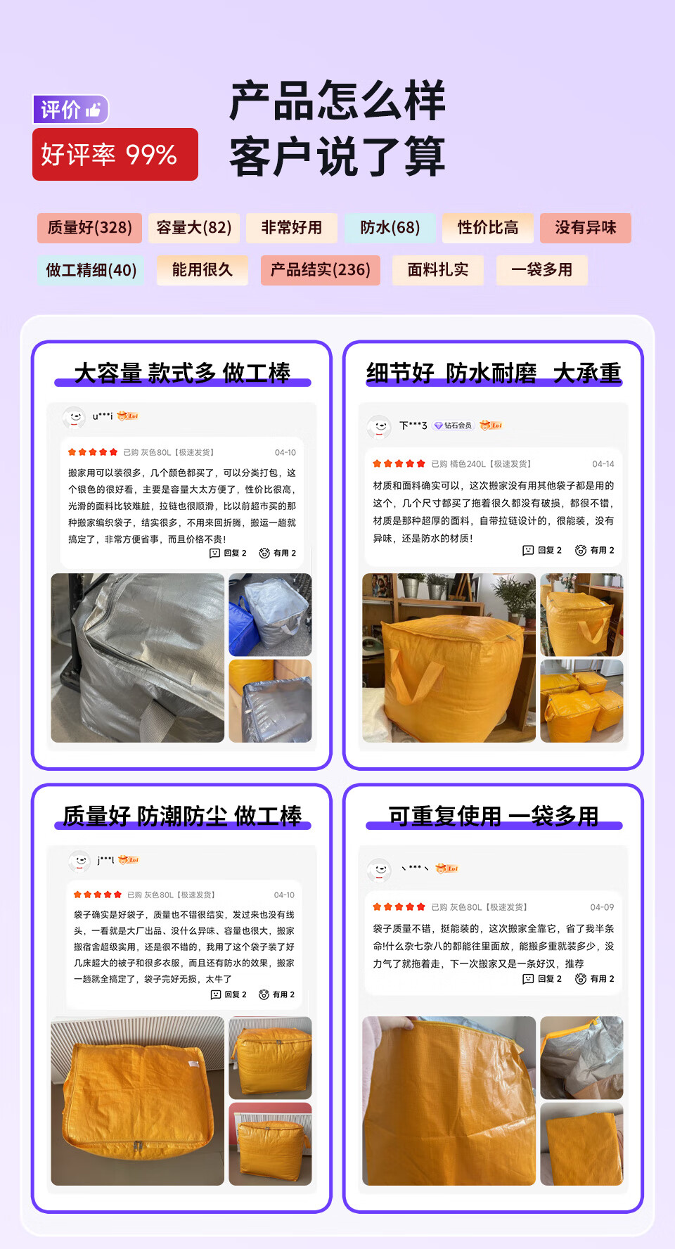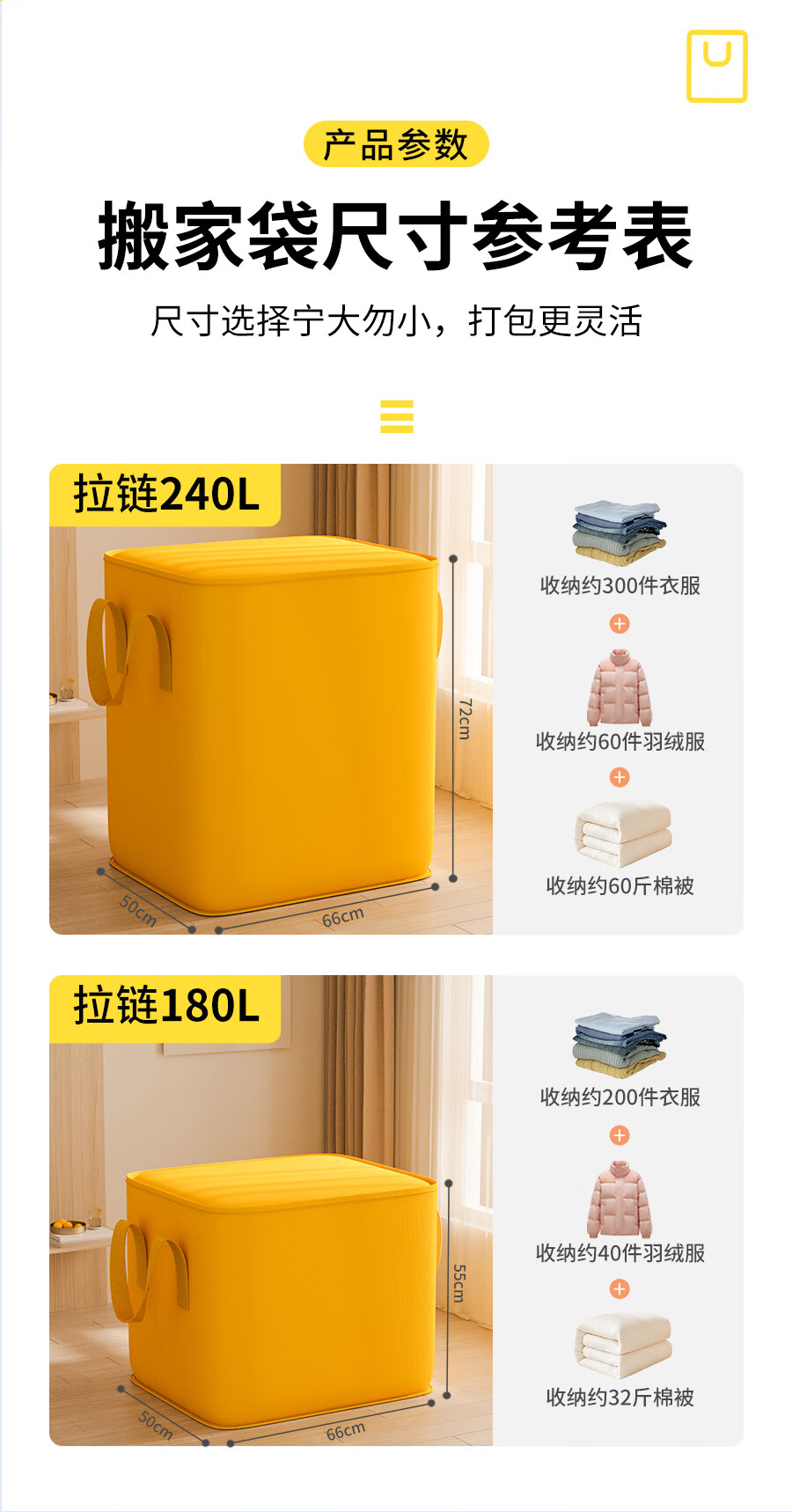 Tuxiang moving packing bag moving bag luggage bag storage bag clothes bag storage bag waterproof bag moving packing artifact yellow 240L