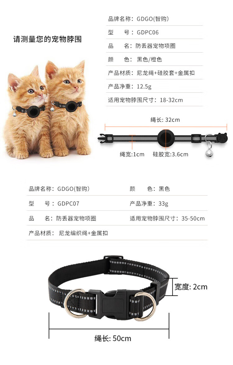 GDGO Apple-specific locator anti-lost replacement suitable for Airtag cats and dogs pet collar brand locating artifact waterproof tag anti-lost device with collar MFi certification